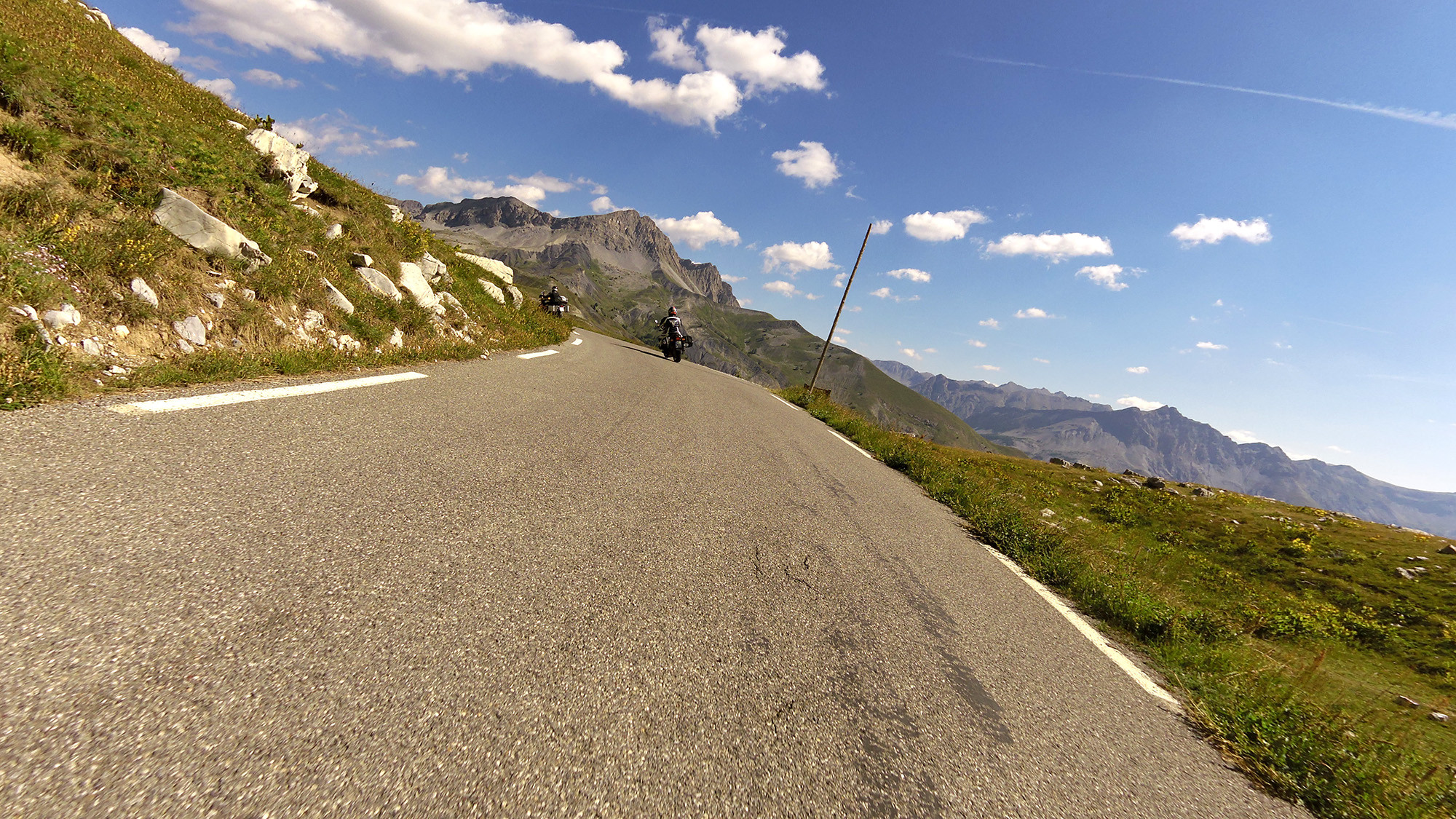 Der Col des Champs lässt sich ganz hervorragend mit dem Col d'Allos kombinieren, da beide in Colmars, mitten in den Seealpen gelegen, starten. Von Colmars aus geht es über 28 wundervoll kurvenreiche Kilometer nach St-Martin-d'Entraunes. Wie schon der Allos ist auch der Col des Champs für Fahrzeuge über 3,5 t und 7 m gesperrt. Vorsicht ist auf der Westrampe (D2) geboten, da diese auf fast der gesamten Strecke nur einspurig befahrbar ist. Bei Gegenverkehr hilft hier nur ganz rechts an den Rand zu fahren und stehen zu bleiben. Hinzu kommen tiefe Wasserrinnen, Bodenwellen und sogar das eine oder andere Schlagloch. Auch größere Straßenschäden sind nach jedem Winter vorzufinden. Wegen der nur mäßigen regionalen Bedeutung der Strecke werden diese nicht selten spät sund nur notdürftig geflickt. Dafür ist die Ostrampe (D78) ganz gut in Schuss und bietet Fahrvergnügen pur. Die Passhöhe befindet sich auf 2.087 Metern. Sie ist zugleich die Grenze zwischen den Départements Alpes-de-Haute-Provence und Alpes Maritimes. Lange verweilen muss man dort allerdings nicht, da keine Infrastruktur vorhanden ist. Nicht einmal ein kleines Wirtshaus hat sich dorthin verirrt. |