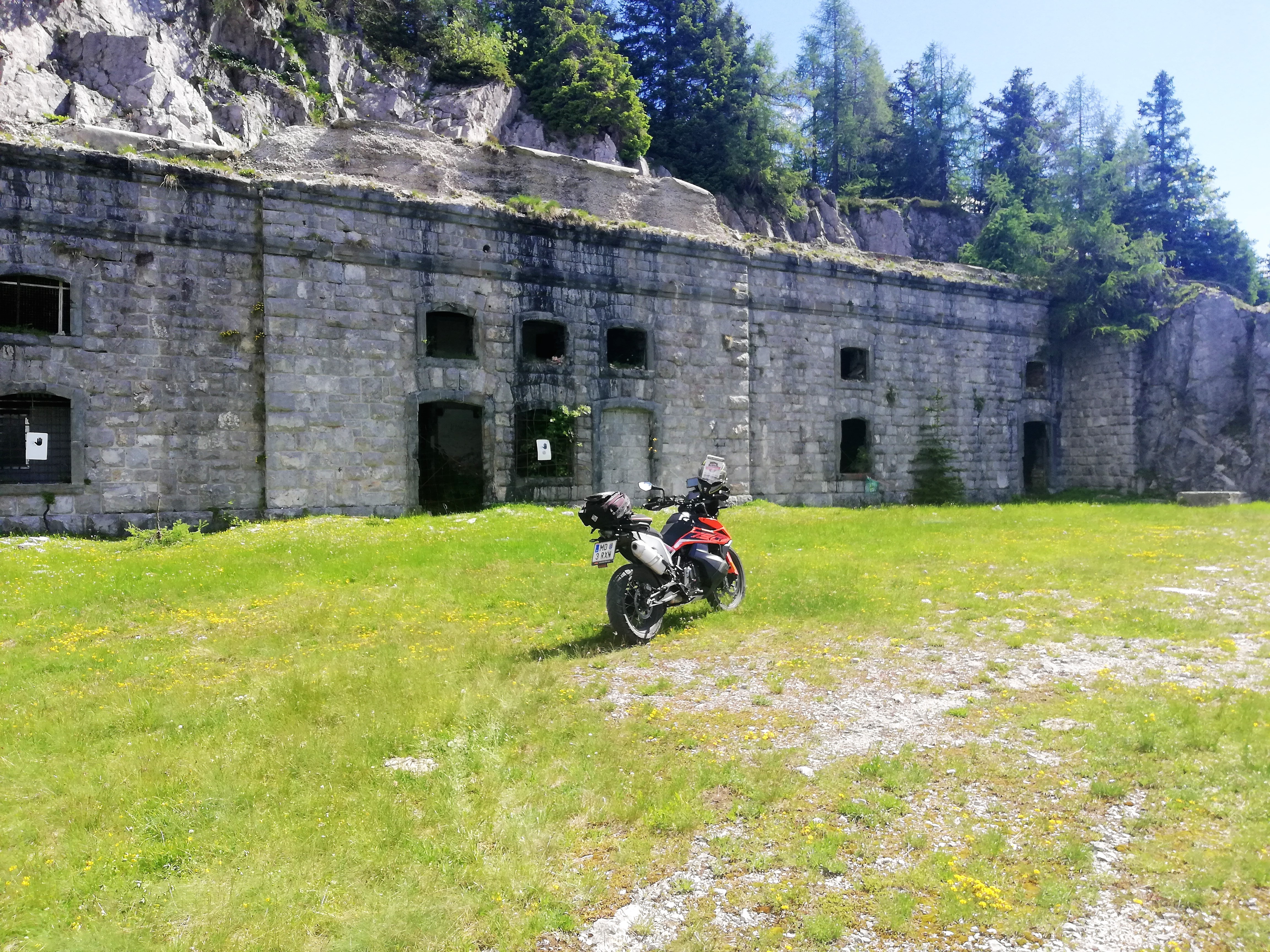 Die sehr hübsch am Fluss Piave gelegne Gemeinde Lozzo di Cadore ist der – einzige – Ausgangsort für die Fahrt auf den 1.880 Meter hoch gelegenen Col Vidàl. Die Strecke hat es in sich. Wer sie befahren möchte, sollte ein wenig Schottererfahrung haben und auch auf die Witterungsverhältnisse achten. Der Untergrund verwandelt sich bei Nässe in eine äußerst unangenehme Rutschpartie. Bei schönem Wetter ist die Fahrt hinauf allerdings ein aussichtsreicher Motorradfahrertraum! Die ersten Kilometer der Strecke sind zwar schmal, aber dennoch gut ausgebaut und mit wunderbarer Kurvenfolge versehen. Bei Kilometer 15, am ehemaligen Rifugio Marmarole, ist dann je nach Betrachtungsweise Schluss oder Beginn mit Lustig. Hier beginnt die Schotterpassage auf einem kleinen Fortwirtschaftsweg, der linker Hand zum Rifugio Baiòn (1.828 Meter) und rechter Hand zum Col Vidàl (1.880 m) hinaufführt. Dieses Teilstück wird in den Monaten Juli und August mit zeitlichem Richtungsverkehr geregelt. Zwischen 9 und 13 Uhr darf man hinauf, und zwischen 14 und 17 Uhr wieder hinunter fahren. Direkt an der Passhöhe finden sich noch die Überreste des Forte di Col Vidàl. Die ehemalige Festung wurde während des Ersten Weltkriegs erbaut, kann allerdings im Inneren leider nicht besichtigt werden. |