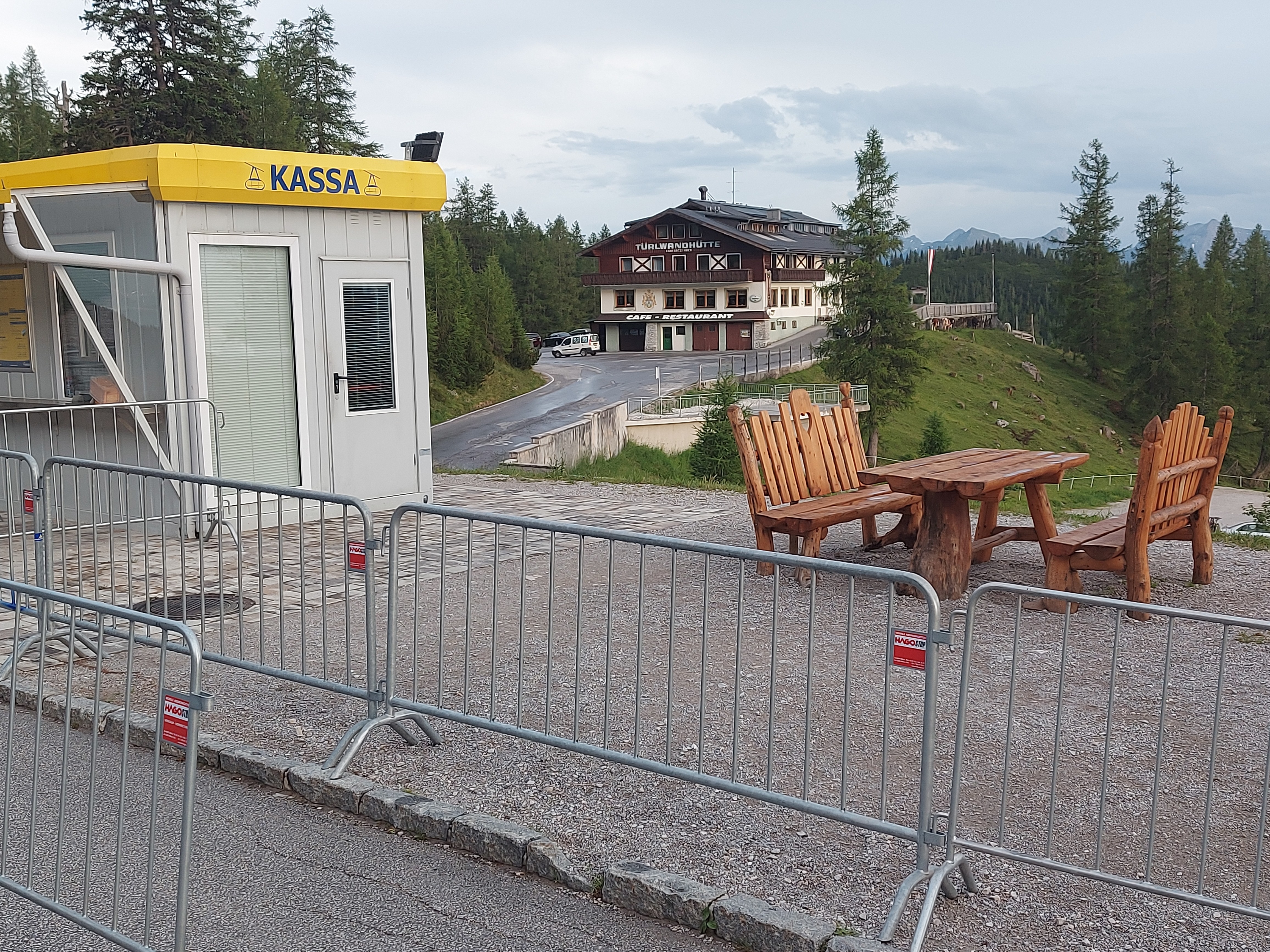 Samstag bei vollem Betrieb kein Mensch am Kassenhäuschen :( und jede Menge Motorrad Fahrer dort unterwegs. :(
