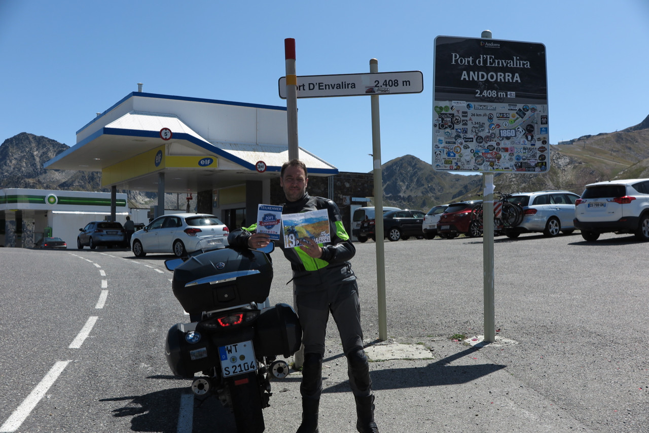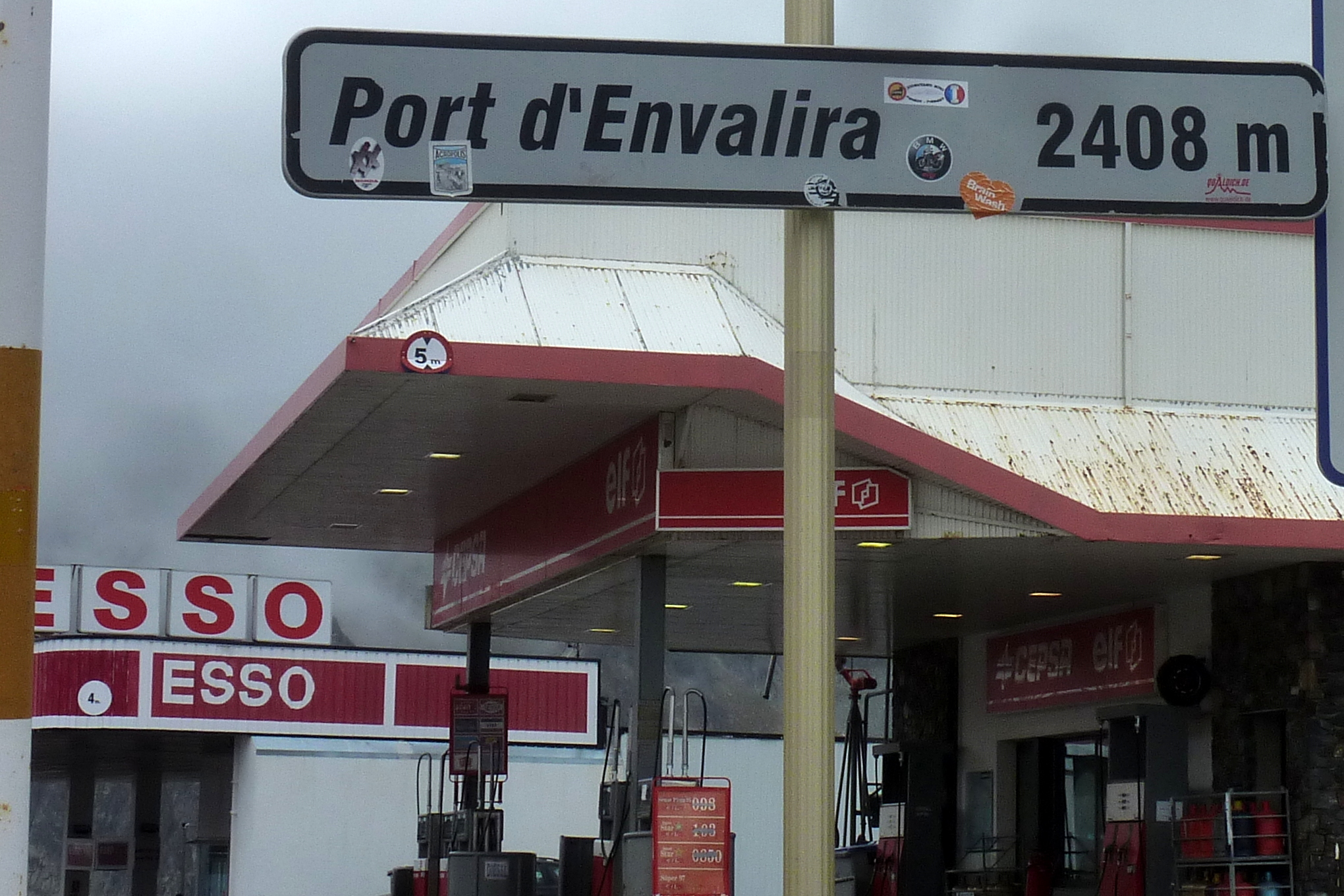 Bei der Einreise nach Andorra muss man schon genau aufpassen, wenn man den höchsten asphaltierten Pass der Pyrenäen erwischen möchte. Der 2.408 Meter hohe Port d'Envalira wird nämlich von einem Tunnel unterlaufen, in den der Hauptverkehr fast automatisch geführt wird. Im letzten Kreisverkehr einfach auf der N22 weiter geradeaus fahren, dann erreicht man die Grenze bei Pas de la Casa. Unmittelbar unterhalb der recht schmucklosen Passhöhe befindet sich – wohl einzigartig – eine Rennstrecke, der Grandvalira Circuit Andorra. Wer sich also mal austoben mag … Und eines wird bei der Befahrung auch klar, nämlich wovon das kleine Fürstentum im Hochgebirge lebt: Shoppen und Tanken! |