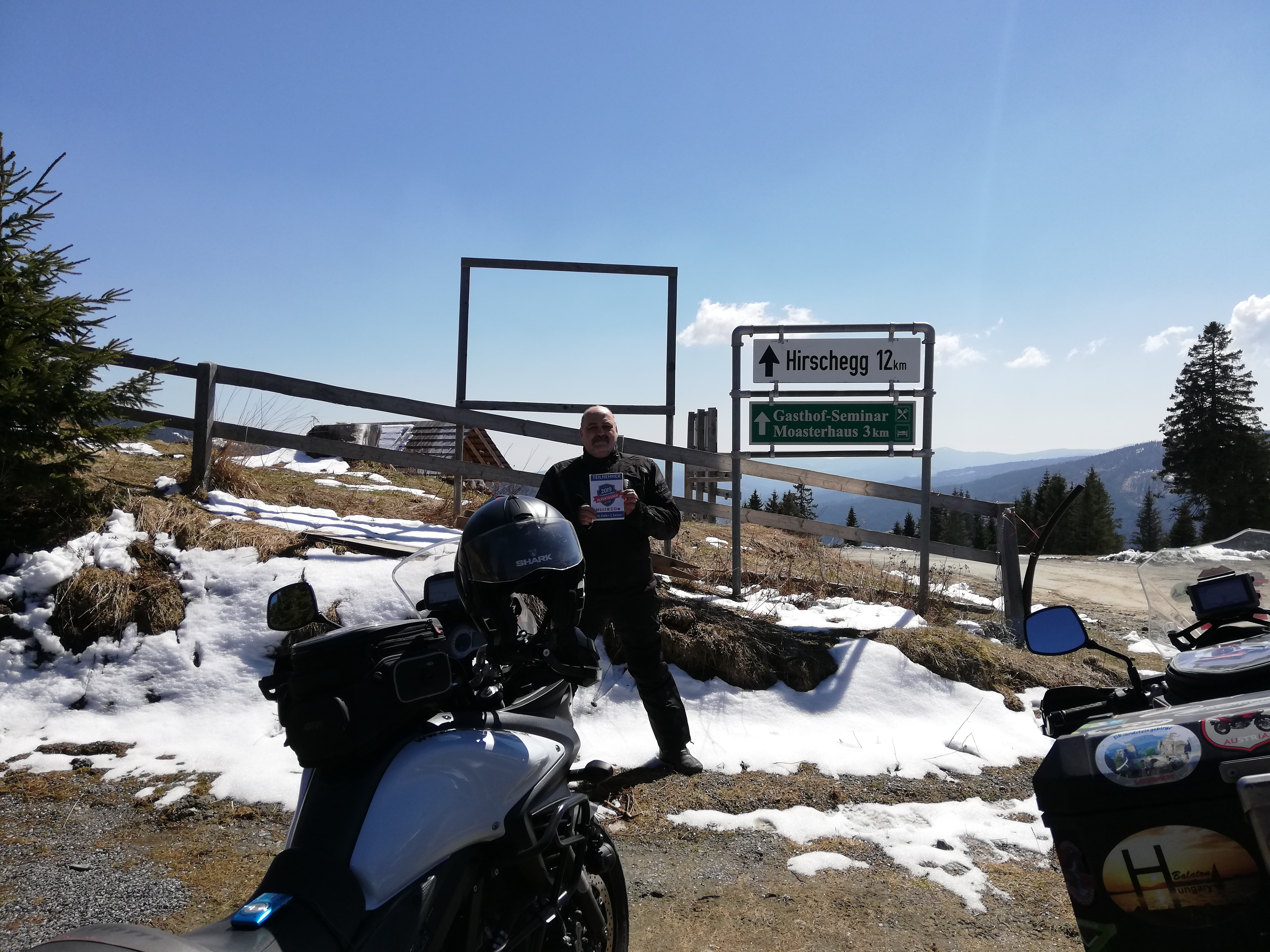 Die steirische Forststraße verbindet Kleinfeistritz mit Hirschegg. Die unteren Bereiche beider Rampen verlaufen einigermaßen ruhig durch Wälder. Je höher man kommt, desto kehrenreicher wird das Geläuf, das teilweise von Asphalt auf Schotter wechselt. Es werden einige Almgebiete durchquert. Viehsperren weisen auf aktive Nutzung hin, mit Weidevieh muss also ständig gerechnet werden. Im Salzstieglhaus am Scheitel des Sattels kann man – auch zur Nacht – einkehren. |