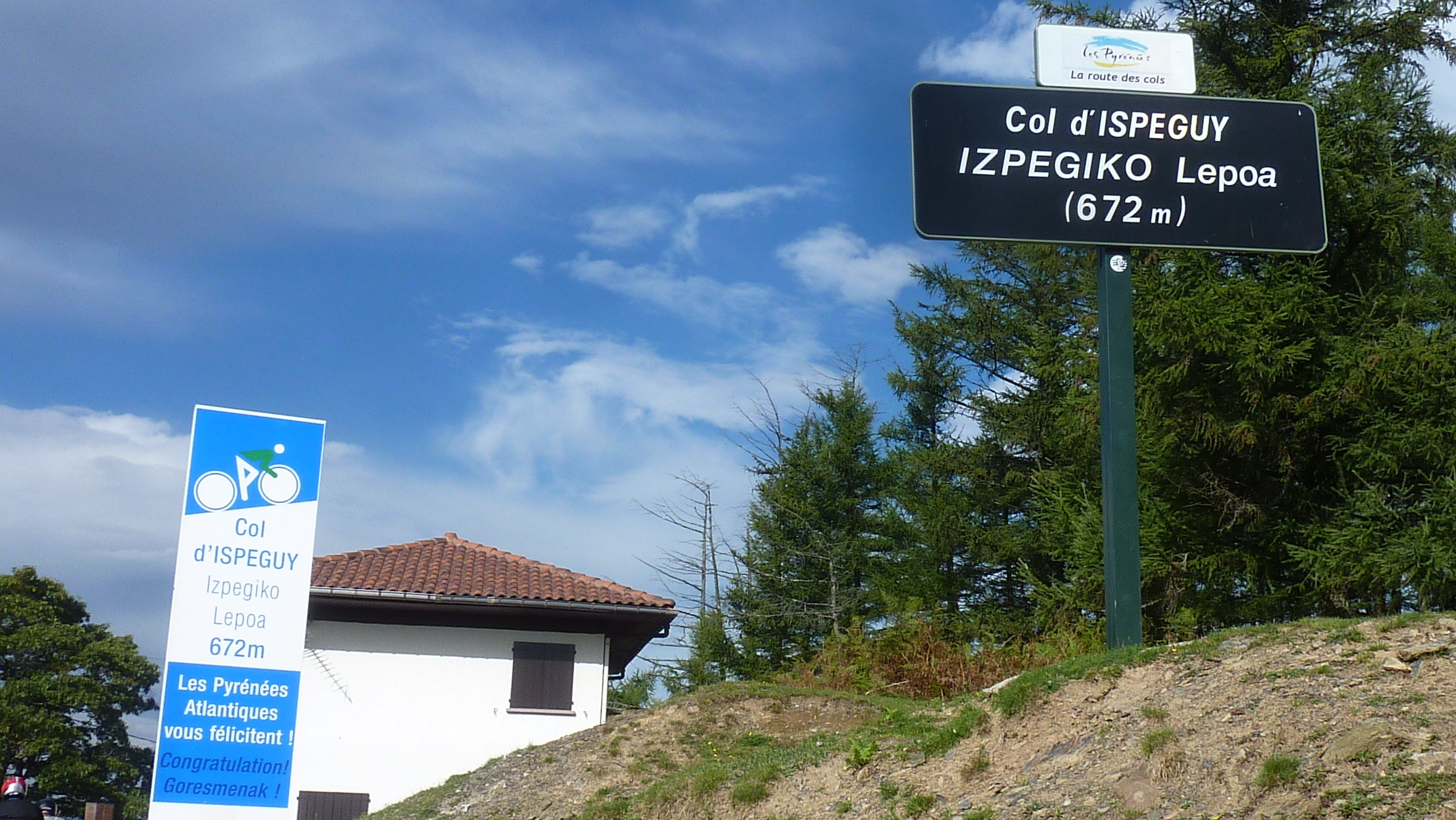 Der französisch-spanische Grenzpass Col d'Ispeguy / Puerto de Izpegui verbindet im Baskenland die Täler Baigorri und Baztan. Die von St-Etienne-de-Baigorry ausgehende Ostrampe ist als D 949 ausgewiesen und windet sich in harmonischen Kurven auf einer gut ausgebauten Straße mit sehr ordentlichem Asphaltbelag hinauf zur 672 Meter hohen Passhöhe, die gleichzeitig die Staatsgrenze markiert. Auf der spanischen Seite ist die Straße als NA-2600 ausgeschildert. Besonders auf den ersten Kilometern hinunter ins Tal ist einiges an Arbeit zu leisten, denn die Kehren präsentieren sich zum Teil äußerst spitz und sehr schnell aufeinanderfolgend. Lohn der Mühe ist Fahrspaß pur. |