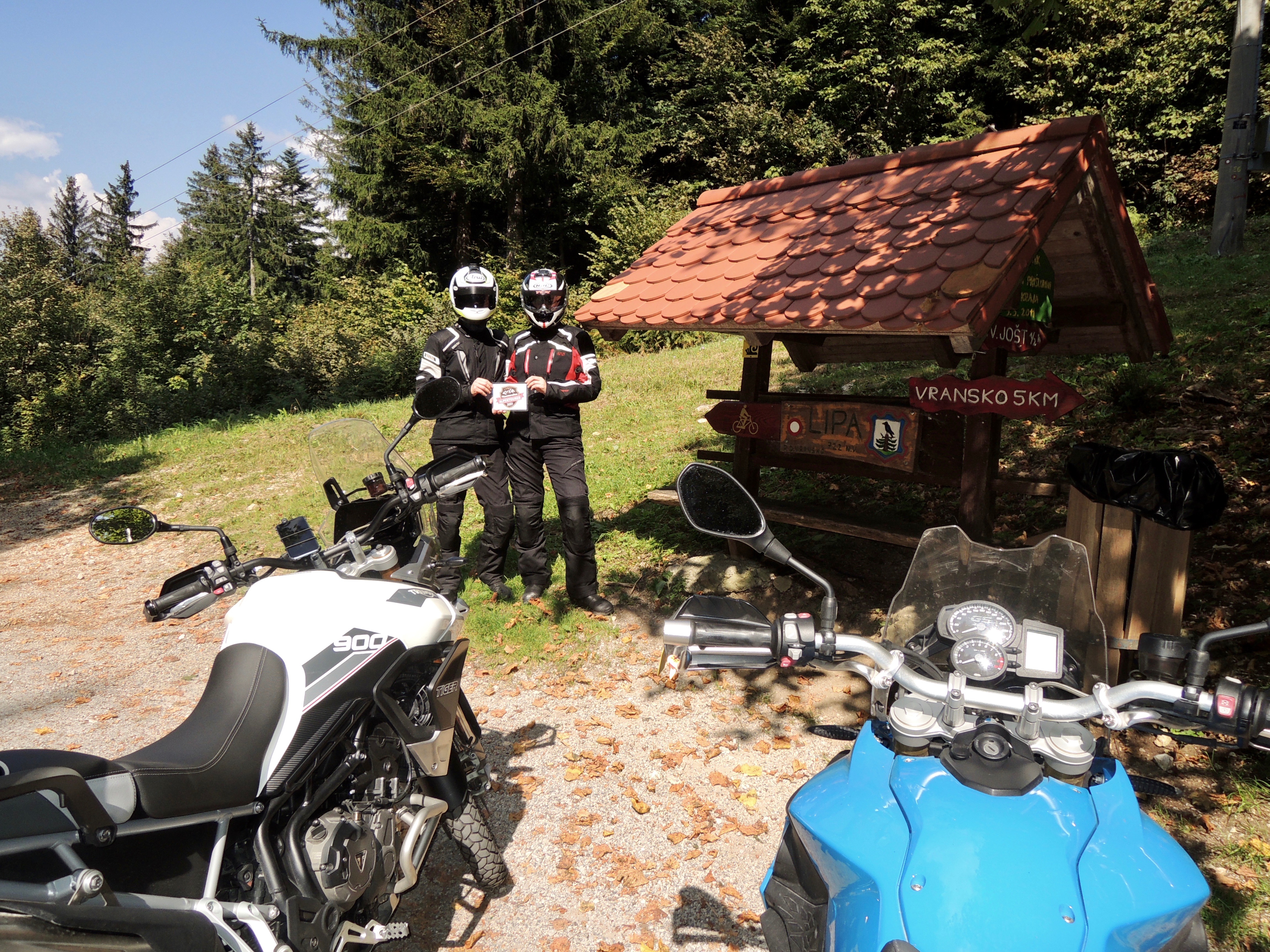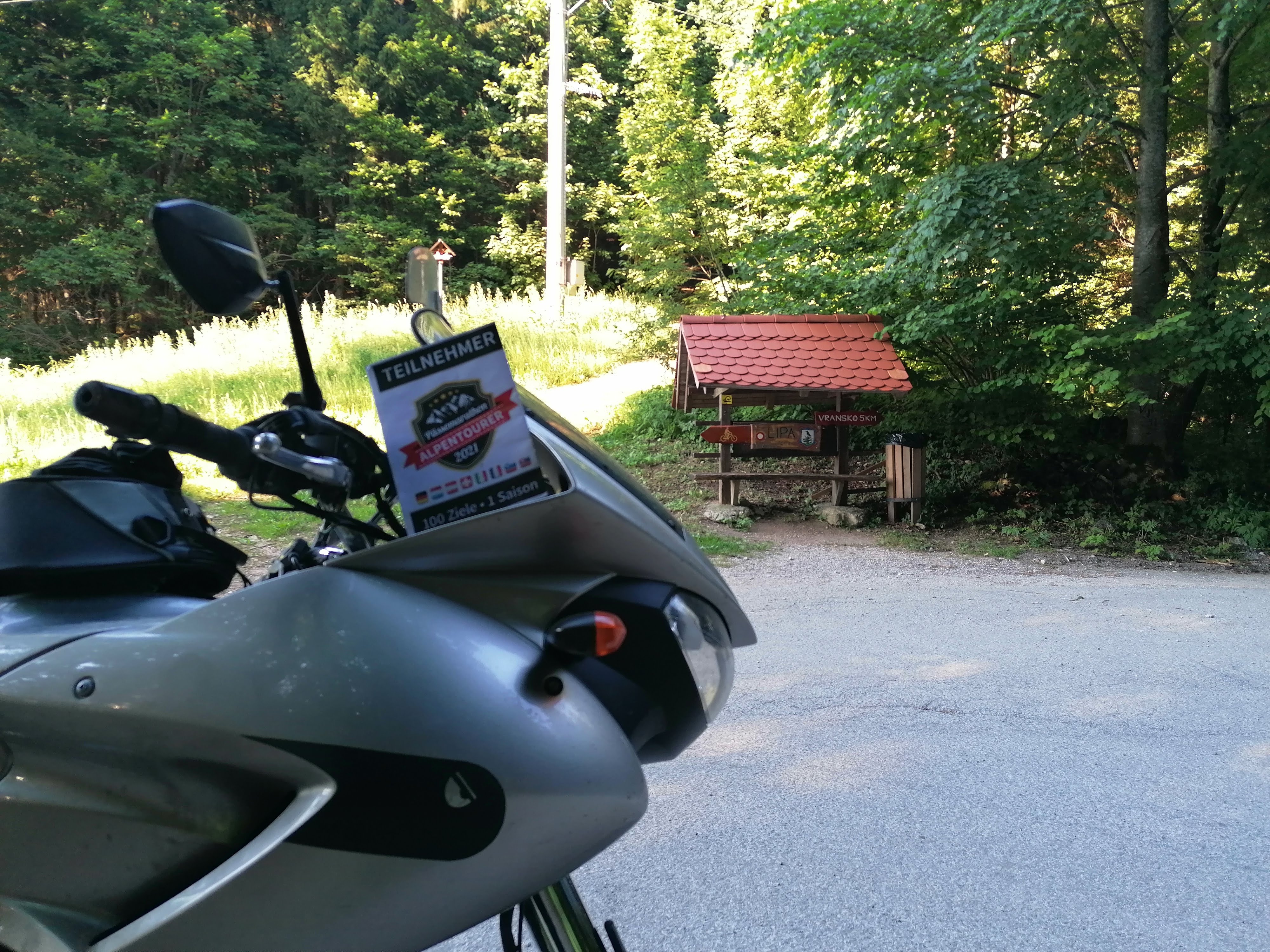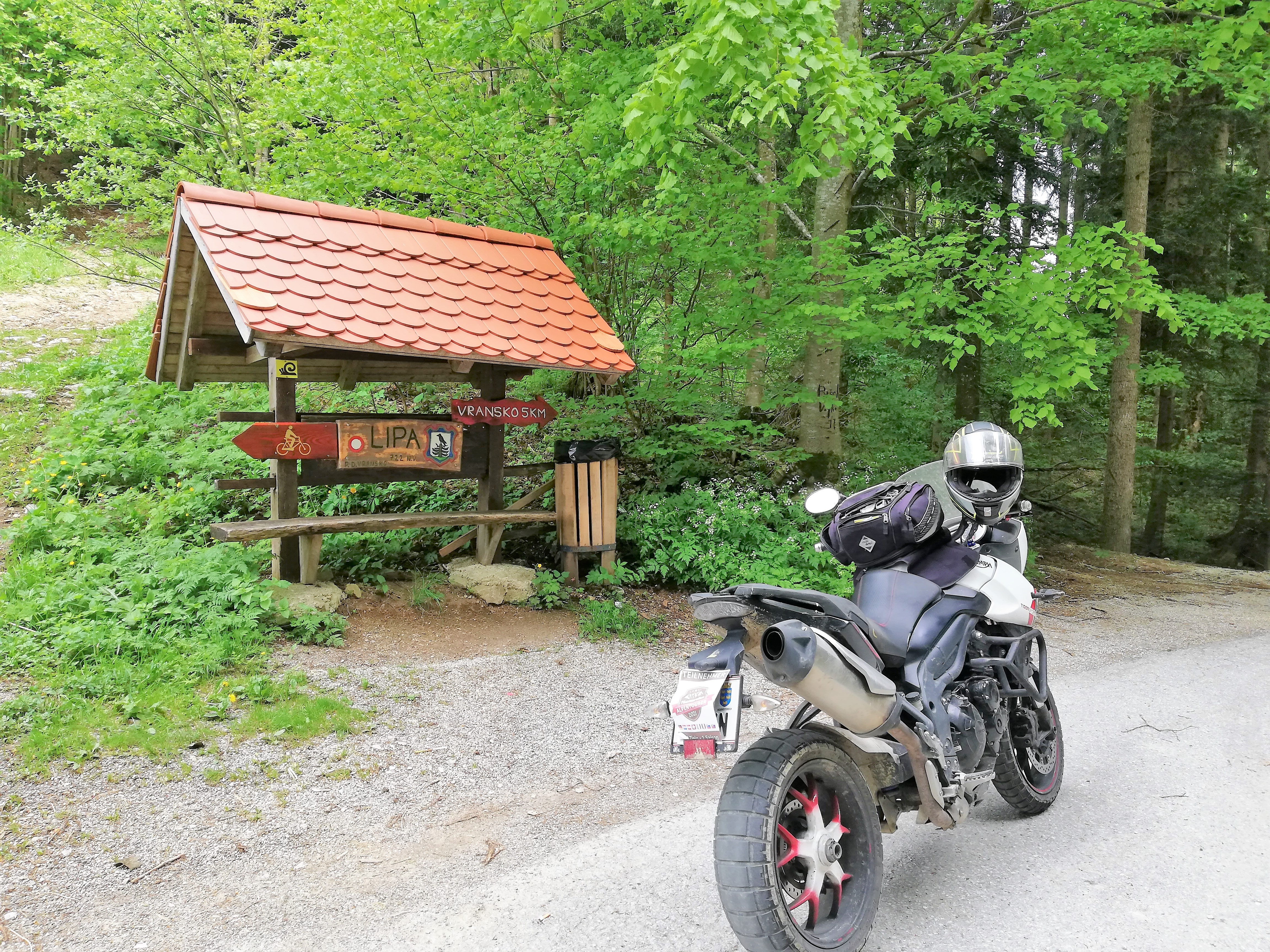 Der Ausflug über den Bergkamm beginnt in Vransko, direkt vor den Toren des privaten Motorrad-Museums. Die schmale Straße führt zum Scheitelpunkt hin weitgehend durch Wald, eröffnet aber vor allem bei der Abfahrt nach Šmartno ob Dreti nette Ausblicke sowie einige interessante Kurven-Kombinationen. Bei dem geringen Verkehr ein Spaß – wie so viele der kleinen, slowenischen Straßen. |