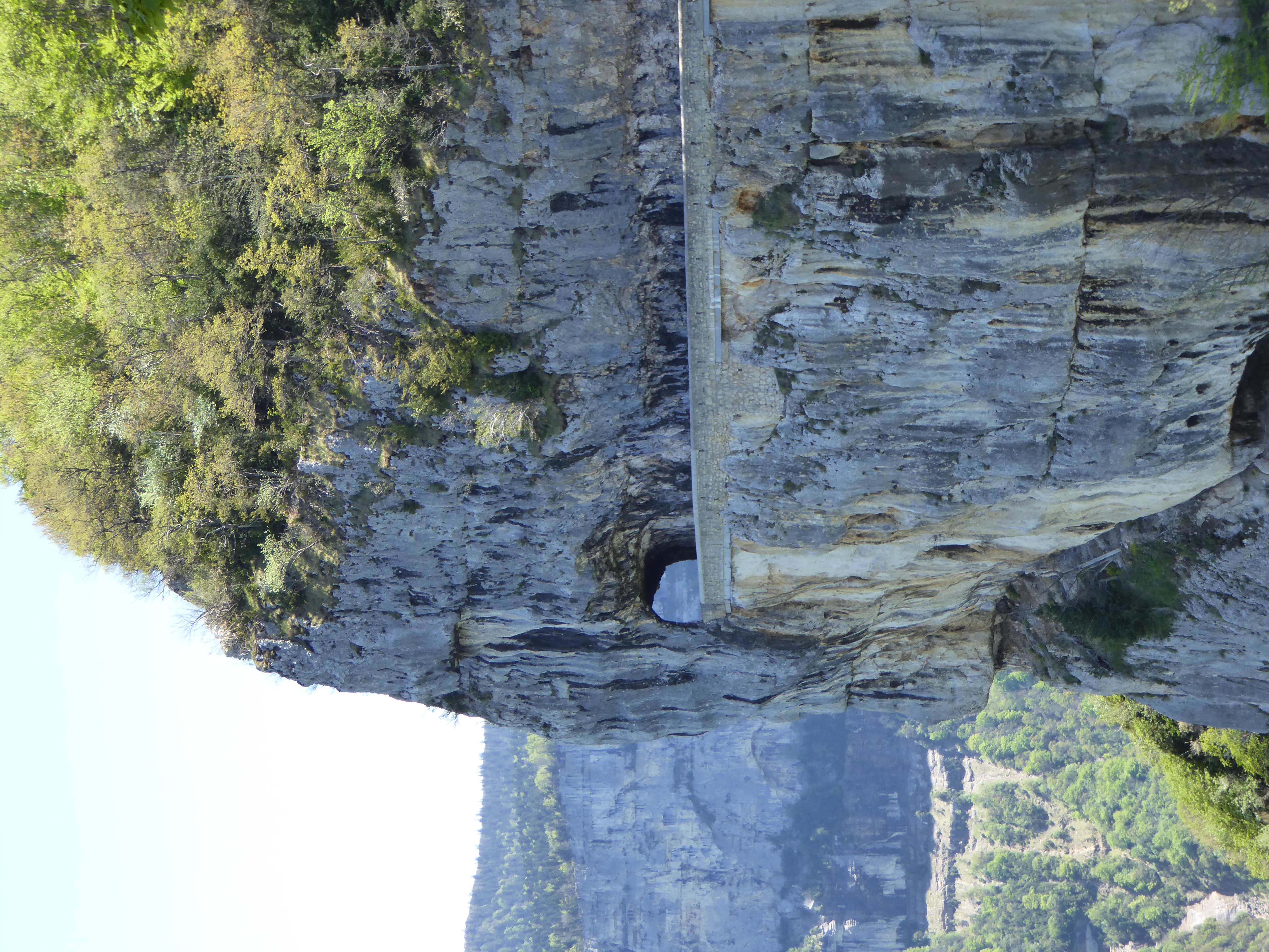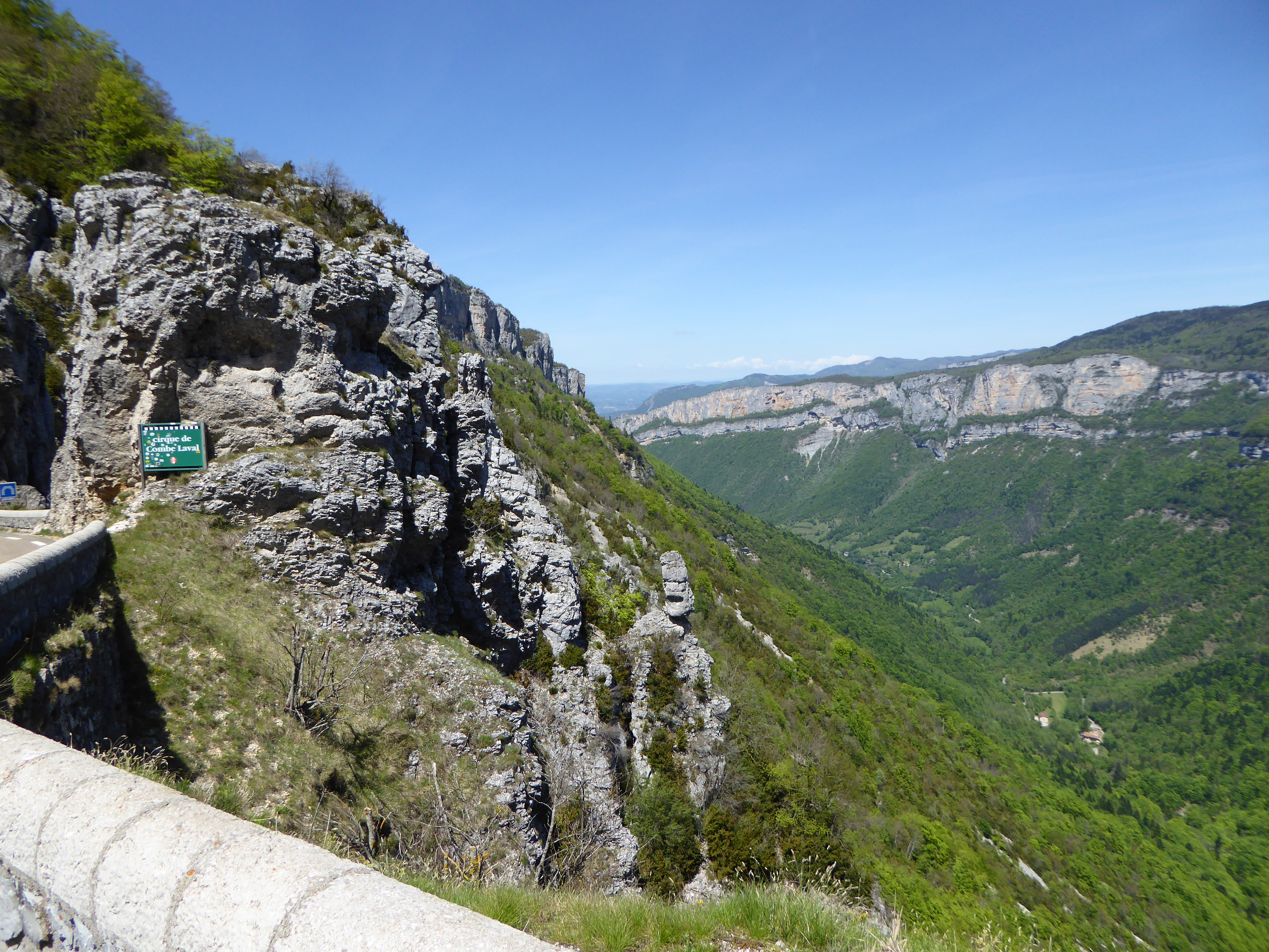 Der Name Col de la Machine lässt schon das Wasser im Mund zusammenlaufen, bildet er doch den Einstieg in eine der schönsten kurvenreichen Panoramastraßen Europas: Combe Laval. Für den höchsten Fahrgenuss und die besten Ausblicke sollte er daher in Süd-Nord-Richtung befahren werden. Bis zu 600 Meter tief hat sich die Laval-Schlucht hier eingegraben. Die Straße wurde dem nackten Fels abgetrotzt. Hier ein Felsbogen, ein schmaler, unbeleuchteter Tunnel, dort immer wieder der Blick – nur für Schwindelfreie – in die Tiefe der Schlucht. Randbefestigungen gibt es zwar, aber die kleinen Mäuerchen sehen nicht wirklich vertrauenserweckend aus. Vorsicht ist nach Regen angebracht, denn dann können mitunter bis zu fußballgroße Felsstücke auf dem Asphalt zu finden sein. |