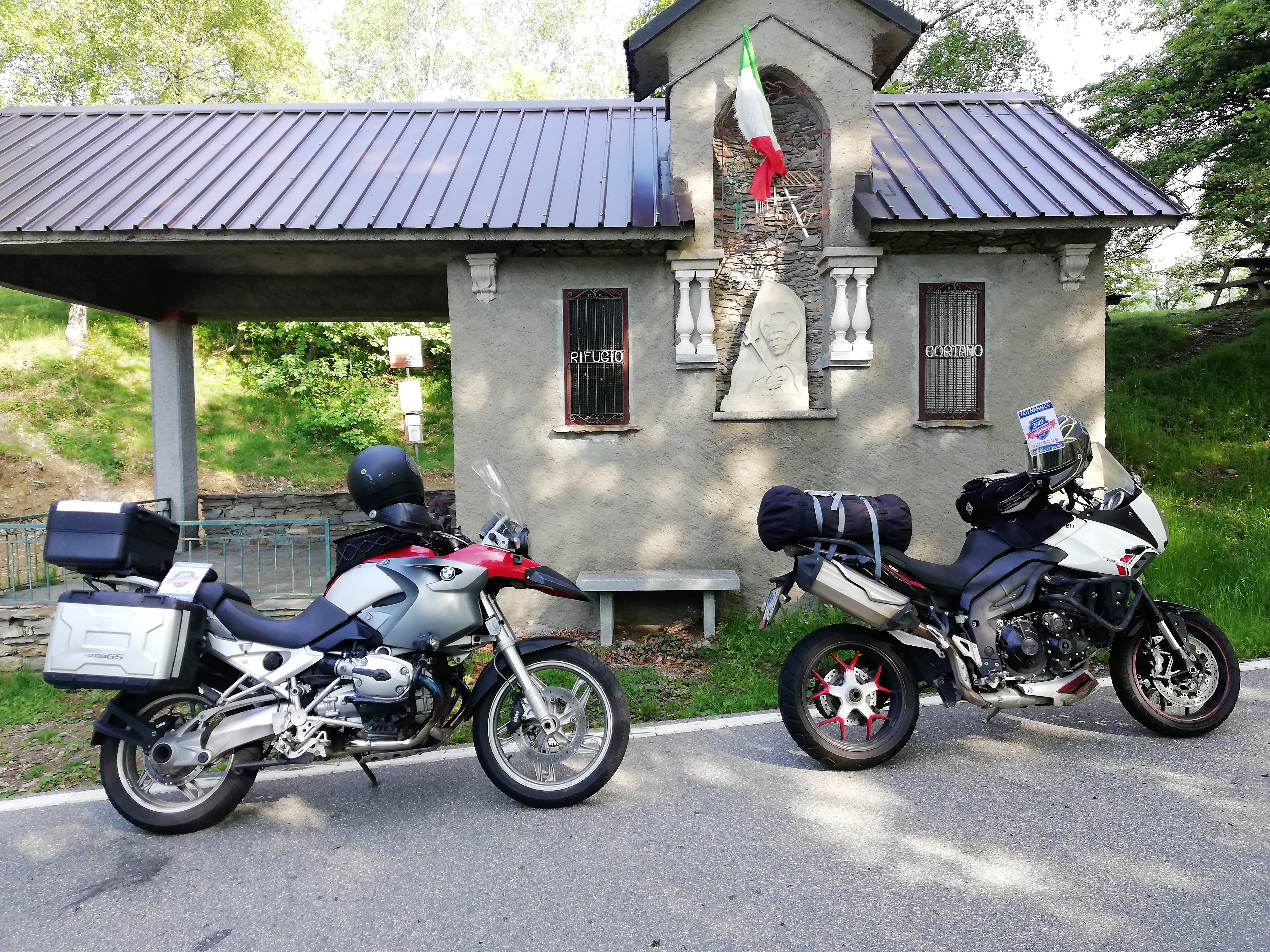 Eigentlich sind der Lago Maggiore und der Lago d'Orta – die beiden beliebten See im Piemont – gar nicht so weit voneinander entfernt. Luftlinie sind es kaum zehn Kilometer und die kürzeste mit dem Motorrad befahrbare ist auch nur knapp 16 Kilometer lang. Doch was bedeutet schon Länge, wenn man sich alternativ (fast) bis zum 1.491 Meter hohen Gipfel des Monte Mottarone begeben kann? Die Gipfelstraße verteilt sich auf eine Länge von stattlichen 38 Kilometern und bringt einen auf immerhin 1.436 Meter Höhe hinauf. Die Straße ist von Stresa aus als Mautstraße Borromea im Privatbesitz und daher mautpflichtig, aber die kleine Gebühr lohnt sich. Abends und in der Nebensaison ist aber häufig niemand da zum Kassieren, dann ist die Befahrung kostenfrei möglich. Die Zufahrt vom Ortasee aus ist über die SP41 (Via Motterone) derzeit mautfrei möglich. |