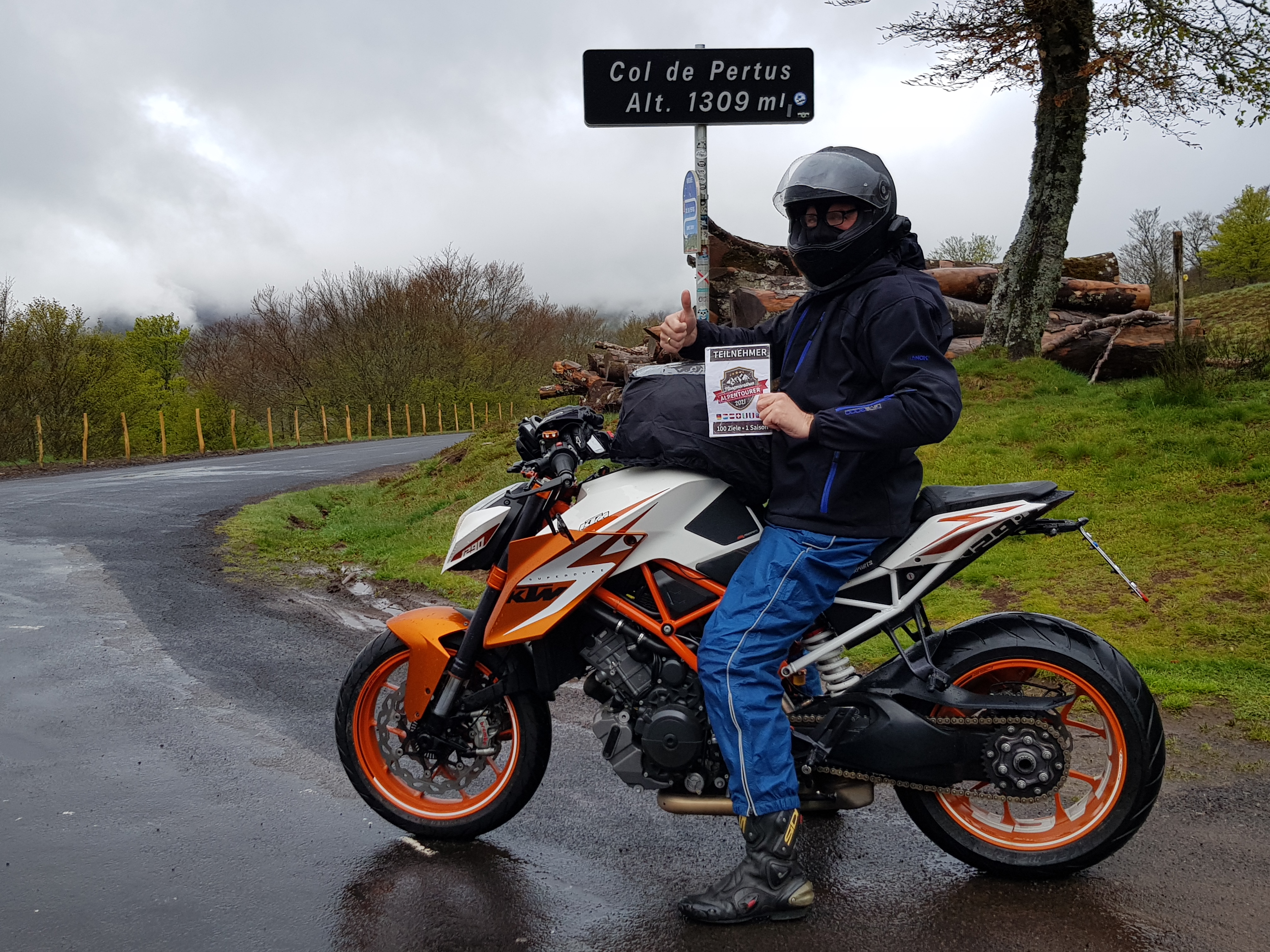 Der Pass selbst bietet auf seinen gut 10 Kilometern erstaunlich guten Belag und macht mächtig Spaß. Die Südrampe verläuft sehr aussichtsreich durch einsame Almen. Die Nordrampe dagegen ist sehr kurvig und verläuft teilweise steil durch Weiden und Bergwald. Der Col de Pertus ist eine ideales Aufwärmprogramm für den Pas de Peyrol, dessen Südrampe man kurz hinter der Passhöhe sehr schön im Blick hat. Die Nordrampe des Col de Pertus verläuft bis kurz vor das Dörfchen Mandailles-Saint-Julien. Dieses ist im Départément Cantal gelegen und hat eine Besonderheit zu bieten: Es gehört zur historischen Region des Carladès. Bis heute haben sich in dem 440 Quadratkilometer großen Gebiet, zu dem noch 18 Gemeinden gehören, eigenständige Bräuche und selbst eine eigene Sprache erhalten können. |