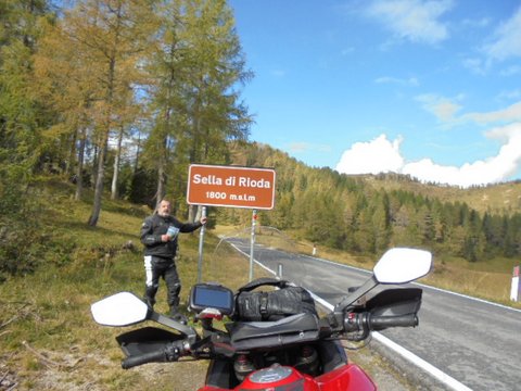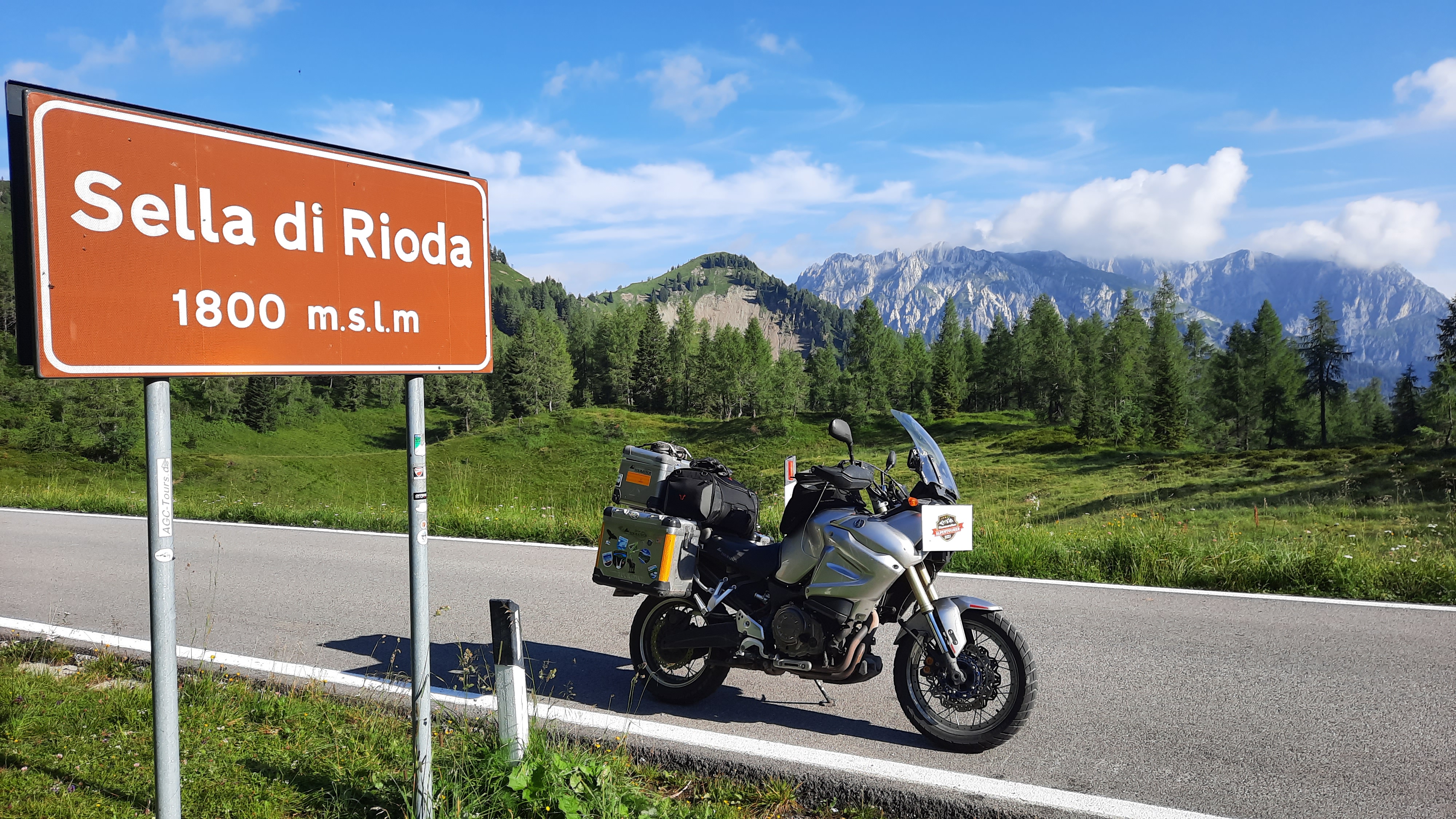 Erstaunlicherweise ist der Sella di Rioda zwischen dem Veneto und Friaul-Julisch Venetien nur sehr wenig befahren, dabei kann die Passstraße besonders Motorradreisenden durchaus einige Herausforderungen zu bieten. Idealerweise startet man die gut 14 Kilometer lange Fahrt im Örtchen Sauris. Schon bald zieht sich die Straße über den Ort Sauris in luftige Höhen hinauf – und der eigentliche Spaß kann beginnen: Auf dem folgenden Abschnitt sind Steigungen von bis zu 13 Prozent und acht Kehren zu meistern. Erst danach kann man das Siegerfoto auf der 1.800 Meter hohen Passhöhe anfertigen (wobei der ursprünglich Pass einige Meter neben der Straße liegt). Wer mag kann am Abzweig auf die SP619 noch ein Stück weiterfahren, um übergangslos den Sella di Razzo anzuschließen. |