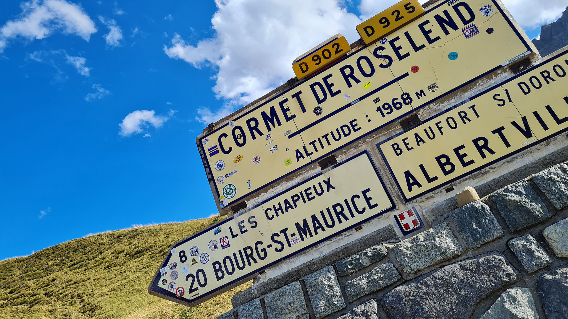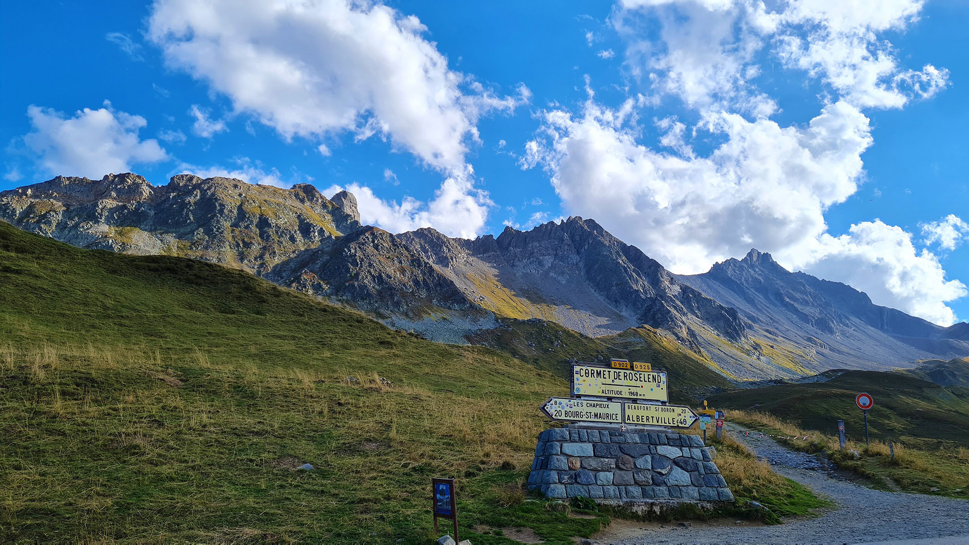 Nicht wenige meinen, dass der Cormet de Roselend einer der schönsten Alpenpässe ist, die Frankreich aufzuweisen hat. Die Wintersperre auf dem 1.968 Meter hohen Pass gilt zumeist nur von Dezember bis April, also relativ kurz für die sonstigen Verhältnisse in den französischen Hochalpen. Zu verdanken haben wir die meisterliche Streckenführung einer ehemaligen Großbaustelle: Der so wunderbar türkis schimmernde Lac de Roselend ist ein erst in den 1950er Jahren errichteter Stausee. Die jetzige Straße an ihm vorbei und über den Pass wurde zunächst als Zufahrt zur Baustelle angelegt. Zwar bestand von Osten eher eine Auffahrt auf die Passhöhe, die war aber bis 1960 nicht mit dem Beaufortain verbunden. |