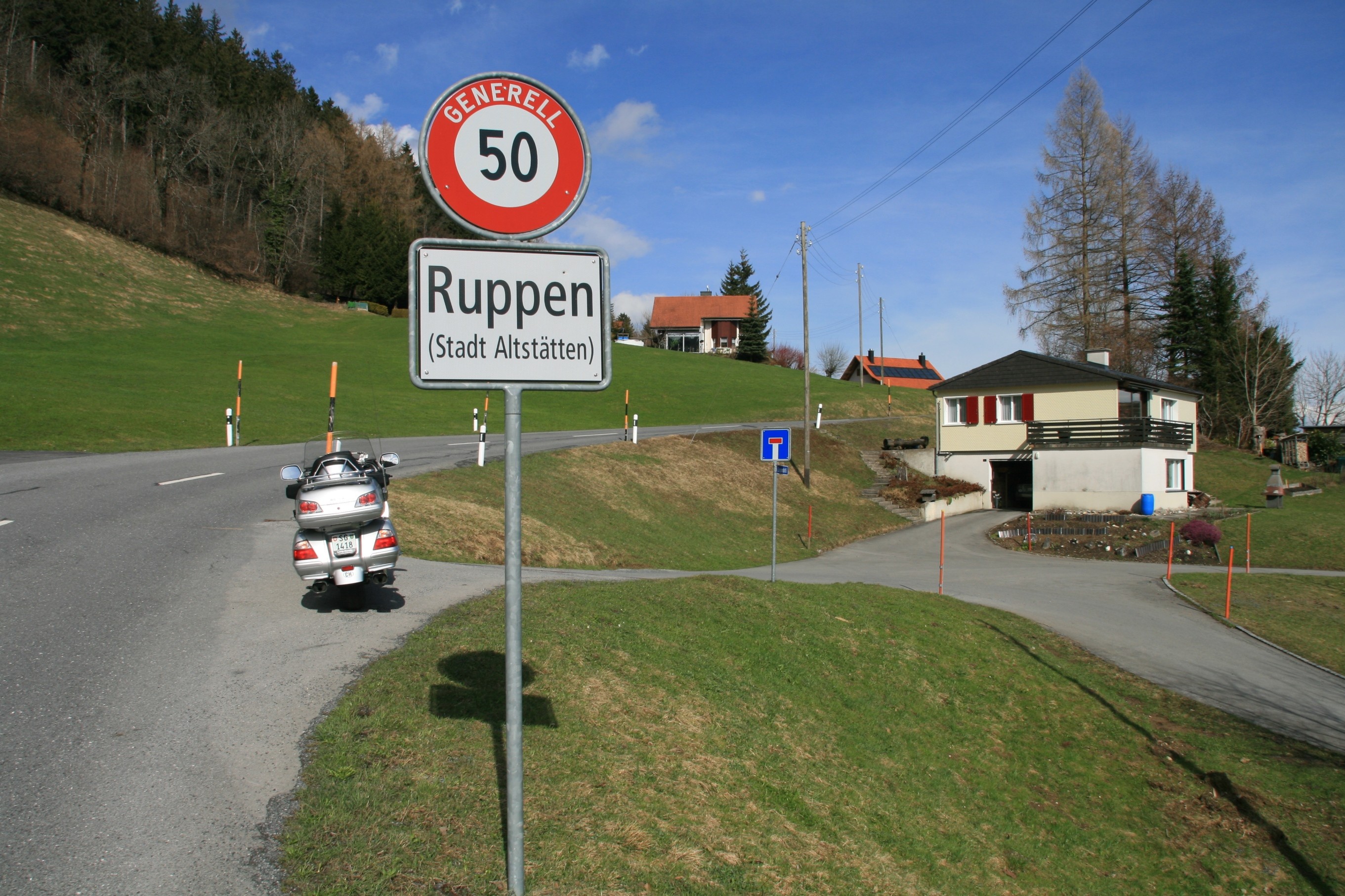 Der Ruppenpass befindet sich zwischen den Orten Trogen und Altstätten und verbindet damit die beiden Schweizer Kantone Appenzell Ausserrhoden und St. Gallen. Die Passhöhe liegt auf 1.003 Metern und komplett auf Appenzell Ausserrhodener Gebiet. Sie ist allerdings nicht der höchste Punkt in dem Gebiet, da der Scheitel noch etwa zehn Meter höher liegt. Er ist 500 Meter von der Passhöhe entfernt und gehört schon zum Nachbarkanton. Weiter Richtung St. Galler Rheintal passiert man während der Fahrt das Miniatur-Dorf Ruppen, dem der Pass seinen Namen verdankt. Bereits im Mittelalter hat ein Saumpfad hier die beiden Kantone miteinander verbunden. Die heutige Straßenführung entstand im 19. Jahrhundert und war eine Zeit lang durchaus wichtig. Heute hat der Pass vor allem regionale Bedeutung. Außerdem ist er bei den Schweizer Töff-Fahrern in den Sommermonaten sehr beliebt. Das dürfte auch an der Tatsache liegen, dass die Straße perfekt ausgebaut und in einem hervorragenden Zustand ist und sich dabei in moderater Steigung in die Höhe schraubt. Außerdem genießt man während der Fahrt schöne Ausblicke auf die umliegenden Berge. Wer noch mehr Lust auf schöne Aussichten verspürt, plant zusätzlich den kleinen Abstecher in Richtung Sankt Anton zum Aussichtspunkt „Frohe Aussicht“ ein, da man hier einen Panoramaplatz über dem Bodensee und dem Appenzeller Land hat. |