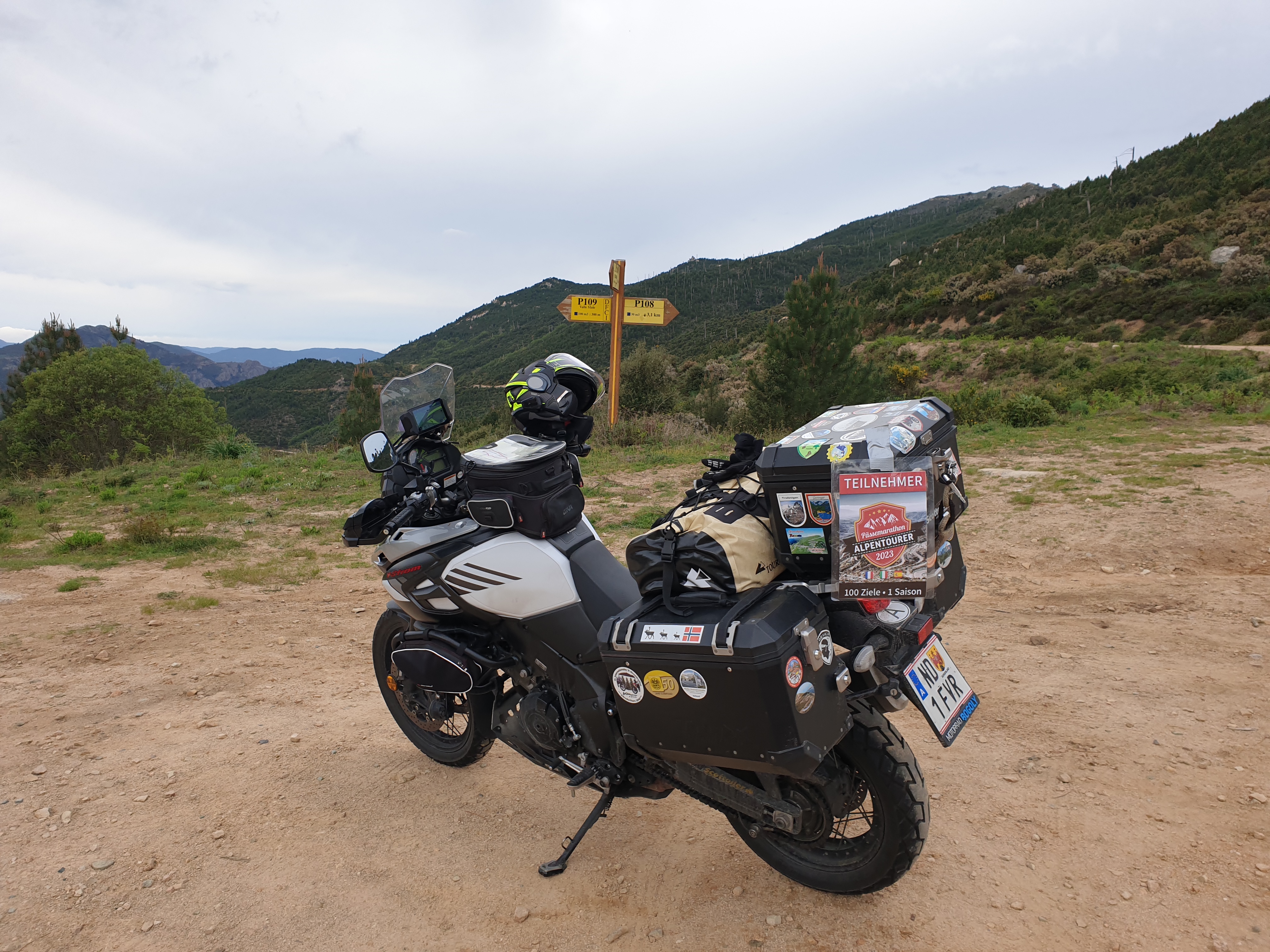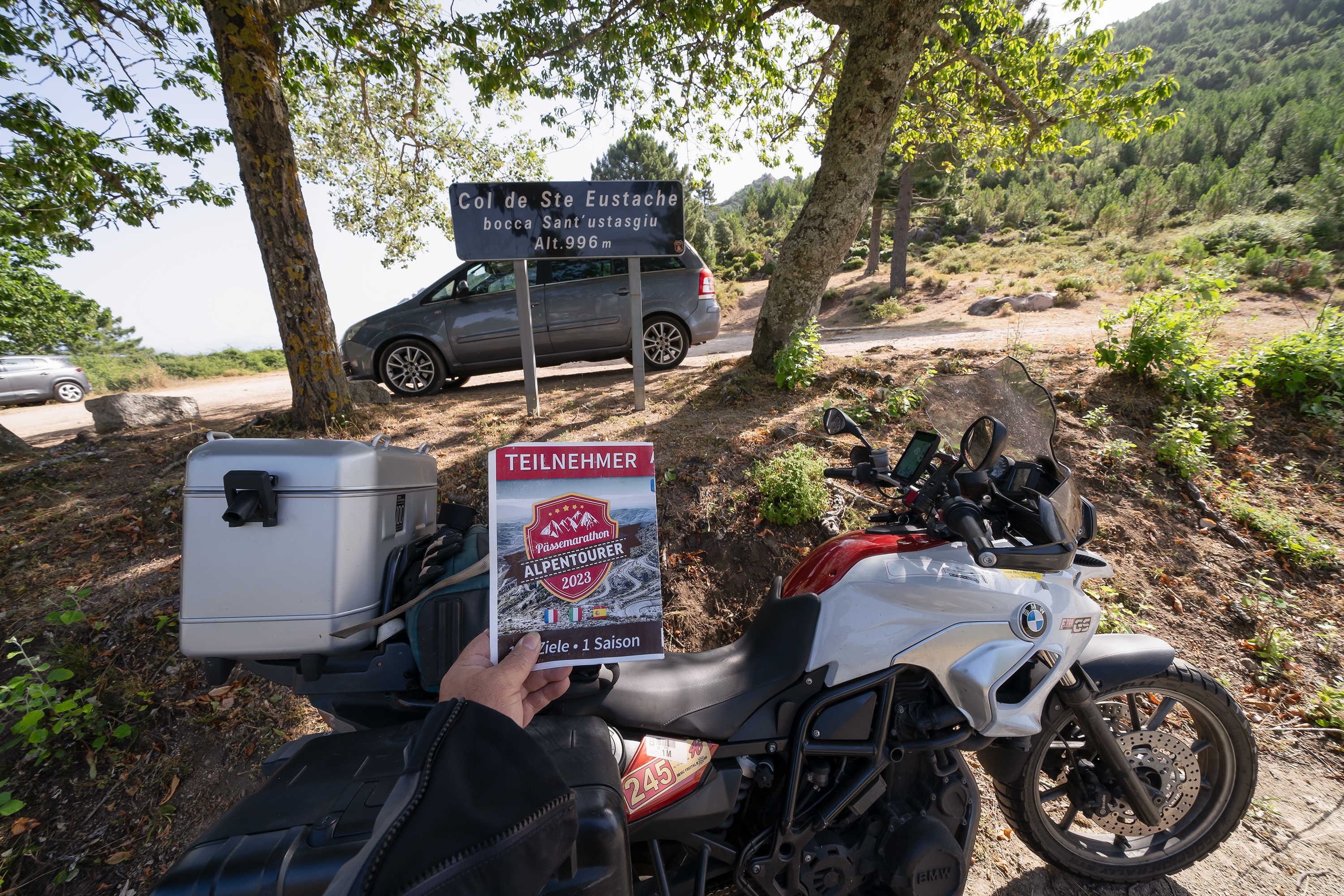 Mitten im Inselinneren versteckt sich mit dem Col de Saint-Eustache ein zwar recht unbekannter, dafür aber umso lohnenswerterer Pass. Die Straße ist im ordentlichen Zustand, die Ausblicke fantastisch, auch wenn es stellenweise, vor allem kurz vor der Abfahrt nach Petreto-Bicchiasono, durch ein Waldstück geht. |