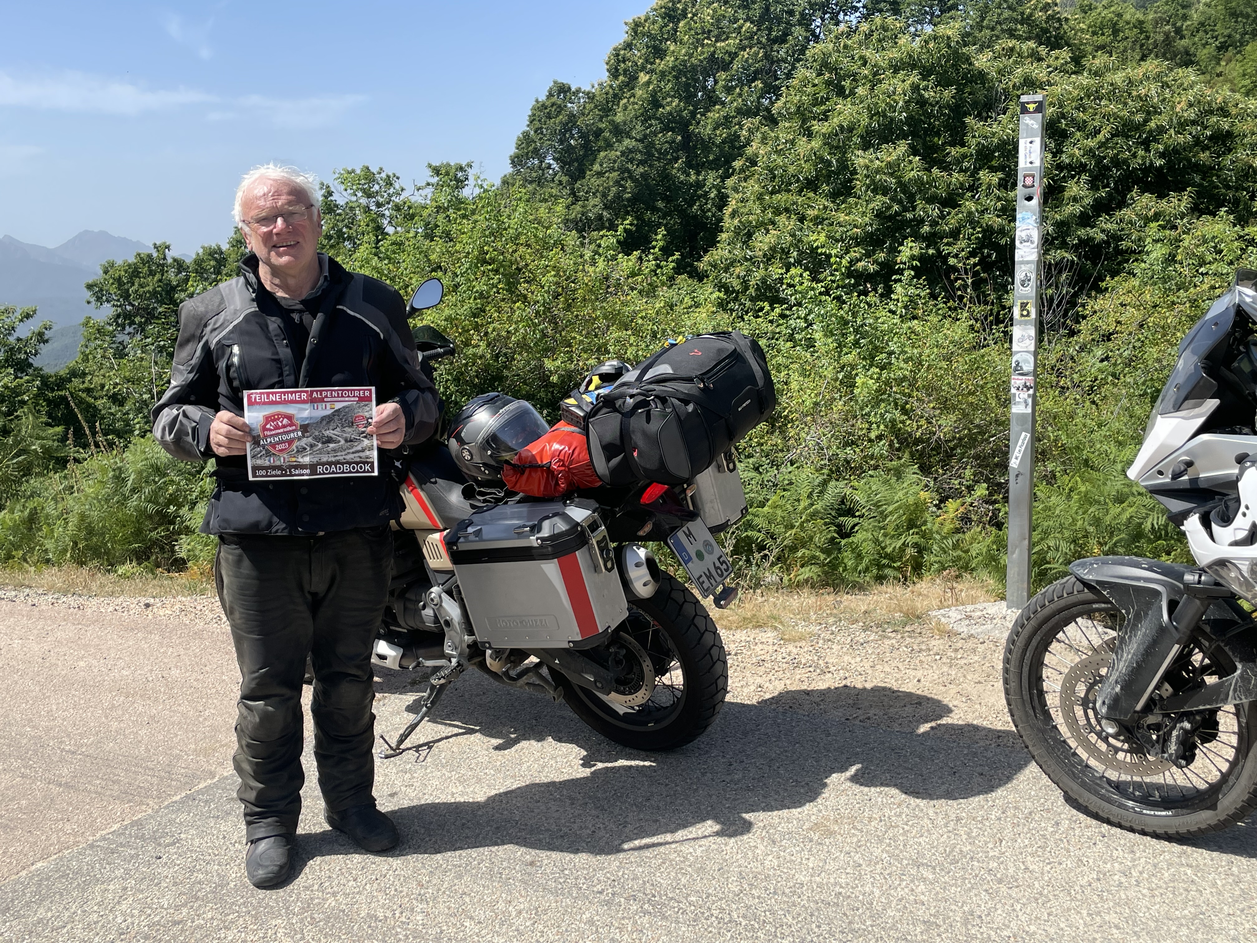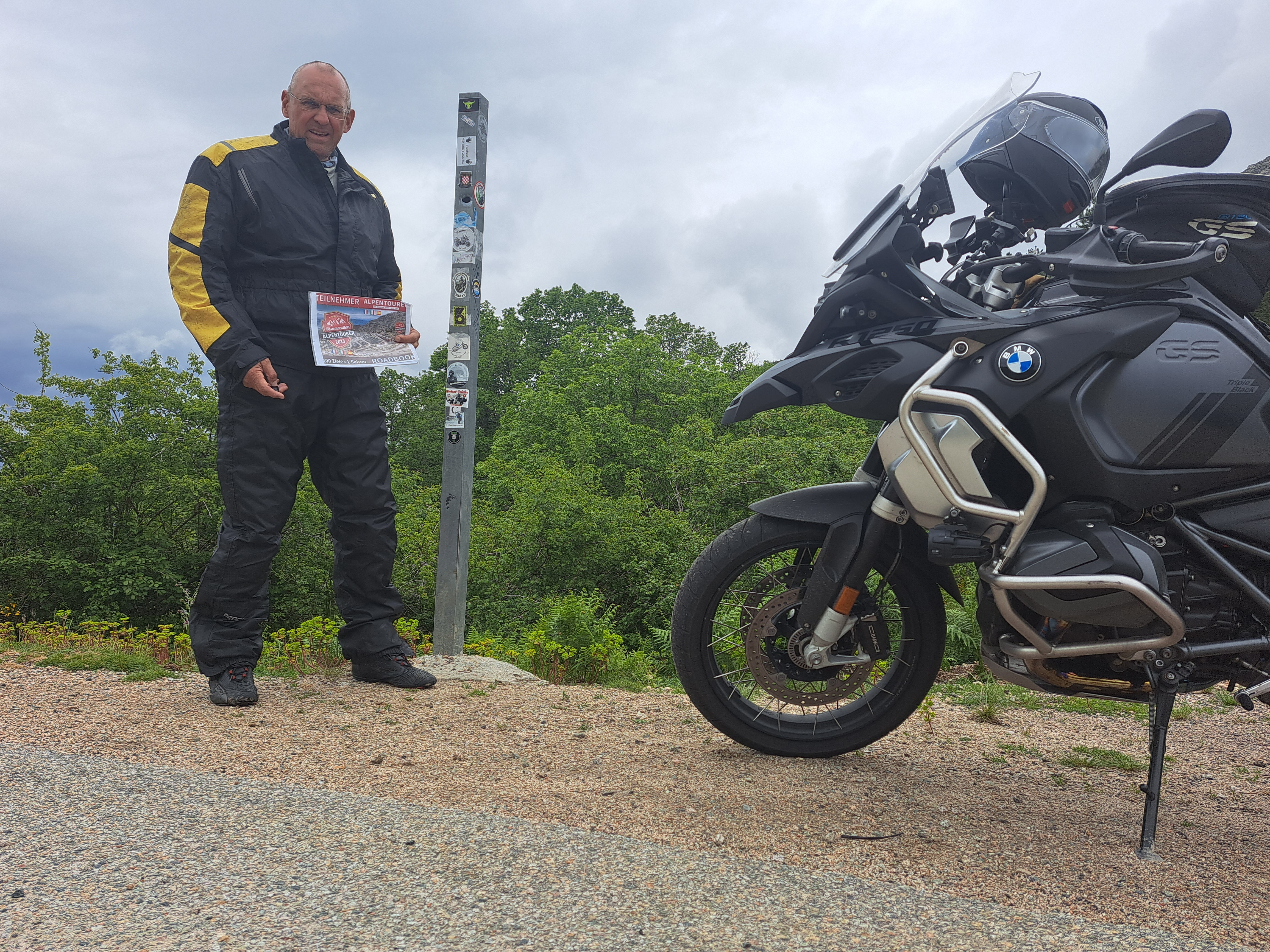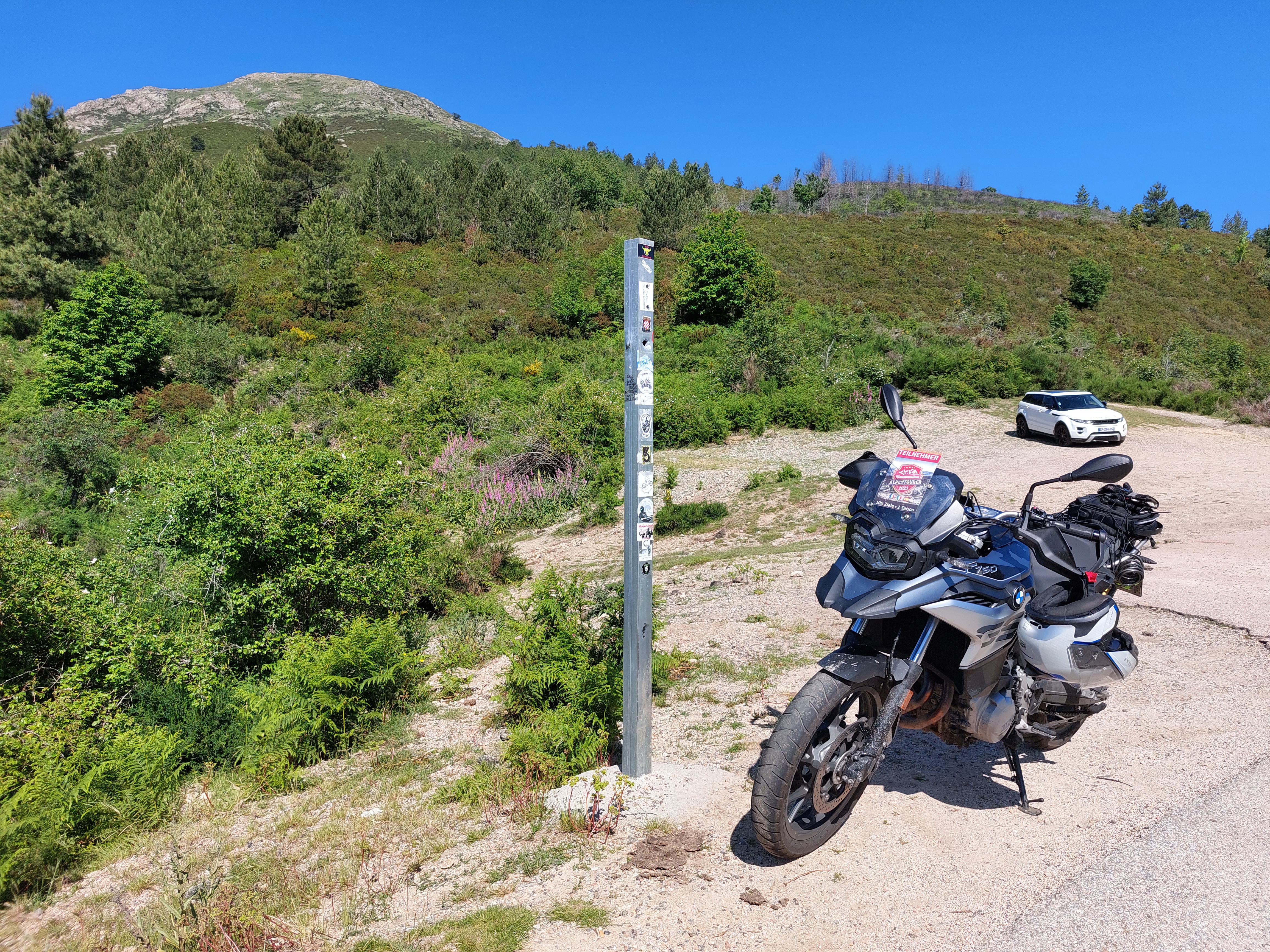 Nachtrag: Das Schild mit der Beschreibung der Berggipfel (haben einige genommen) ist aktuell nicht mit dem Motorrad erreichbar, das Unwetter hat eine breite, tiefe Rinne ausgeschwemmt, der gesamte Bereich war heute aufgeweicht...