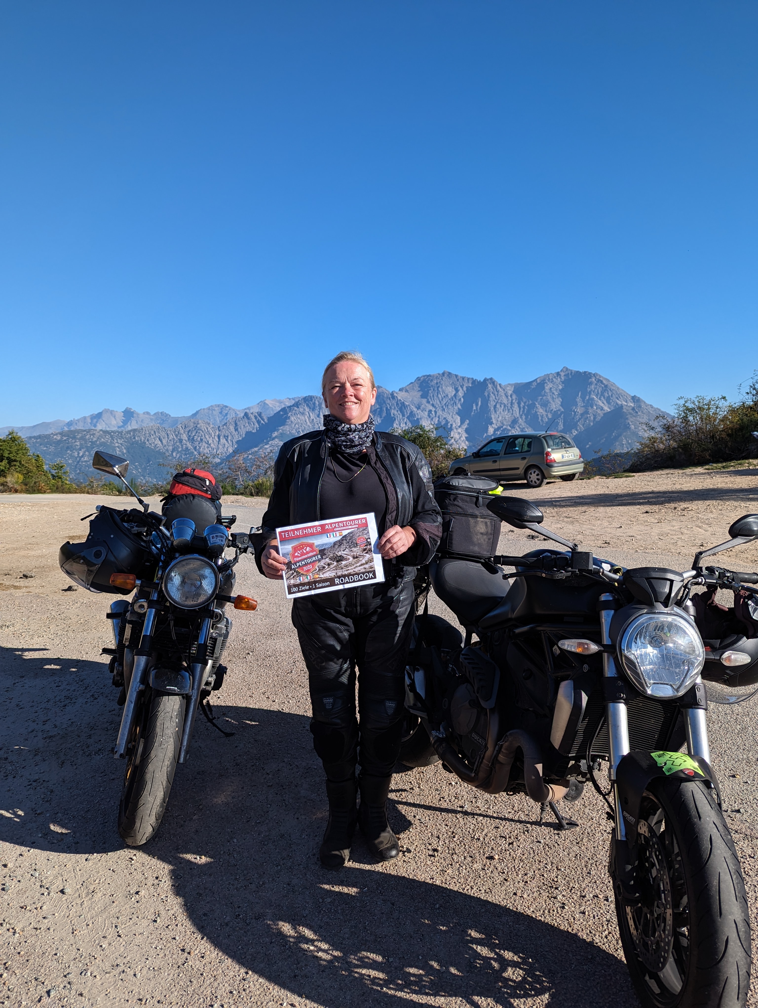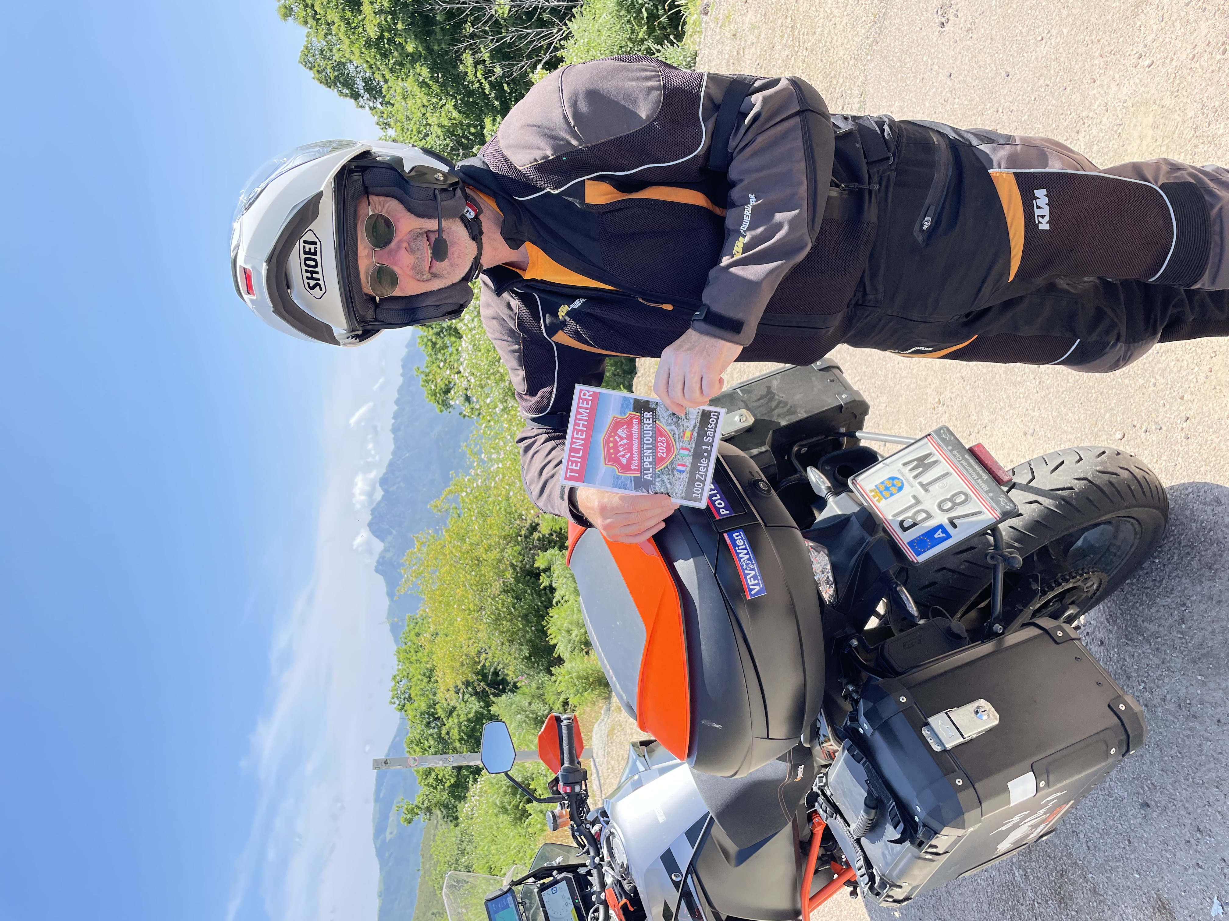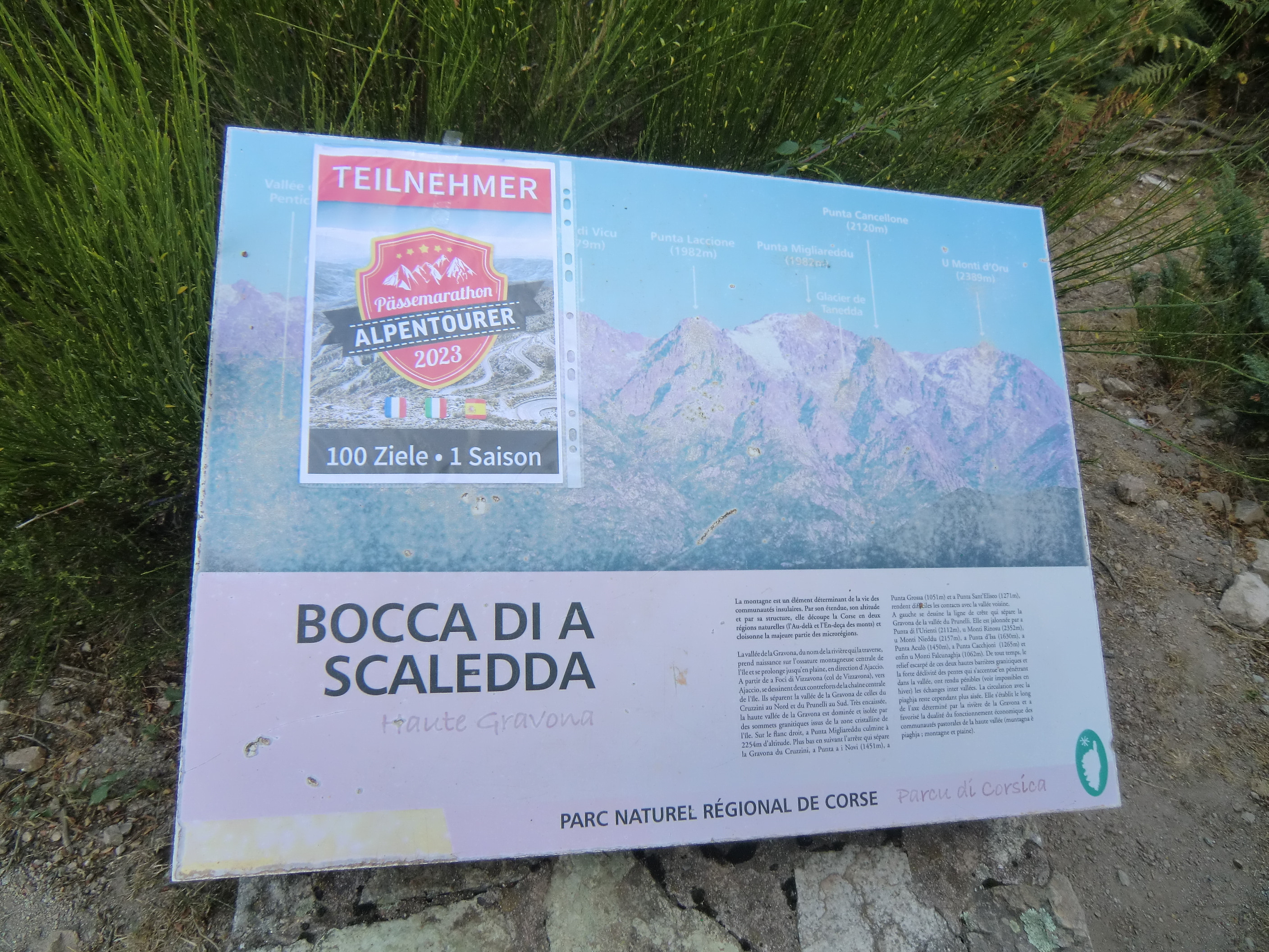 Nachtrag: Das Schild mit der Beschreibung der Berggipfel (haben einige genommen) ist aktuell nicht mit dem Motorrad erreichbar, das Unwetter hat eine breite, tiefe Rinne ausgeschwemmt, der gesamte Bereich war heute aufgeweicht...
