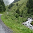 Der Weg ins Schlappintal zweigt in Klosters Dorf nach Nordosten ab. Mit einigen Kehren überwindet die bis hierher noch asphaltierte Straße eine erste Stufe. Wo der Asphalt endet folgt der Weg nun mit Steigungen bis zu 30% dem Schlappinbach bis zu der alten Walsersiedlung. Zum Abschluss passiert man einen kleinen Stausee. Die Befahrung der Strecke ist mautpflichtig und kostet 10 CHF. Die Maut ist 24 Stunden gültig, erhältlich vor Ort (also nach der Anfahrt) im Berghaus Erika in Schlappin gleich beim See. Das sehenswerte Walserdorf markiert die Baumgrenze wie auch den Punkt, an dem das Tal nach Südosten abschwenkt. Ein unbefestigter Fahrweg führt zwar noch weiter durch das hochalpine Tal bis auf gut 2.024 Meter. Hier besteht aber ein Fahrverbot für Kfz. |