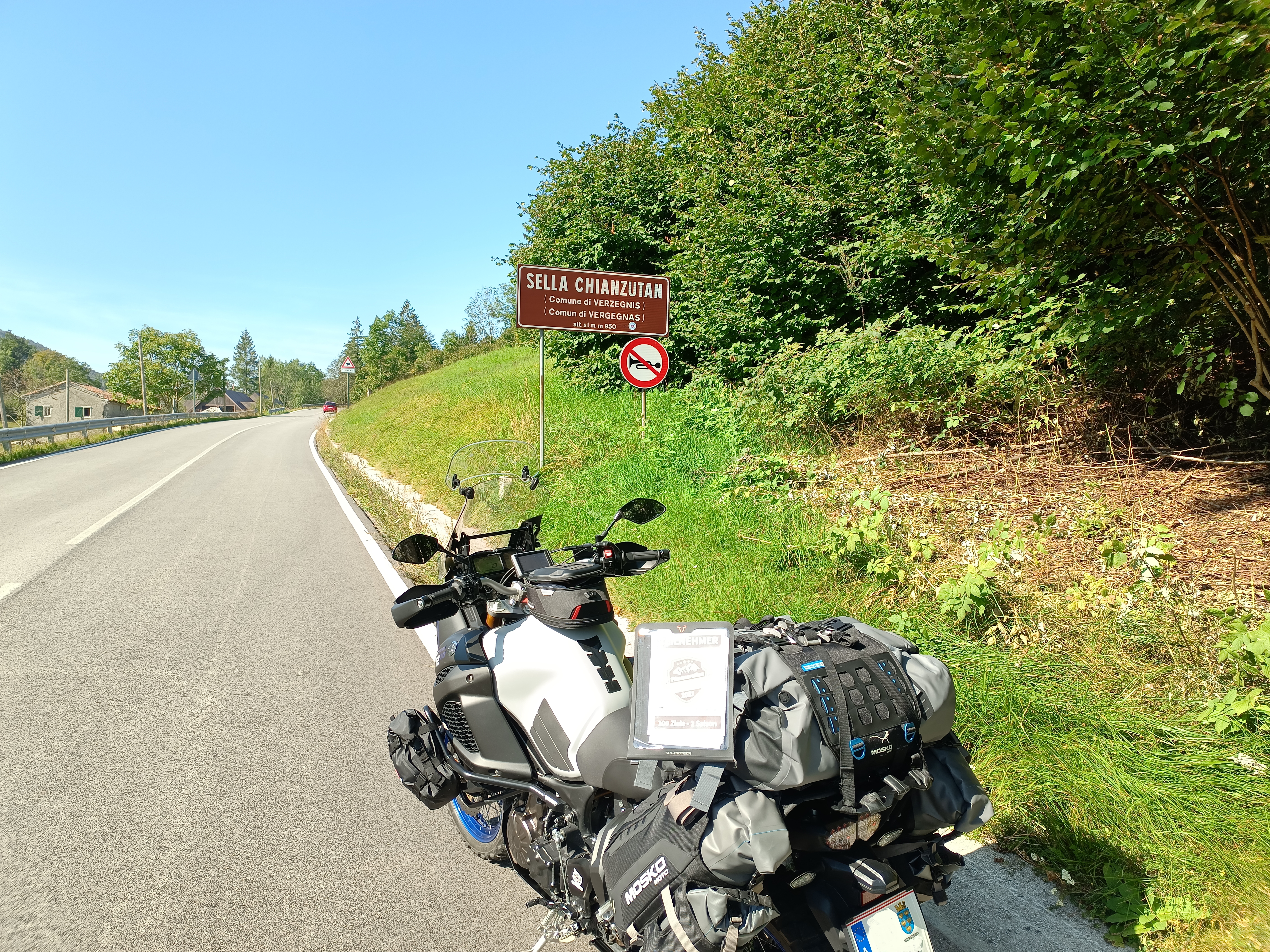 Tolmezzo ist der Hauptort der Karnischen Alpen und kann mit einer Einwohnerzahl von etwas über 10.000 fast schon als eine Großstadt in dieser Region bezeichnet werden. Vor allem ist er ein prima Ausgangsort für die Befahrung des Sella Chianzutan. Kurz nachdem man den Fluss Tagliamento überquert hat, geht es auch schon auf die Ostrampe dieser Passstraße, die als SP1 ausgewiesen ist. In schönem Kurvenschwung geht es nach Verzegnis, wo Kunstliebhaber einen kurzen Abstecher in Richtung Norden einplanen sollten, um sich Villa di Verzegnis näher anzuschauen. Es handelt sich um ein Freilichtmuseum, in dem zeitgenössische Skulpturen – unter anderem von Bruce Nauman, Richard Nonas, Dan Graham und Richard Long – in die Landschaft integriert wurden. Der Eintritt ist kostenlos und lohnt sich! Zurück auf der Passstraße passiert man noch den Lago die Verzegnis bevor man in westlicher Richtung dem recht unspektakulären Scheitel auf 950 Meter Höhe entgegen fährt. Ab dort wird es dann auch fahrerisch interessant: Die Südrampe kann mit einigen schönen Kehren auf gutem Asphalt begeistern, bevor sie beim Weiler Pozzis ausläuft. |