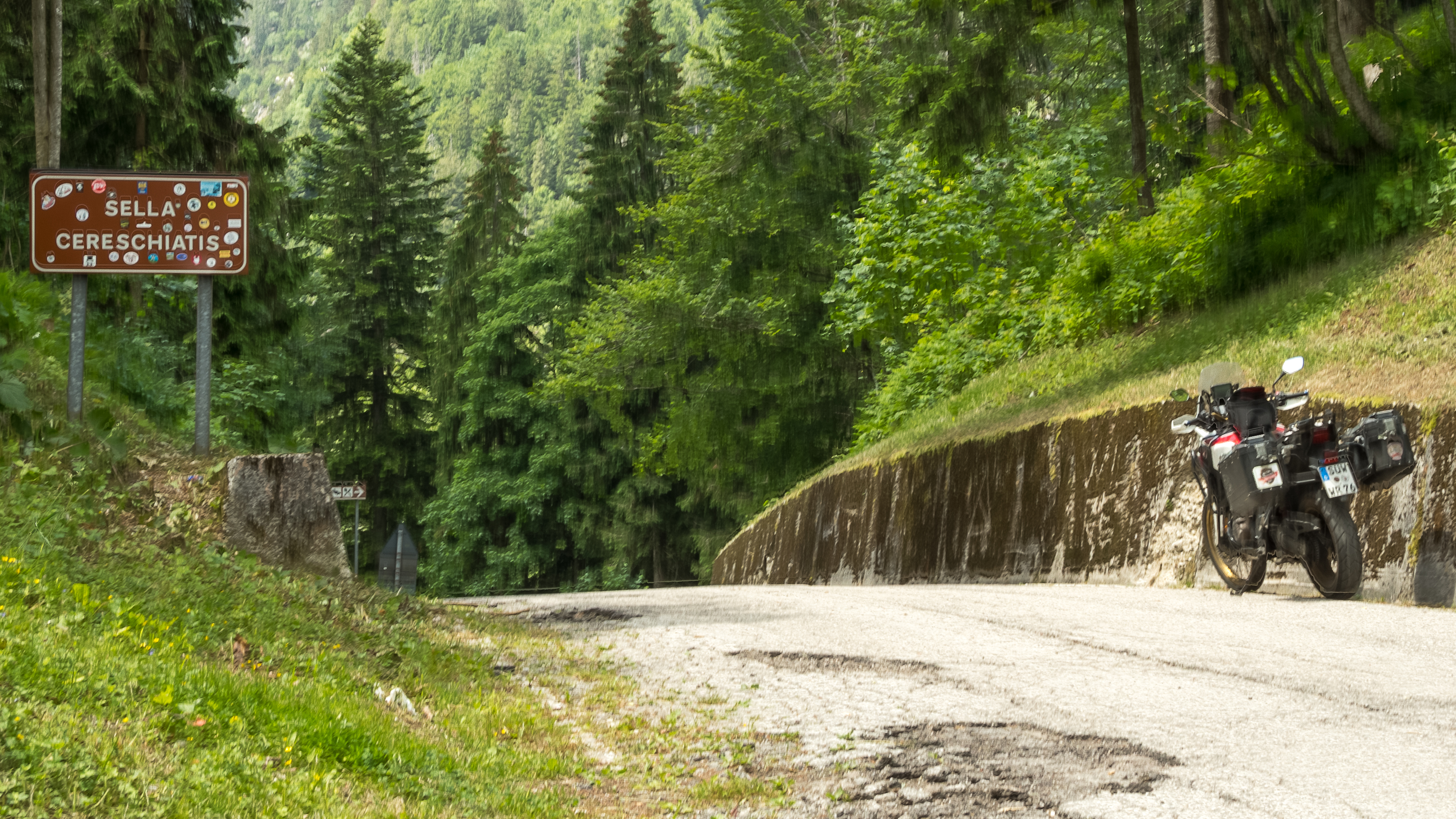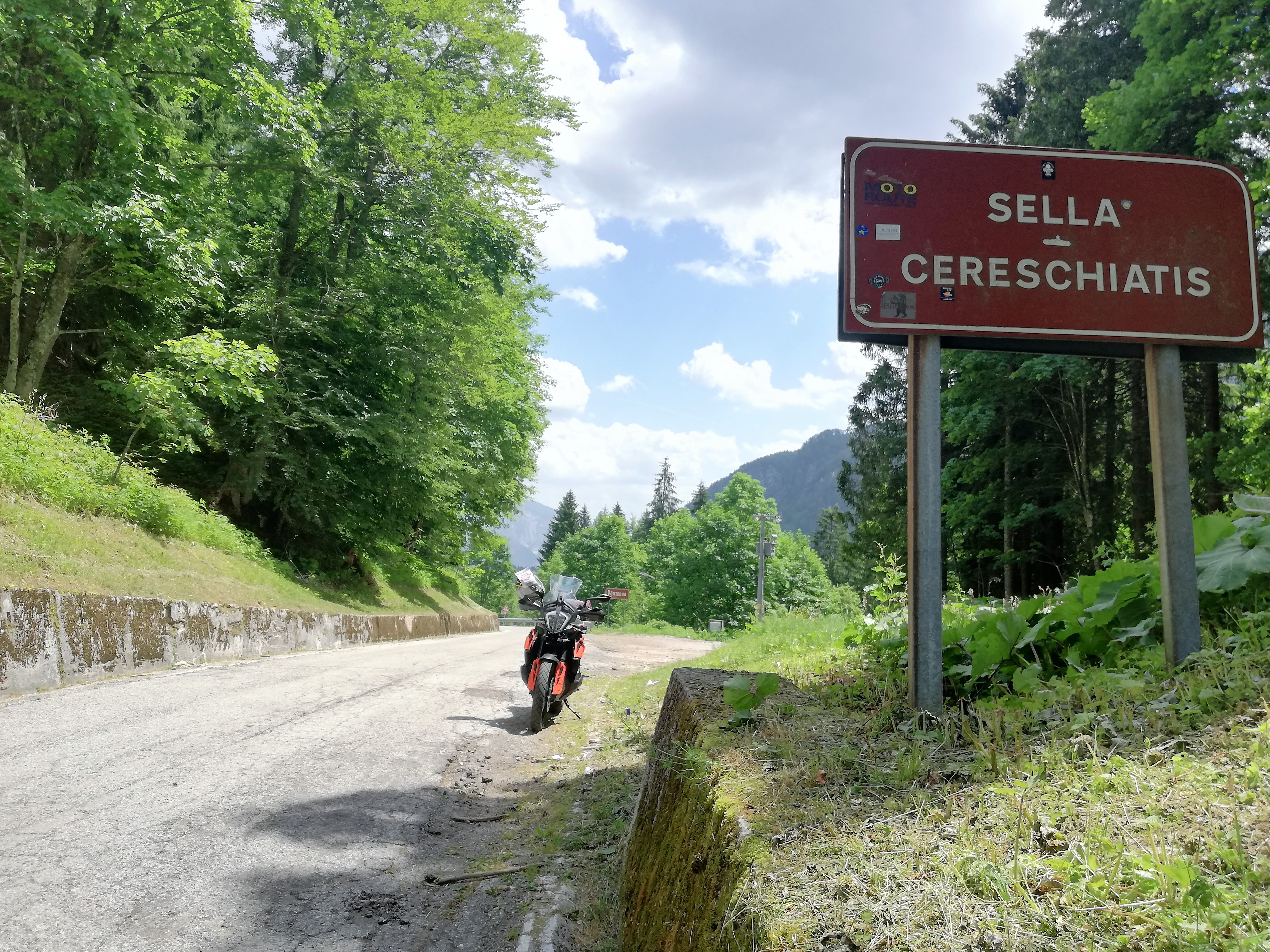 Im nördlichen Friaul und Grenzbereich der Julischen und Karnischen Alpen findet sich unweit der Autobahn sowie der Eisenbahnstrecke Villach-Udine direkt an der Mündung des Aupatals in das Eisental die kleine Gemeinde Moggio Udinese. Sie ist aufgrund ihrer sehenswerten Fella-Brücke und der Abtei San Gallo einen kurzen Bummel wert, bevor es auf die Südrampe der als SP12 ausgewiesenen Passstraße geht. Das erste Teilstück zeigt sich mit moderaten Steigungen und recht wenigen Steigungen zunächst noch wenig imposant. Dafür ist es schön zu fahren, da die Strecke entlang eines hübschen Baches verläuft und der Asphalt erst vor wenigen Jahren modernisiert wurde. Erst kurz vor dem Pass – etwa ab Kilometer 15 – gilt es die Maximalsteigung von 15 % auf einigen schnell aufeinander folgenden Kehren zu meistern. Eine längere Pause lohnt sich am Scheitel nicht, da er sich mitten im Wald befindet. Stattdessen geht es geradewegs weiter nur Norden, wo man mit schönen Kurven, einigen engen Kehren, einer kurzen Fahrt durch einen Tunnel und vor allem tollen Ausblicken auf das darunter liegende Kanaltal (italienisch: Val Canale) sowie zum Monte Cavallo belohnt wird. |