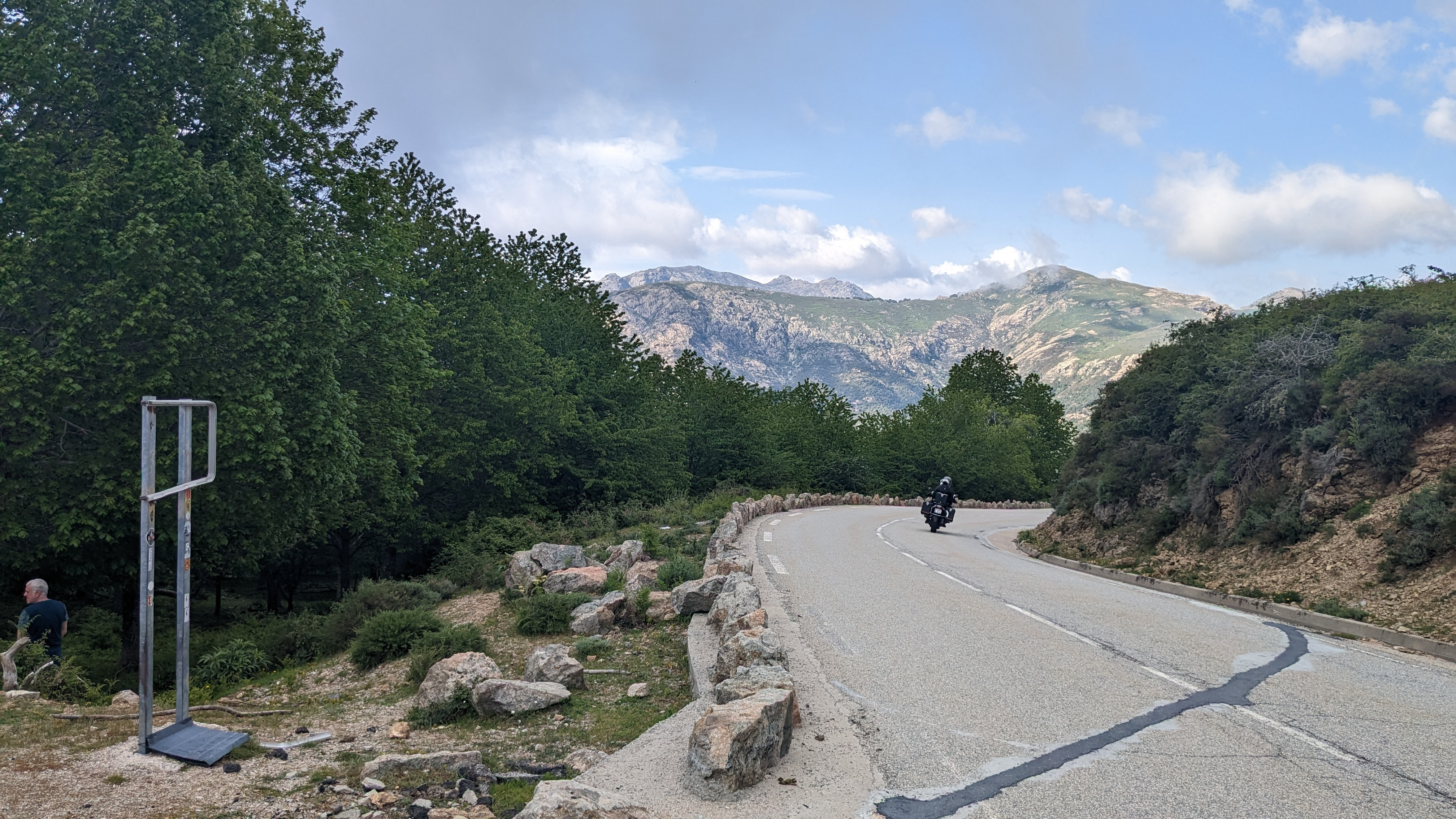 An- und Abfahrt super kurvig und rhythmisch durch dichten Wald auf perfektem Belag. |