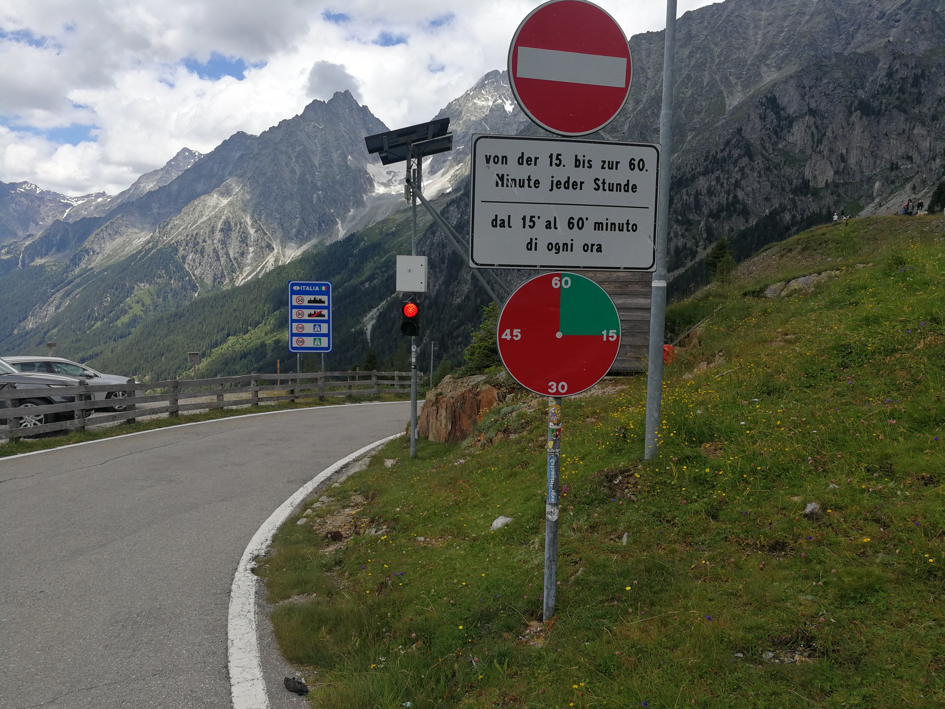 | Info | Einbahnregelung zwischen Antholzer- und Sattel (von Italien für 15 Min. nach der halben Stunde, von Österreich für 15 Min. nach der vollen Stunde). Fahrverbot für Kfz über 3,5 t, LKW, Busse, Kfz über 3 m Gesamthöhe. |
