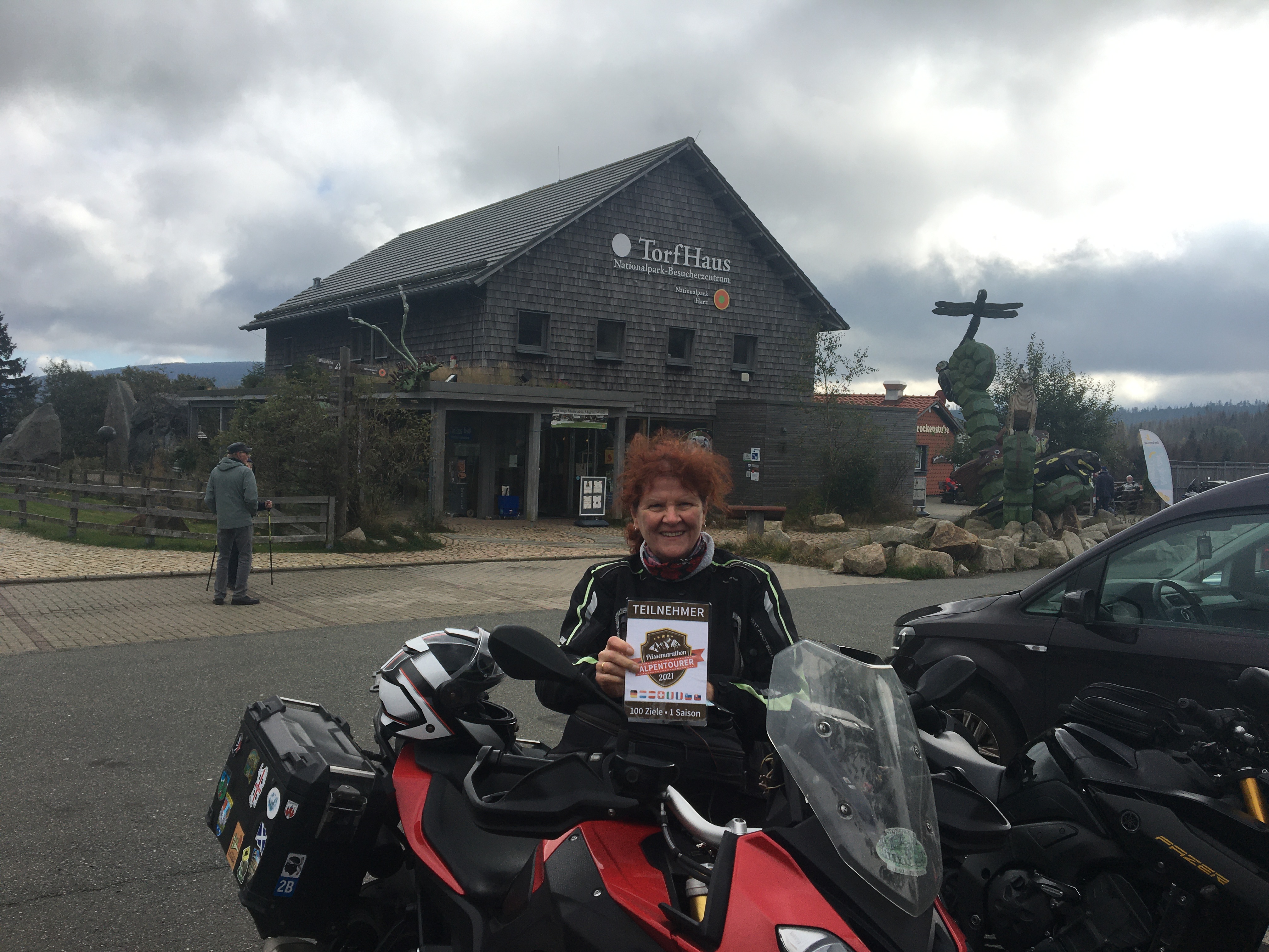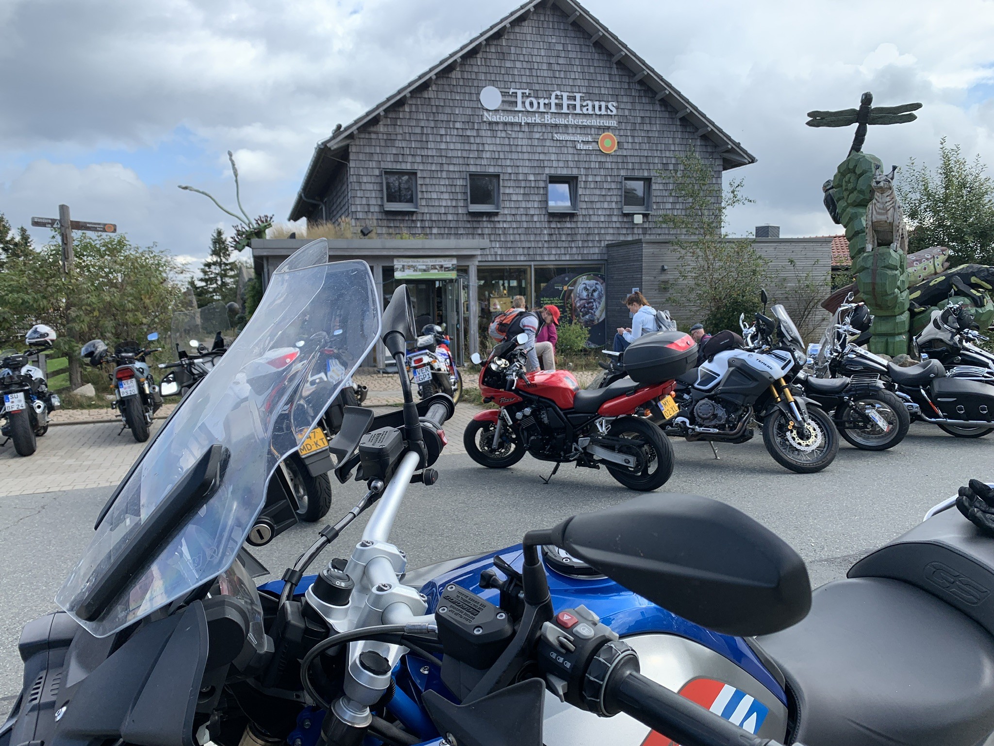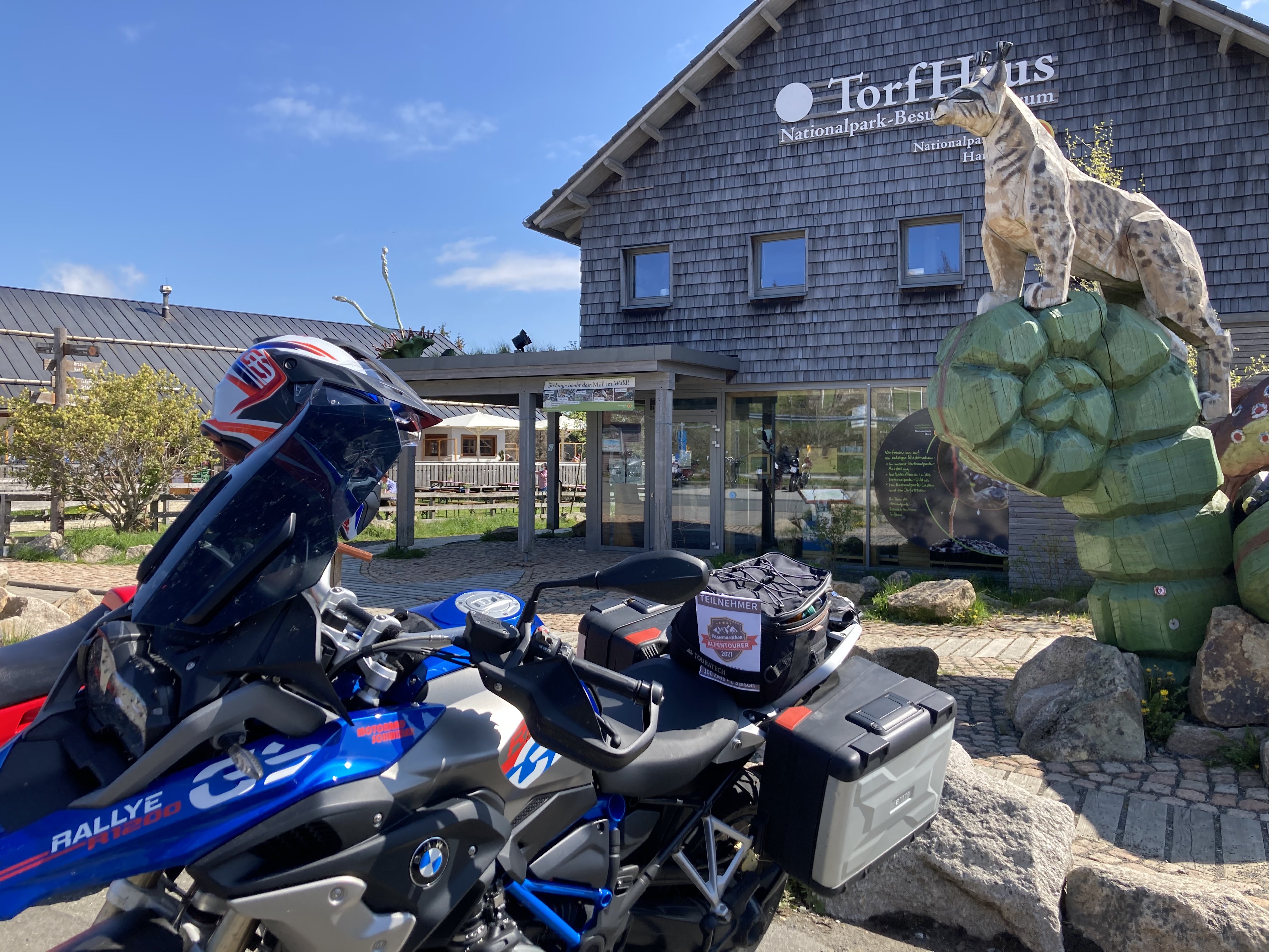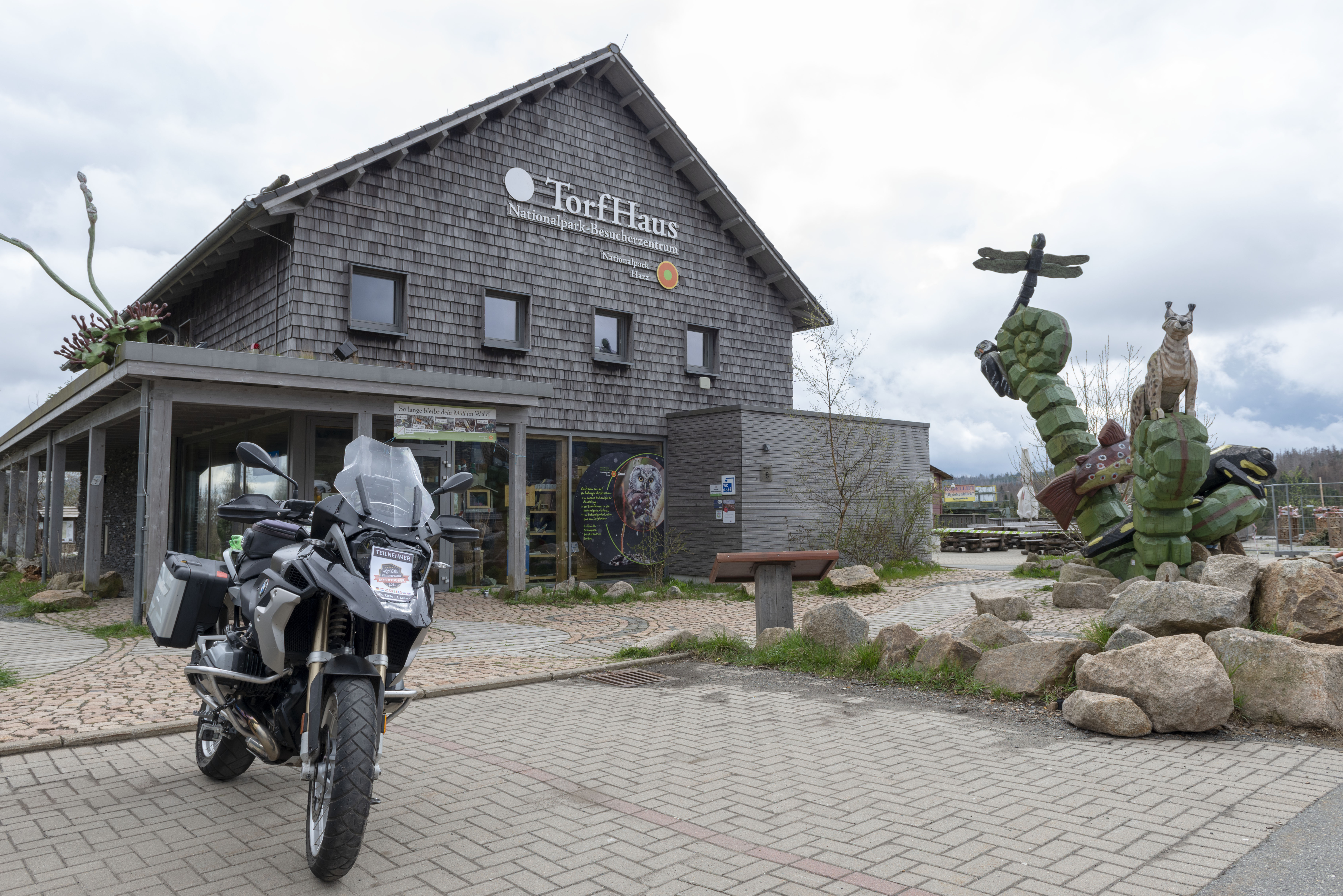 Der Aussichtspunkt Torfhaus erfreut sich vor allem an Wochenenden großer Beliebtheit. Hier hat sich ein Bikertreff etabliert. Allerdings liegt der Punkt unmittelbar an der recht stark befahrenen B4, die Braunlage mit Bad Harzburg verbindet. Wir empfehlen daher die deutlich entspanntere Anfahrt ab Altenau über die L504. Auf knapp über 800 Metern, dem höchsten anfahrbaren Punkt im Harz westlich vom Brocken, ist die Fernsicht auf den zentralen Gipfel dieses Mittelgebirges recht gut. |