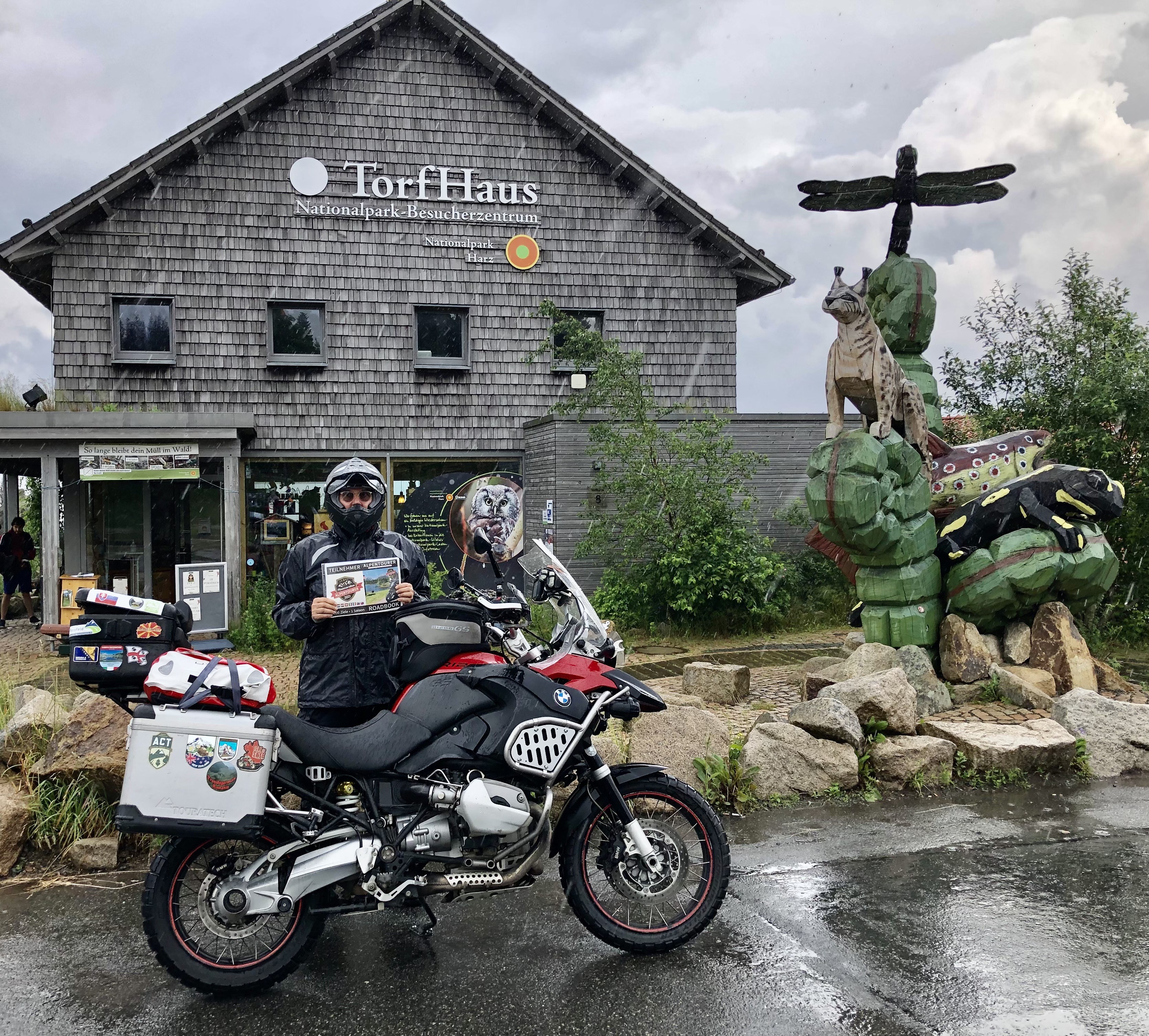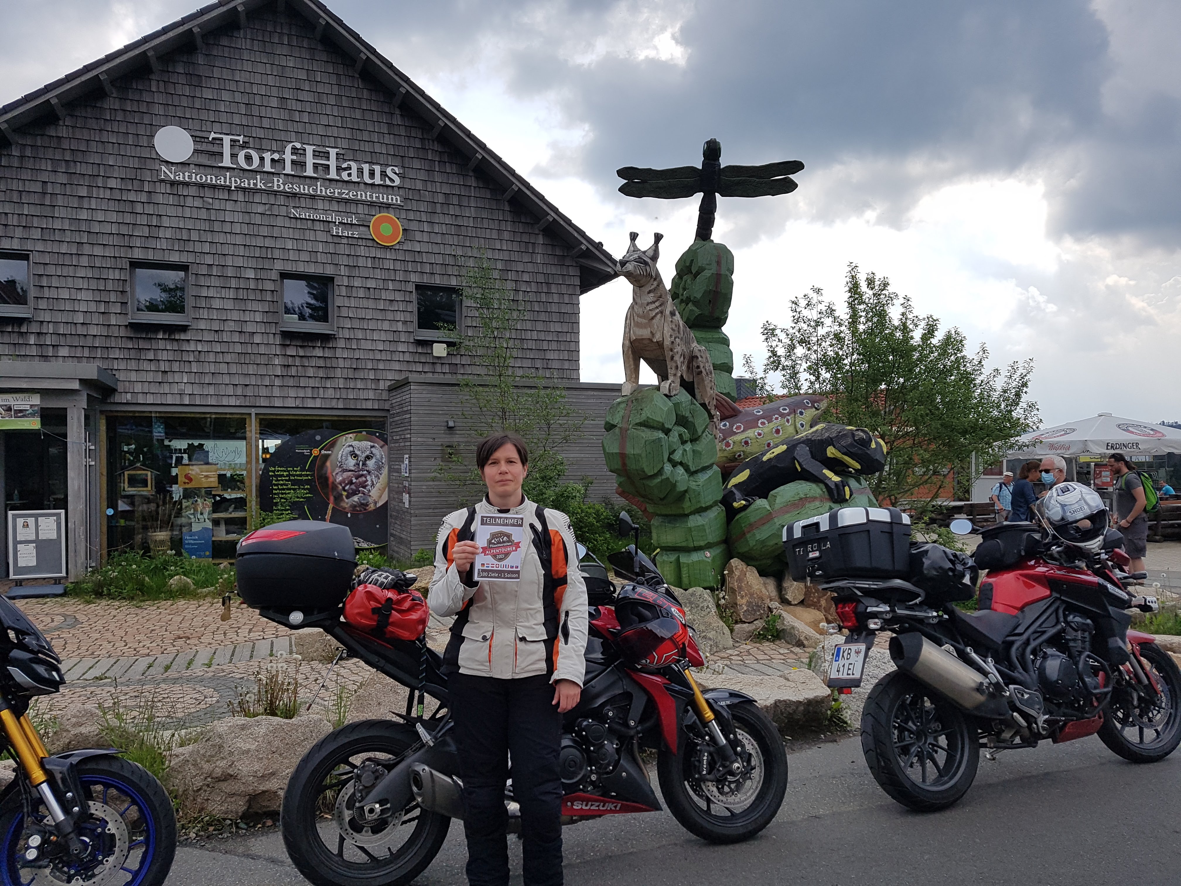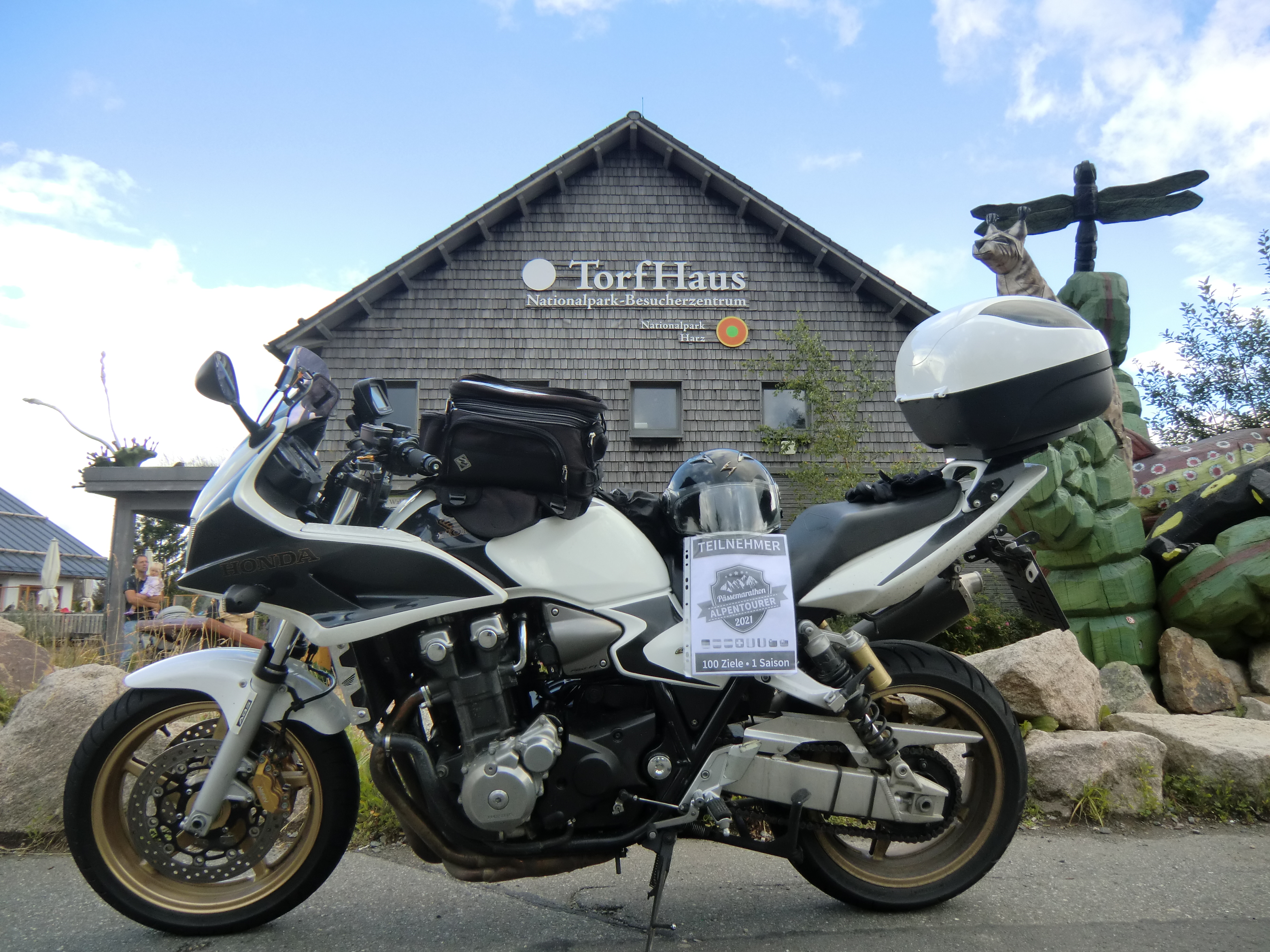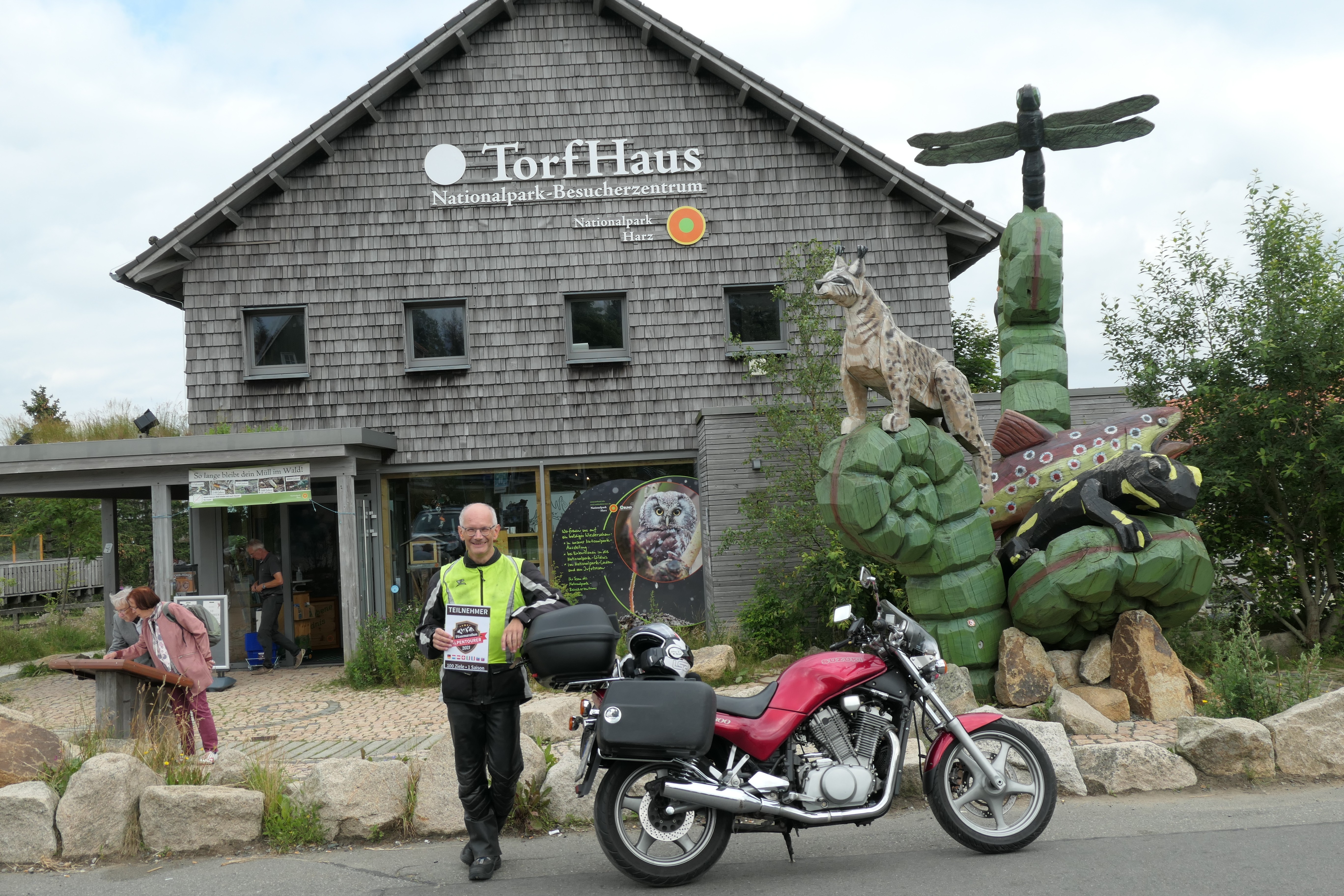 Der Aussichtspunkt Torfhaus erfreut sich vor allem an Wochenenden großer Beliebtheit. Hier hat sich ein Bikertreff etabliert. Allerdings liegt der Punkt unmittelbar an der recht stark befahrenen B4, die Braunlage mit Bad Harzburg verbindet. Wir empfehlen daher die deutlich entspanntere Anfahrt ab Altenau über die L504. Auf knapp über 800 Metern, dem höchsten anfahrbaren Punkt im Harz westlich vom Brocken, ist die Fernsicht auf den zentralen Gipfel dieses Mittelgebirges recht gut. |