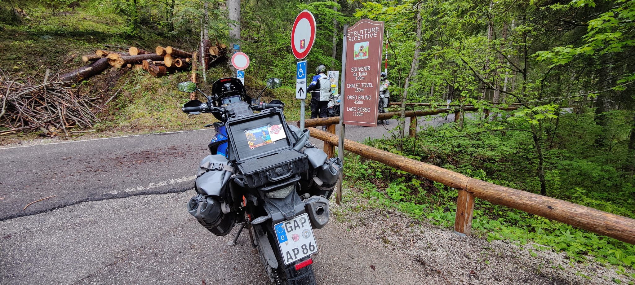 | Mautstraße | Von Juni bis September kostenpflichtiger Parkplatz am See. Ticket muss vorab an der Kasse in Tuenno gekauft werden. Pkw € 6,00; Motorrad € 3,00. |