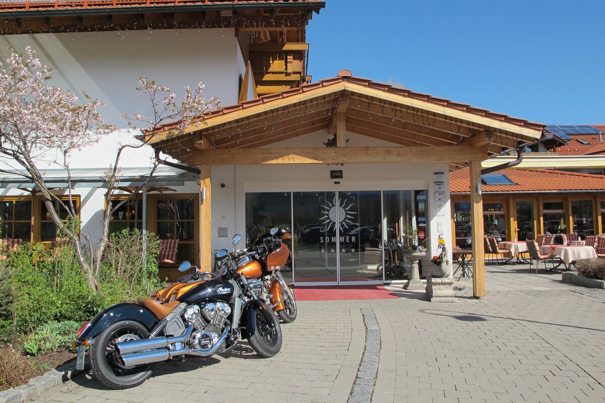 Der Name ist hier schlichtweg Programm! Bei einem Motorradurlaub im Hotel Sommer bleiben keine Wünsche offen. Das Haus direkt am Forggensee ist der ideale Standpunkt für traumhafte Motorradtouren über die Allgäuer- und Tiroler-Pässe sowie für genussreiche Seenumrundungen. Auf Motorradtouren durchs Allgäu gilt es viele Seen zu umrunden und Pässe zu erfahren – immer das tolle Alpenpanorama vor Augen. Keine Region eignet sich besser für erlebnisreiche Motorradtouren als Bayern. Und hier lockt besonders das Allgäu mit seiner malerischen Landschaft Nach einer Tour, bietet der großzügige Wellnessbereich mit Hallen- & Freibad viele Möglichkeiten zum Relaxen. Pässe - Seenumrundungen - Königsschlösser - traumhafte Touren: Das Hotel Sommer hält die Highlights der Region als maßgeschneiderte Touren bereit. Motorradurlaub im AllgäuDas Allgäu ist Dank seiner Königsschlösser Neuschwanstein und Linderhof weltweit ein Begriff. Motorradfahrer sind keine Kunstbanausen und lieben kulturelle Ausflugsziele, aber vorrangig interessieren Kurven, Hügel und Pässe dieser lohnenswerten Region. |