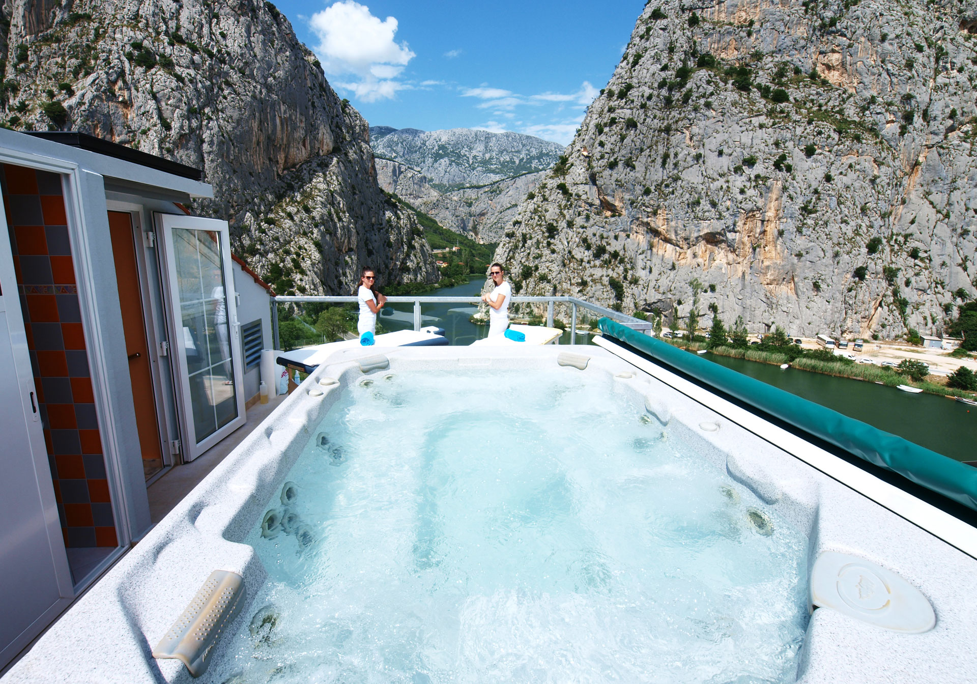 Das Boutiquehotel thront, östlich von Split gelegen, auf einem Steinhügel über der historischen Hafenstadt Omiš. Pluspunkte sind die Nähe zu Strand und Stadtzentrum, wie auch die herrlichen Motorradstrecken rund herum. Wenige Minuten entfernt liegt die Cetina-Schlucht, durch die man ins gebirgige Hinterland gelangt. Zusätzlich gibt es zahlreiche Freizeitmöglichkeiten wie Rafting, Wandern oder Klettern. Das elegante Restaurant 'Knez' und die Hotelterrasse mit dem spektakulären Blick auf die Schlucht des Flusses Cetina, die Altstadt von Omiš, das Meer und die Insel Brač bieten eine große Auswahl an gastronomischen Spezialitäten. Dazu gehören auch die lokalen Spezialitäten aus der Region Poljica, die aus ökologisch angebauten Zutaten und traditionellen Rezepten zubereitet werden, die älter als 400 Jahre sind. Das hilfsbereite Personal wird einen Besuch zu einem unvergesslichen Erlebnis machen. |