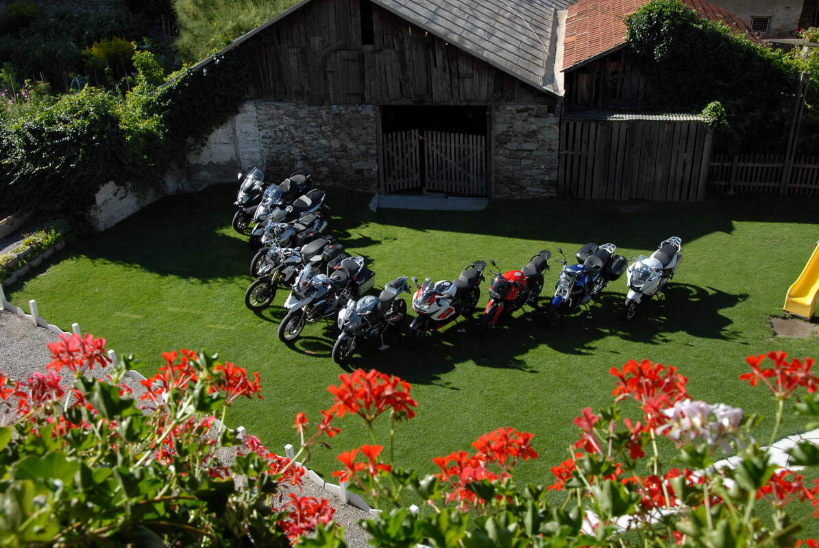 1 Familie auf 2 Rädern: Erich, Kaj, Gallus und Stefan - alles begeisterte Biker. Böse Zungen behaupten, ihnen wäre alles recht, was einen Sattel hat. Nur weil sie neben dem BMW Testride-Center auch noch einen Stall voller Pferde pflegen. Auch wenn beides mit Pferdestärken zu tun hat, bevorzugt die junge Generation eindeutig die PS mit 2 Rädern. Als Gast genießt man die persönliche Atmosphäre des Biobauernhofs und die davon beeinflusste, regionale Küche. Motorradurlaub im Vinschgau, zwischen Stilfserjoch und ReschenseeDas Dreiländereck Italien, Schweiz und Österreich ist eine der begehrtesten Bike-Reviere in den Alpen. Täglich hast du die Auswahl zwischen den bekanntesten Pässen im Alpenraum: z.B. das Timmelsjoch, den Passo Stelvio, den Gavia Pass, den Bernina Pass, den Mendelpass zum Kalterer See und viele mehr. Daneben findet man auch schnellere Passagen und gut versteckte Enduro-Wege. Jeden Mittwoch zeigt dir einer der Gas(t)geber auf einer 200 bis 300 Kilometer langen Motorradtour die genialsten Strecken und perfekte Aussichtsplätze. |