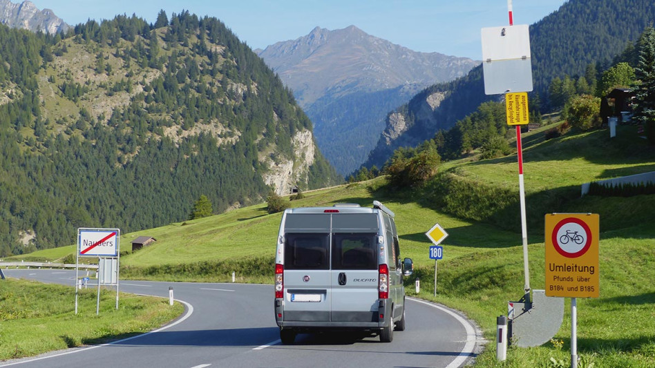 Aktuell und noch bis Ende September ist die Reschen-Bundesstraße zwischen Kajetansbrücke und Nauders für den Durchgangsverkehr gesperrt. Die Umleitung erfolgt über Schweizer Staatsgebiet nach Martina in Graubünden. Von dort ist die Auffahrt nach Nauders auf den zehn Kehren der B185 für Motorradfahrer im Sommer sicher ein Genuss, bei winterlichen Bedingungen aber für Pkw und Kleinbusse nur mit entsprechender Ausrüstung zu befahren. LKW, Fahrzeuge mit einem Anhänger über 6,5 Meter und Busse über 13 Meter dürfen diese Ausweichroute gar nicht nutzen.