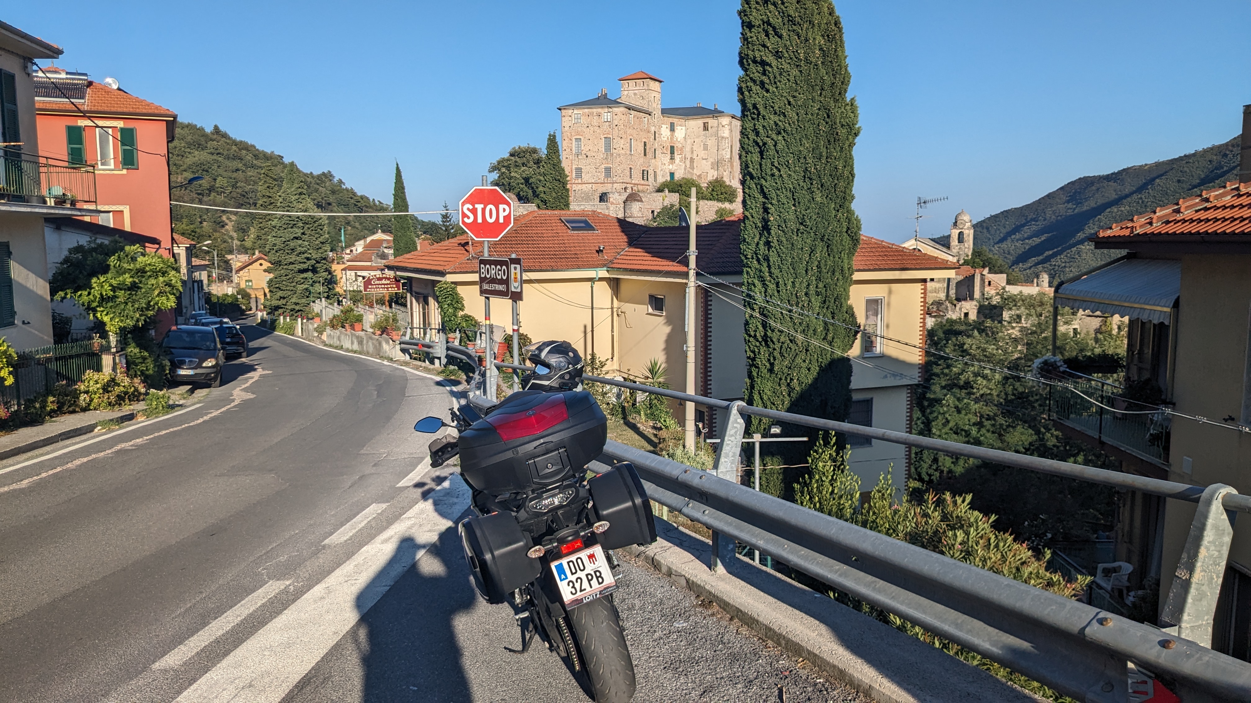 Den Colle Balestrino könnte man guten Gewissens auch als Pass der Burgen bezeichnen, schließlich verbindet die knapp 15 Kilometer lange Strecke gleich zwei äußerst sehenswerte historische Castellos miteinander. Von Toirano aus geht es auf die Ostrampe, die in schönen Schwüngen zum Castello di Balestrino führt. Die Burg thront über einem leider schon halb verfallenen Ortskern, der bereits vor längerer Zeit wegen eines prognostizierten Erdrutsches von den Bewohnern verlassen wurde. Betreten darf man die Burg aber dennoch nicht, da sie sich nach wie vor im Privatbesitz einer italienischen Adelsfamilie befindet, die den Zutritt nicht gestattet. Auf der anderen Seite der Passhöhe gelangt man dann zur hübschen Gemeinde Castelvecchio di Rocca Barbena, die das ebenfalls sehr sehenswerte Castello dei Clavesana und darüber hinaus einen schönen Altstadtkern zu bieten hat. Sehr zurecht wurde er als einer der schönsten Orte Italiens ausgezeichnet. Die Passstraße selbst ist nur wenig spektakulär, die Fahrt auf ihr macht dennoch Spaß, da sie gut ausgebaut und mit gutem Belag versehen ist. |