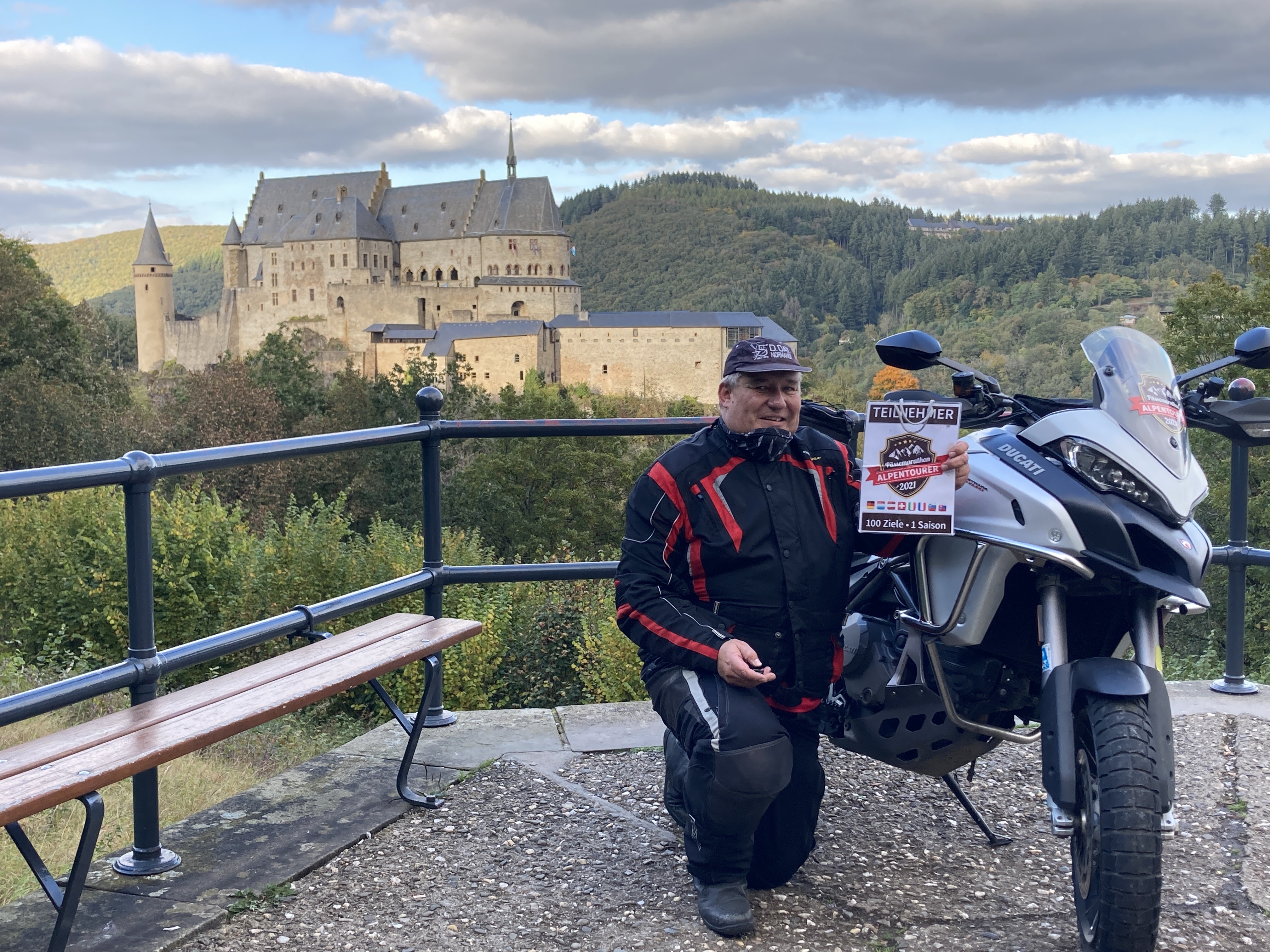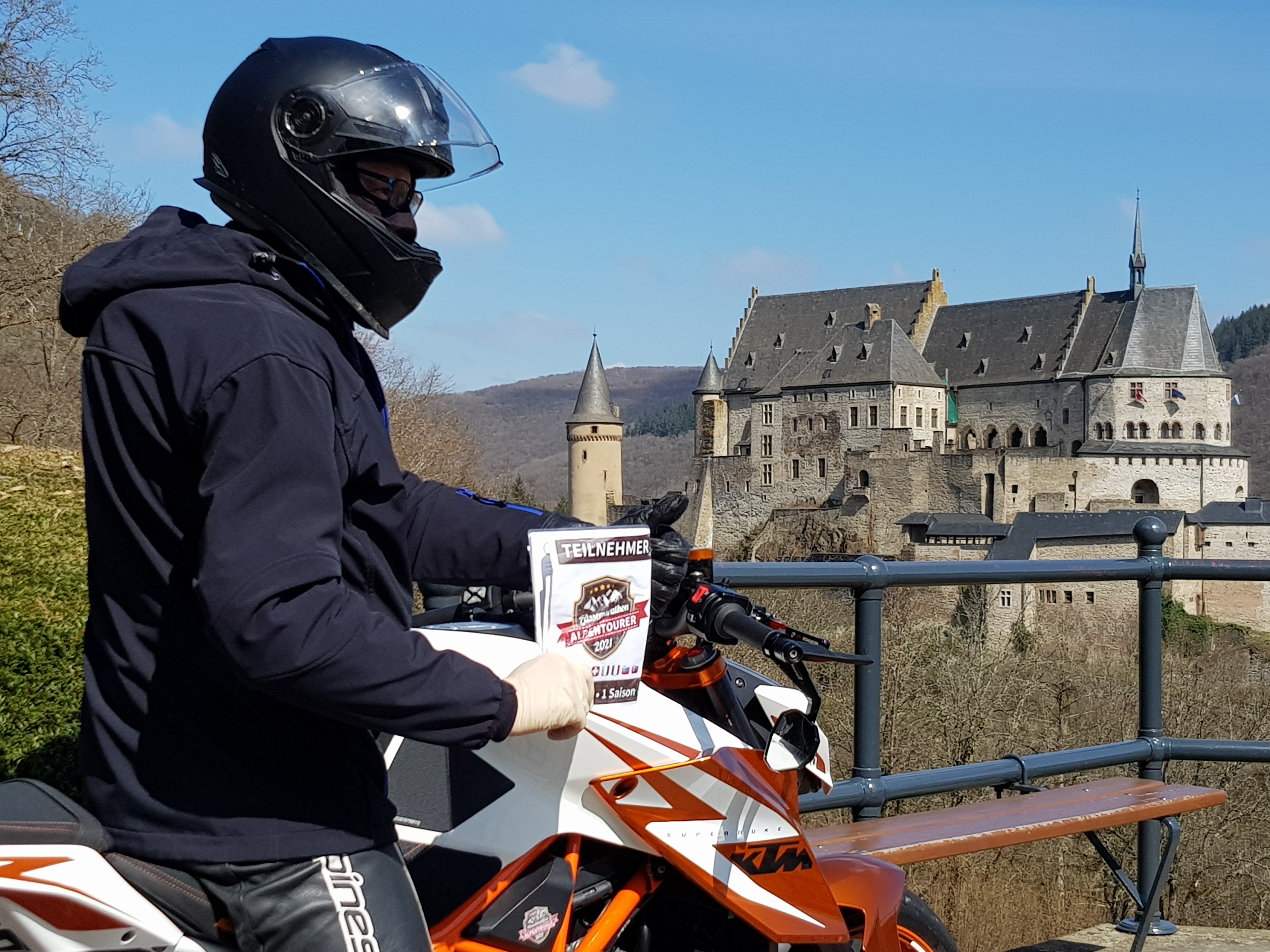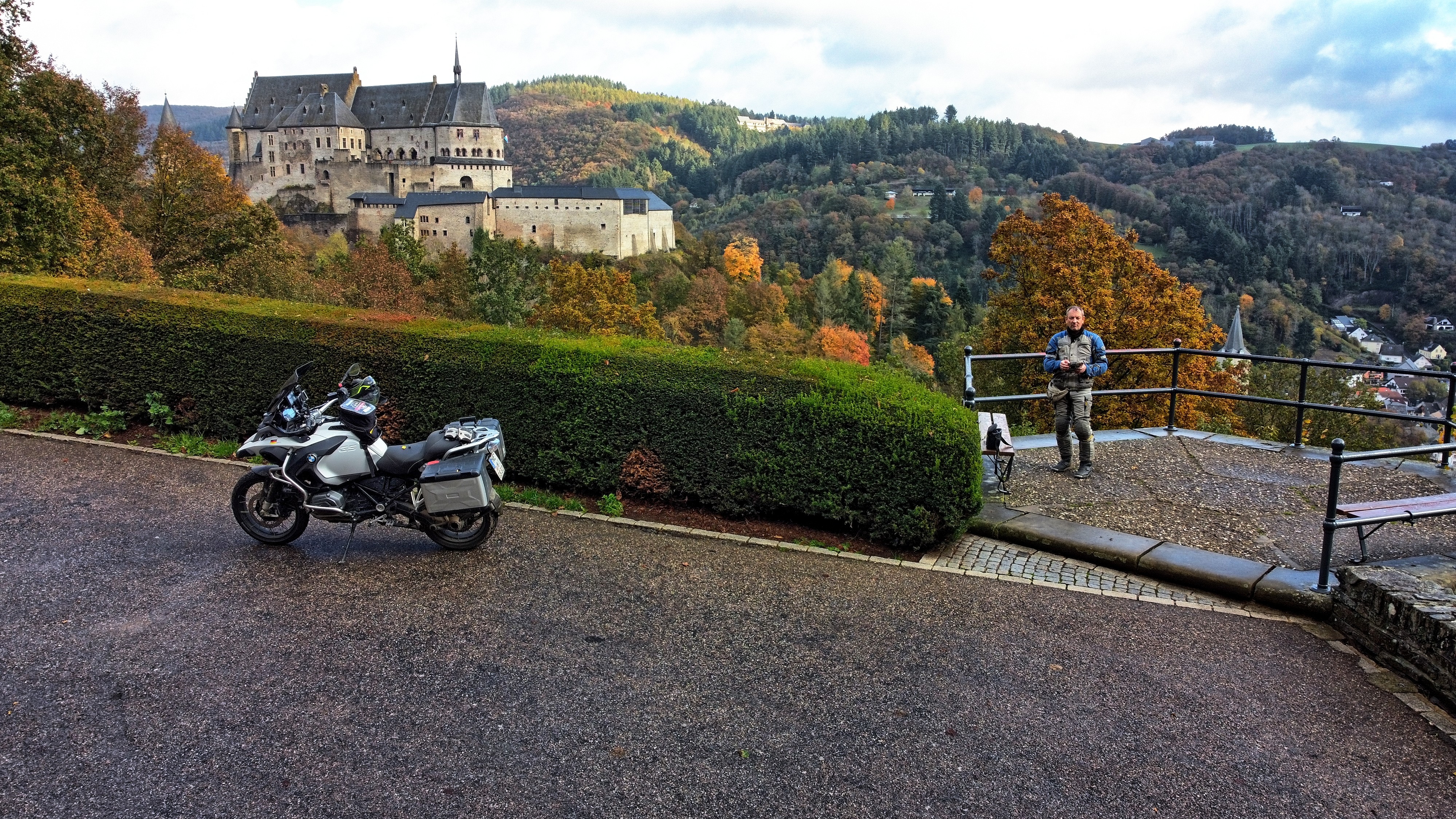 Wenn es mal einen Aussichtspunkt gibt, der ein prächtiges Motiv für Motorrad-Selfies bereithält, dann ist es dieser: Der Blick auf die Burg Vianden und das kleine Grenzstädtchen an der Our zieht sogar regelmäßig Hochzeitspaare an. Wenn nicht viel los ist, kann man es durchaus wagen, das eigene Motorrad auf die Plattform zu hieven, um das perfekte Bild zu erhaschen. Fahrerisch lohnenswert ist eine Tour entlang der Grenze zu Deutschland, immer am Ufer der stark verwundenen Our entlang, vor allem Richtung Norden bis etwa Dasburg. |