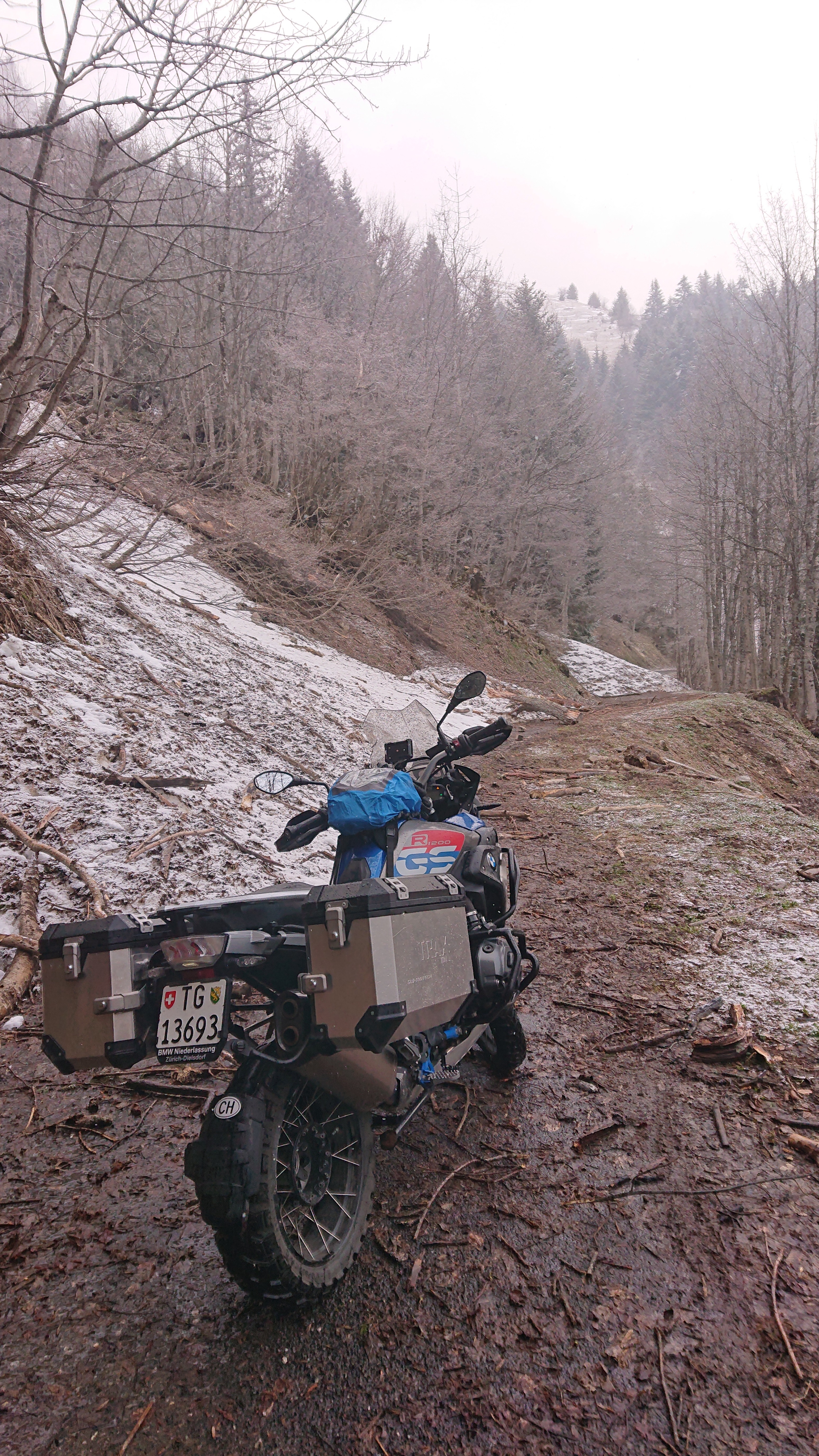Ca. 4km vor der Passhöhe ist die Strasse unpassierbar (Stand 16.04.21).