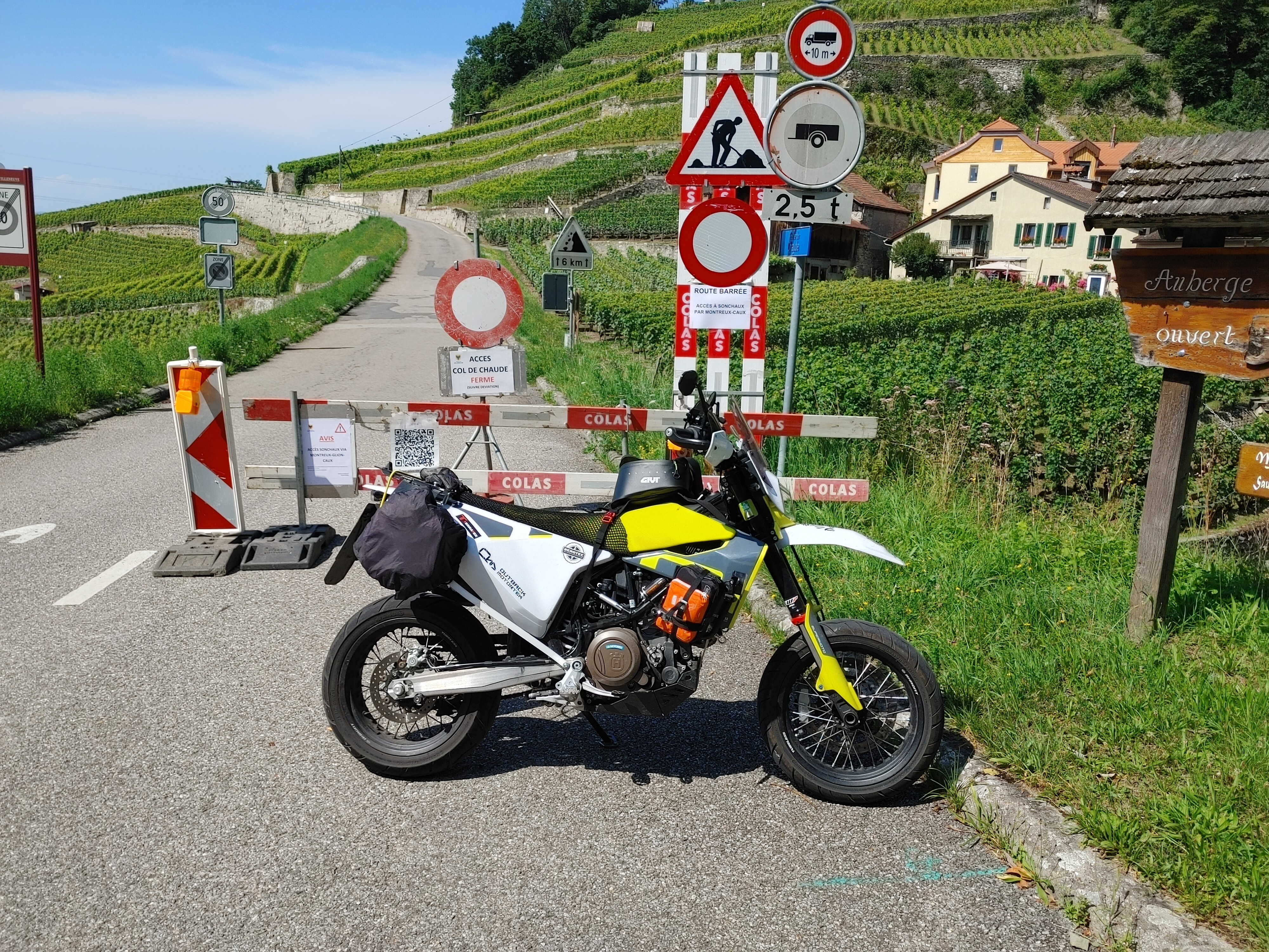 Ca 15km vor Passhöhe ist die Strasse wegen längerfristiger Spreng und Baumfällarbeiten gesperrt. Zufahrt bis Restaurant frei. Danach wird man durch mehrere Barken und Schilder aufgefordert um zu kehren. In meinem Fall war es dann ein Mitarbeiter der dort arbeitenden Firma, direkt am ersten Sperrschild. Kleiner Tipp. Französisch sollte man ein wenig können oder sich mit Google Übersetzer zu helfen wissen, da man dort, wie in vielen Regionen der Französischen Sprache, alle anderen Sprachen ablehnt ( LEIDER )