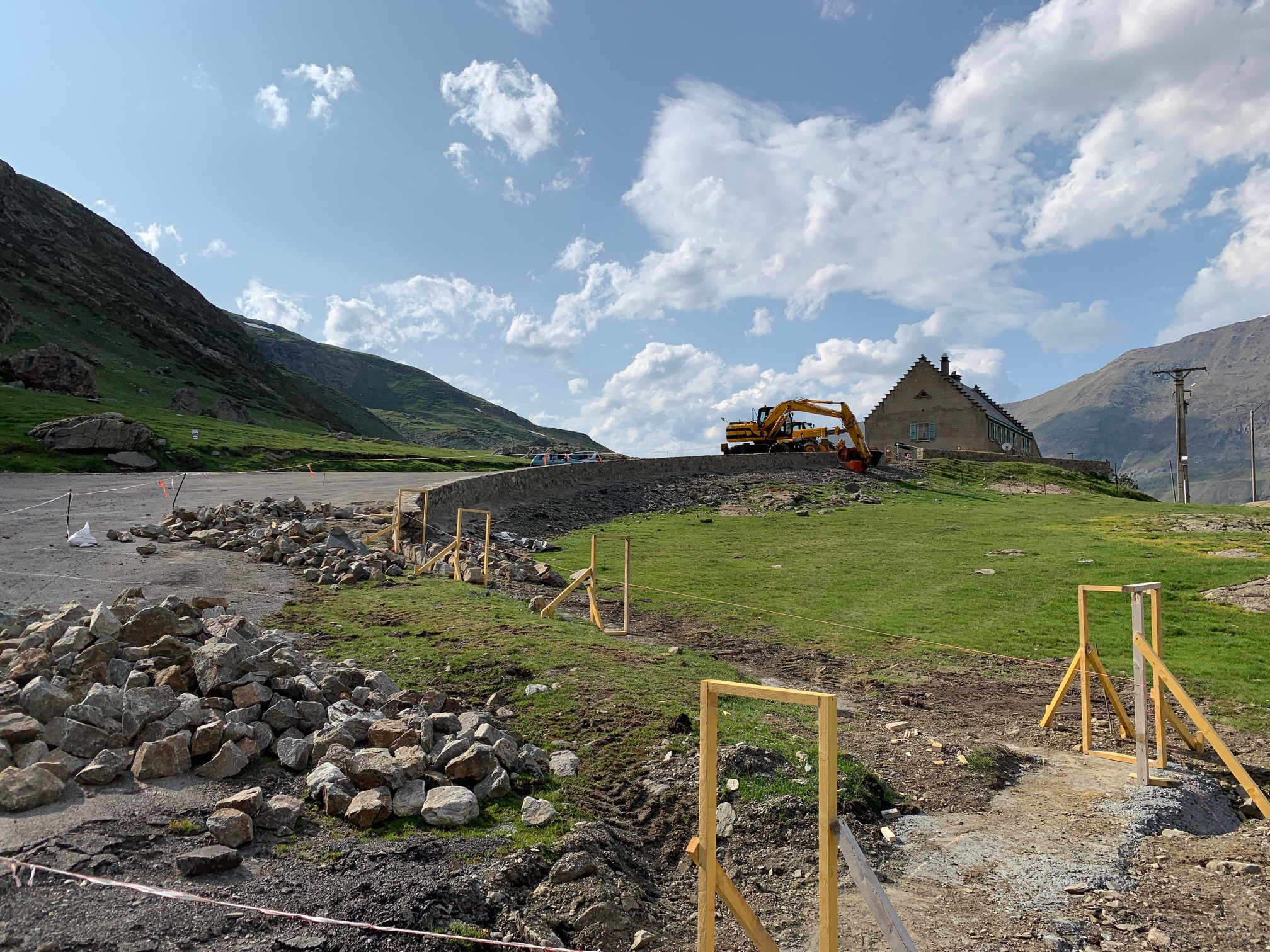 Der Pass ist nur noch bis 3,7km bis zum bisherigen Zielpunkt anfahrbar. Es wurde ein großer Parkplatz beim Restaurant gebaut und ab hier ist die bisherige Route nur noch ein Wanderweg.