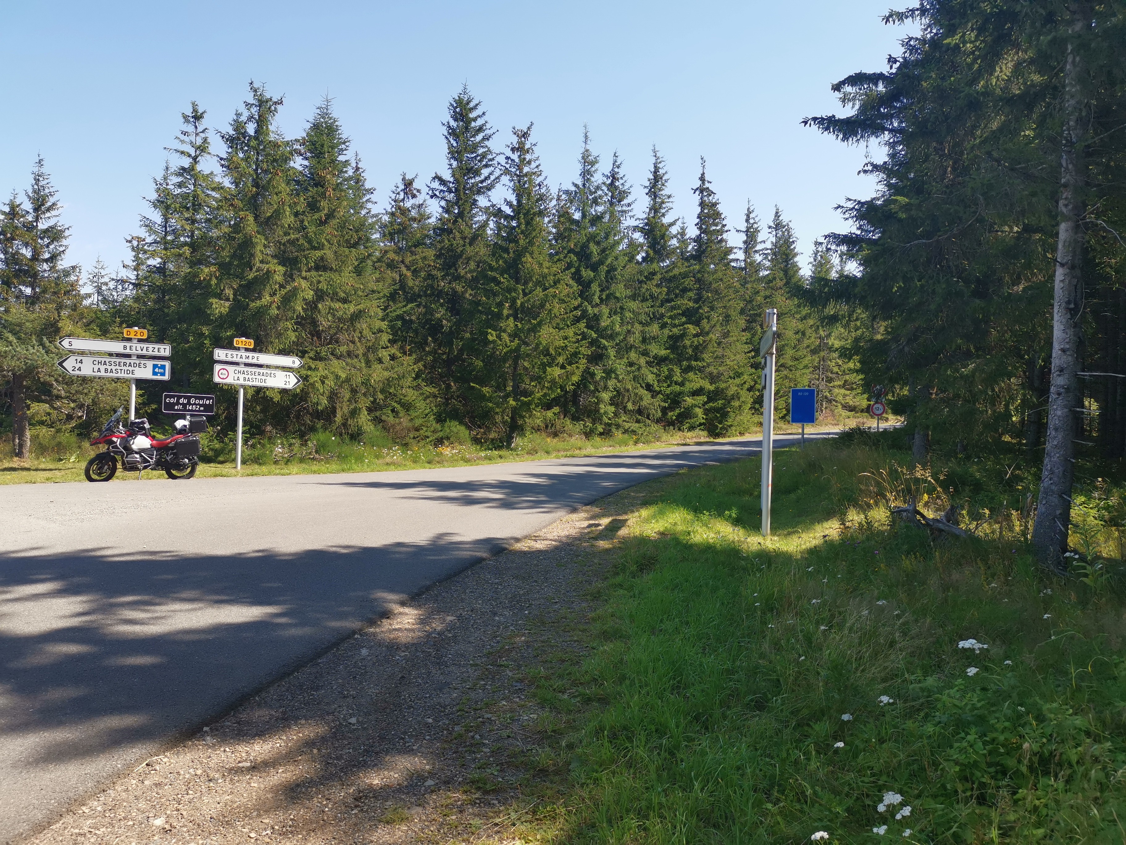 Die Südrampe des Col du Goulet beginnt am nördlichen Rande des Nationalparks Cevennen. Wer noch älteres Kartenmaterial nutzt, sollte sich von der Beschilderung nicht irritieren lassen. Die Gemeinde hieß Le Bleymard, bis sie zum 1. Januar 2017 mit den Gemeinden Bagnols-les-Bains, Belvezet, Chasseradès, Mas-d’Orcières und Saint-Julien-du-Tournel zu einer neuen Kommune namens Mont Lozère et Goulet zusammengeschlossen wurde. Die Straße befindet sich in gutem Zustand mit ordentlichen Belag. Allerdings hat sie nur wenige Kurven zu bieten und verläuft recht unspektakulär durch dichten Tannenwald. Erst an der Passhöhe im Wald wird die Straße deutlich enger und der Belag schlechter. Nach einigen engen Kehren verlässt die Straße den Wald und verläuft aussichtsreich durch Weideflächen und Bergwiesen Richtung Chasserades aus. |