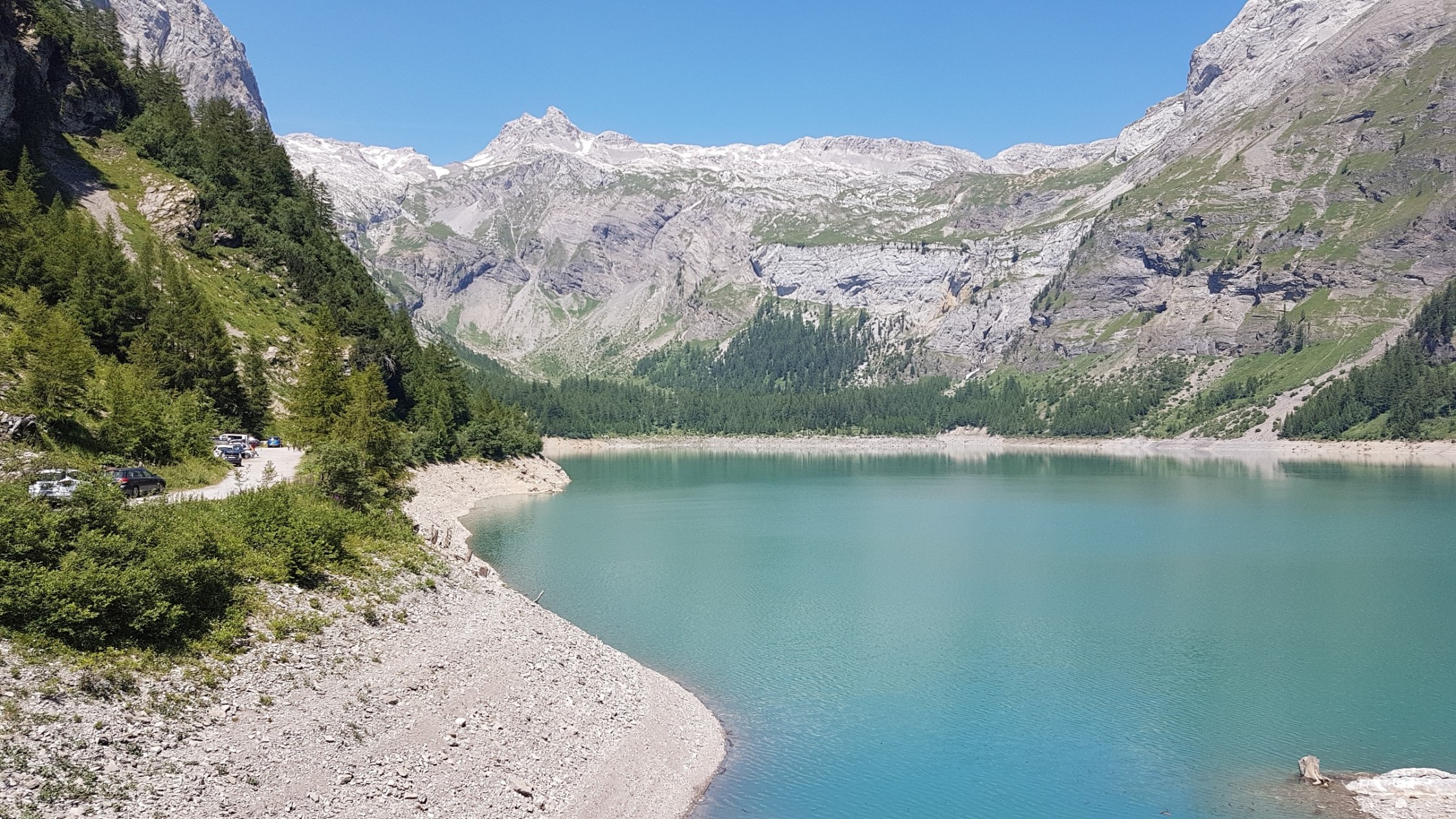 Egal ob von Sion oder Sierre aus angefahren, die Strecke zu diesem Bergsee windet sich herrlich kurvenreich aus dem Rhônetal in die Berge. Im oberen Abschnitt gibt es zwei längere, schmale Tunnel. Hier muss auf eventuellen Gegenverkehr geachtet werden: Der Postbus, der ebenfalls bis an die Staumauer verkehrt, hat stets Vorrang. An der Staumauer gibt es Gastronomie. Wer sich angesichts der landschaftlichen Schönheit nicht die Wanderschuhe anziehen mag, ist selber schuld. Eine Runde um den See dauert ca. 2 Stunden – mit Traumpanoramen über dem türkisfarbenen Gewässer. |