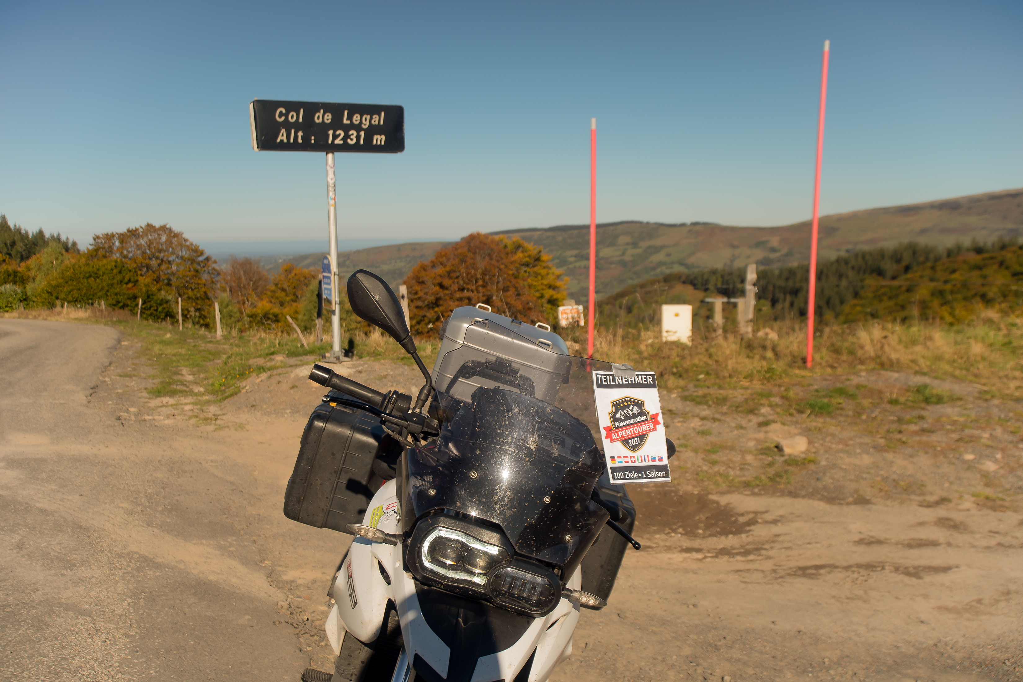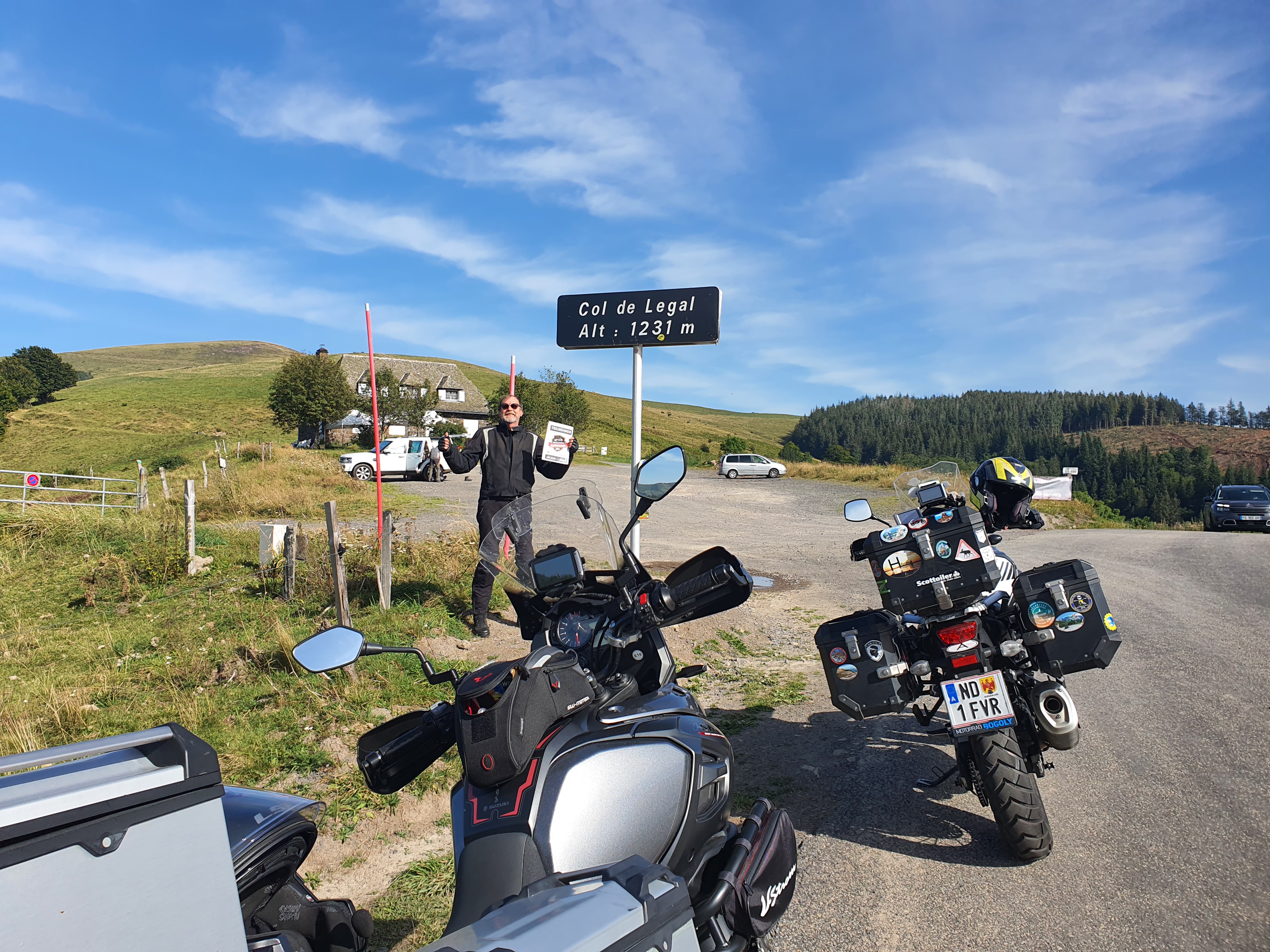 Von Süden geht es von Saint-Cirgues-de-Jordanne aus auf den Col de Légal im Départément Cantal. Er ist Teil der Route des Crêtes und windet sich in schönen Kurven und durch abgelegene Täler bis auf 1231 Meter hinauf. Auf der Passhöhe steht eine einladende, kleine Auberge bereit (www.coldelegal.com). Auch aufgrund ihrer guter Küche, hat sie sich zu einem beliebten Motorradtreff entwickelt. Der Blick reicht von hier aus bis in die ferne Hochebene des Limousin. In La Persuyre angekommen, schwingt man auf der Route de Cretes noch zum westlich gelegenen Col Saint-Georges weiter. |