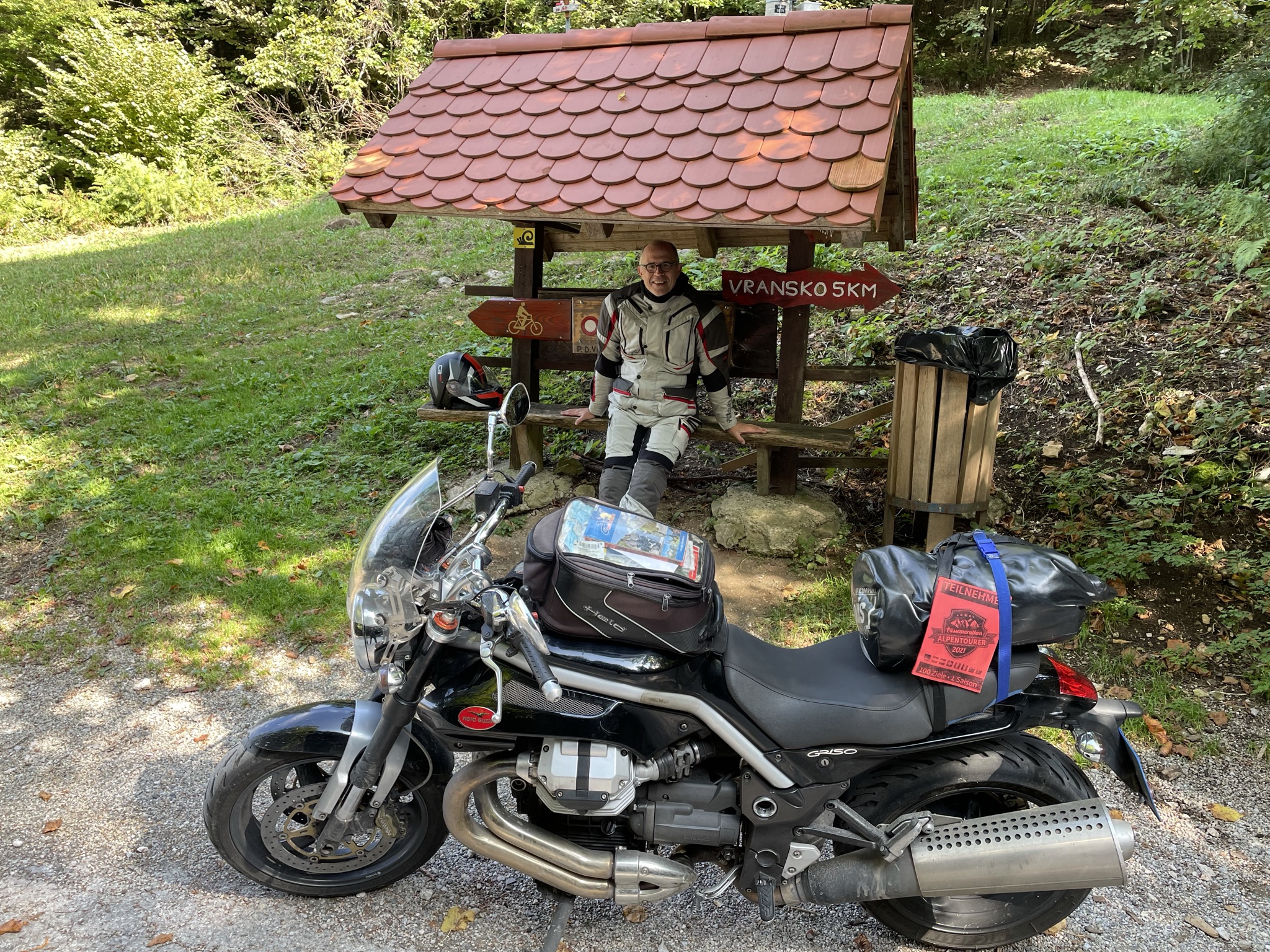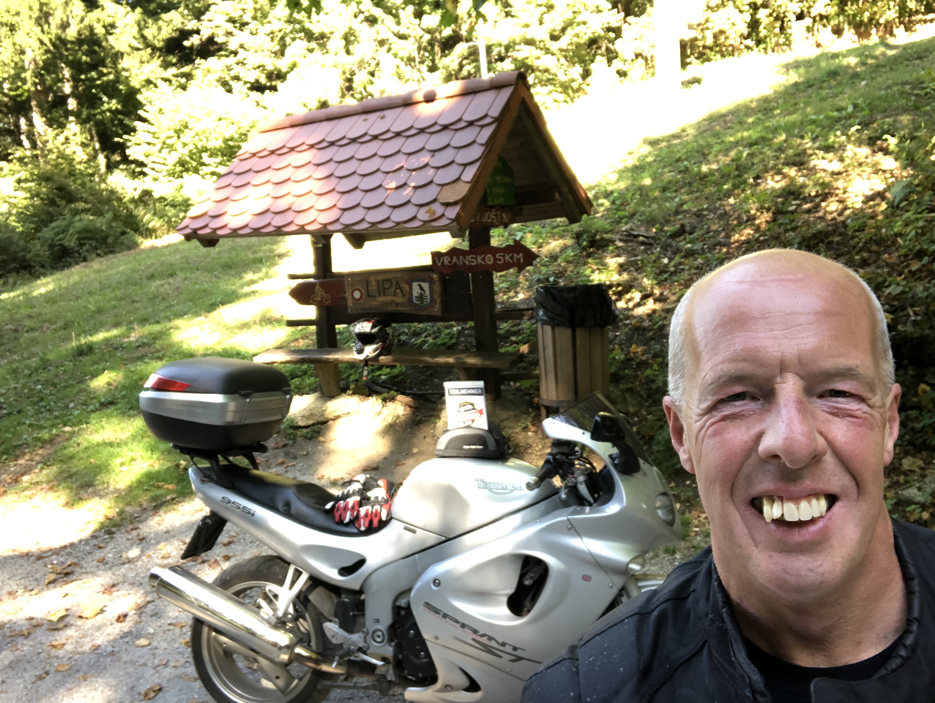 Der Ausflug über den Bergkamm beginnt in Vransko, direkt vor den Toren des privaten Motorrad-Museums. Die schmale Straße führt zum Scheitelpunkt hin weitgehend durch Wald, eröffnet aber vor allem bei der Abfahrt nach Šmartno ob Dreti nette Ausblicke sowie einige interessante Kurven-Kombinationen. Bei dem geringen Verkehr ein Spaß – wie so viele der kleinen, slowenischen Straßen. |