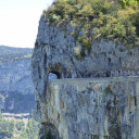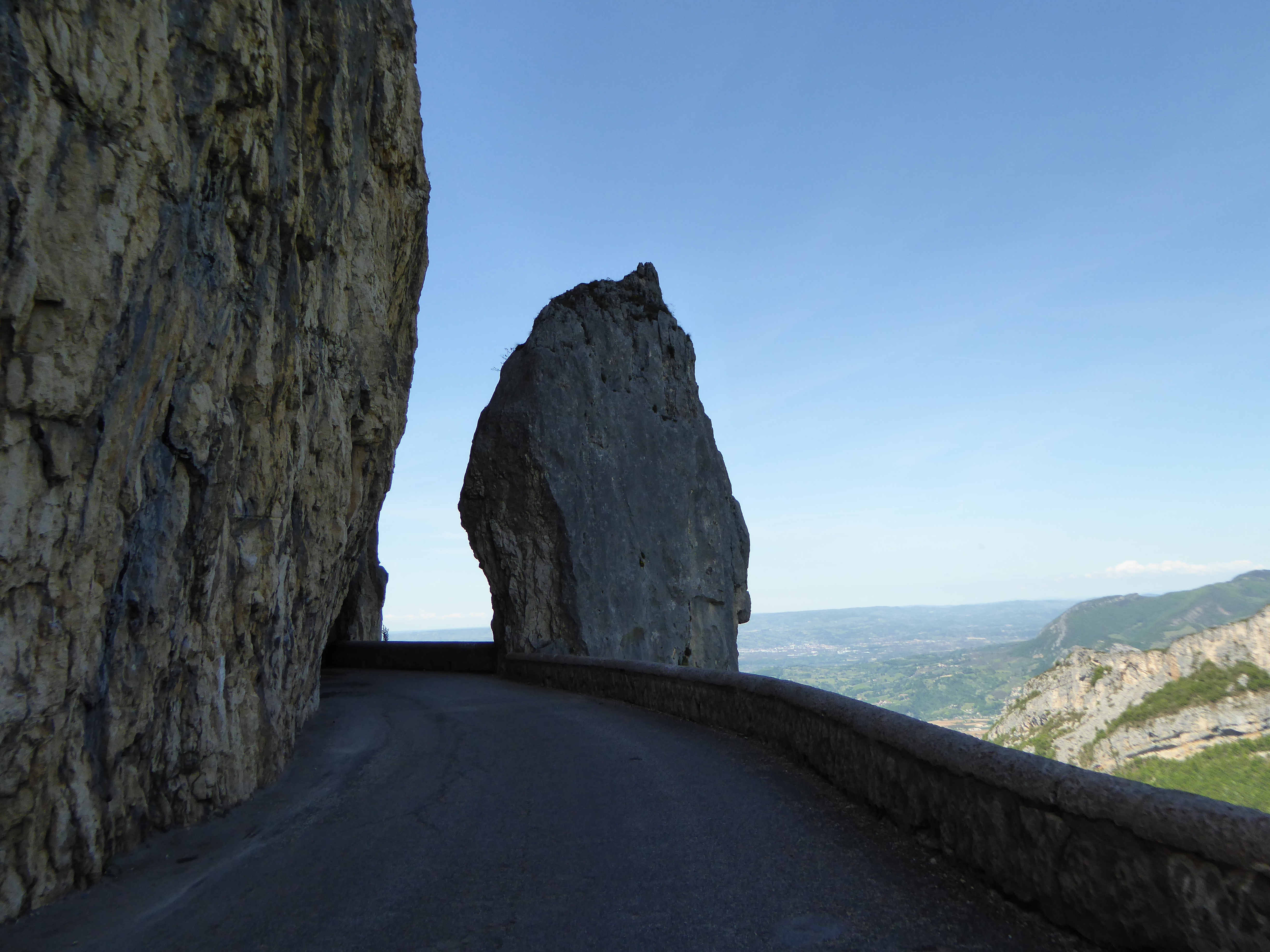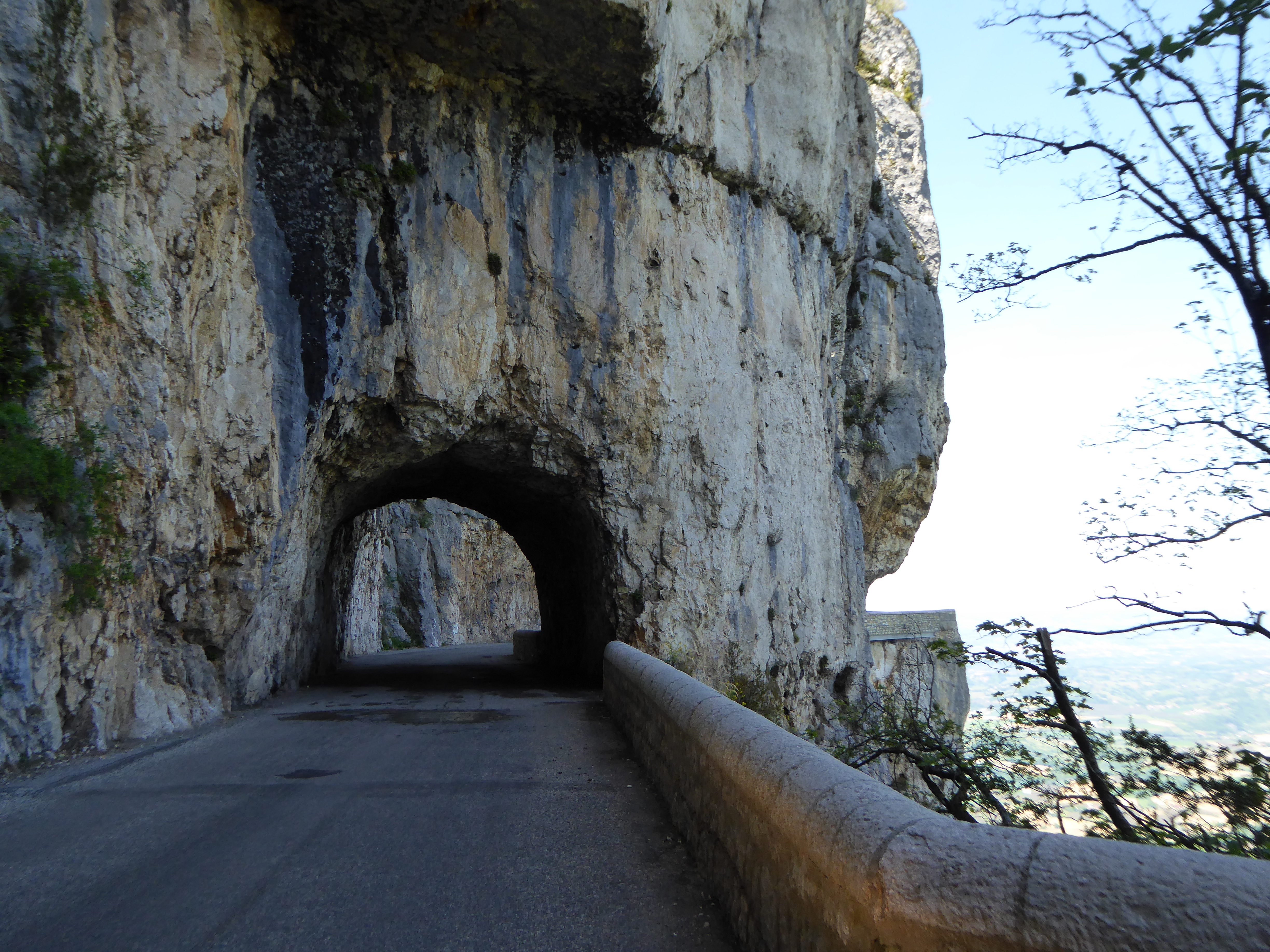 Der Name Col de la Machine lässt schon das Wasser im Mund zusammenlaufen, bildet er doch den Einstieg in eine der schönsten kurvenreichen Panoramastraßen Europas: Combe Laval. Für den höchsten Fahrgenuss und die besten Ausblicke sollte er daher in Süd-Nord-Richtung befahren werden. Bis zu 600 Meter tief hat sich die Laval-Schlucht hier eingegraben. Die Straße wurde dem nackten Fels abgetrotzt. Hier ein Felsbogen, ein schmaler, unbeleuchteter Tunnel, dort immer wieder der Blick – nur für Schwindelfreie – in die Tiefe der Schlucht. Randbefestigungen gibt es zwar, aber die kleinen Mäuerchen sehen nicht wirklich vertrauenserweckend aus. Vorsicht ist nach Regen angebracht, denn dann können mitunter bis zu fußballgroße Felsstücke auf dem Asphalt zu finden sein. |