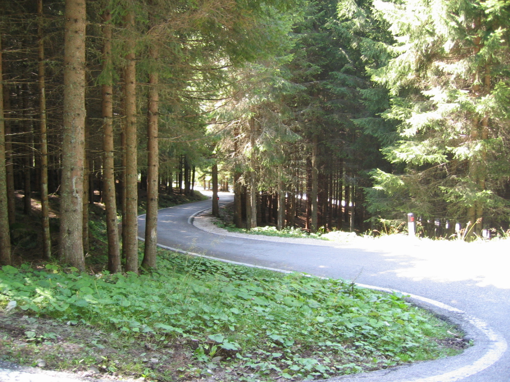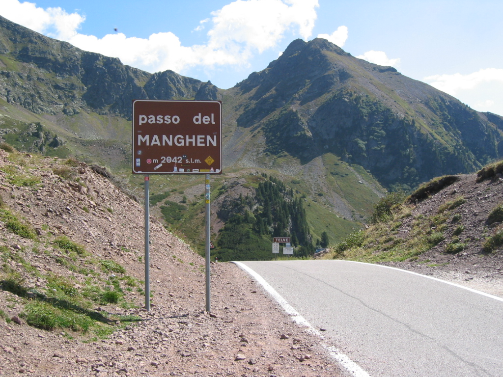 Den direkten Weg vom Val di Fiemme ins malerische Valsugana ermöglicht der 2. 042 Meter hohe Passo del Manghen. Da sich die Landschaft im dichten Wald verbirgt, bleibt die Konzentration aufs Wesentliche: Kurven. Der Manghenpass ist mit seiner engen Straße und seinen anmutig gewundenen Kurven eigentlich ein Muss für jede Dolomitentour. Er ist vom nördlichen Ausgangsort Molina bis zum südlichen Ziel Castelnuovo fast 40 Kilometer lang. Zum Glück wird die direkte Verbindung zwischen dem Val di Fiemme im Norden und dem südlich gelegenen Valsugana nur wenig frequentiert. Was Motorradfahrern mehr als recht ist: Für Lkw und Busse besteht ein Fahrverbot. Besonders empfehlenswert ist der Manghenpass im Juli zur Alpenrosenblüte. Trotz der Ferienzeit bleibt es bei nur mäßigem Verkehrsaufkommen. Die durchgehend asphaltierte schmale Straße hat reichlich Kurven zu bieten, insbesondere in der Scheitelregion ist die Streckenführung sehr interessant. Das Asphaltband führt auf weiten Teilen der Strecke durch dichte Wälder. Zunächst geht es das Val Cadino hinauf. Einige Kilometer nach Beginn der Tour wird die Straße schmaler. Die Frequenz der Kehren nimmt zu, 13 sind es an der Zahl auf der Nordrampe. Dann geht der Wald zurück, öffnet sich zur Scheitelhöhe hin. Die Steigungsraten erreichen 16 Prozent. Nach spannender Kurbelei ist bei 2.042 Meter die schmale Passhöhe erreicht. Unmittelbar unterhalb der Passhöhe liegt der Lago Cadinello idyllisch in die Landschaft eingebettet, daneben gibt es eine bewirtschaftete Hütte mit Möglichkeit zu einer stärkenden Rast. Die Aussicht zu beiden Seiten des Passes ist phantastisch. Die Südrampe ähnelt fahrerisch der Nordrampe, verfügt zwar nur über zehn, dafür aber meist sehr enge Kehren. Das Val di Calamento ist landschaftlich sanfter. Trotz der vielen Kehren, der steilen Hänge und der damit verbundenen fahrerischen Anspannung ist die Fahrt durch die fast parkähnliche Landschaft ein echter Hochgenuss. |