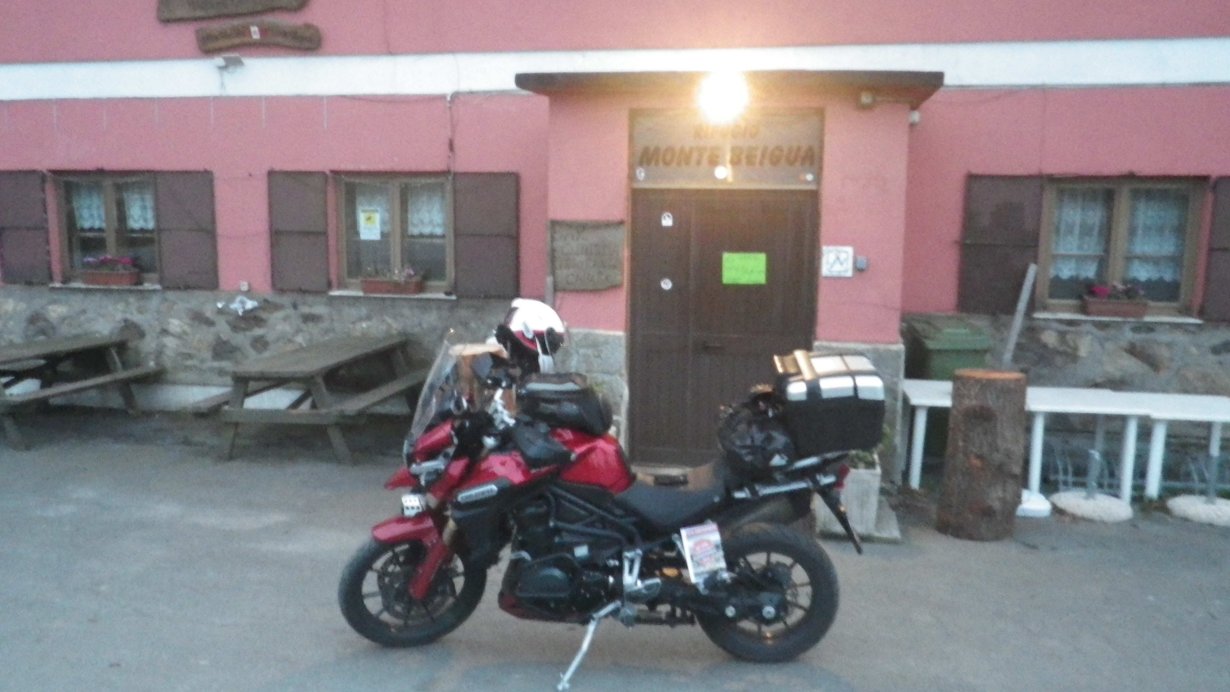 Beim Monte Beigua handelt es sich um einen Berg in Ligurien. Er befindet sich im Parco Monte Beigua, dem größten Park dieser italienischen Region, der seit 2005 als UNESCO-Geopark anerkannt ist. Der Gipfel des Beigua ist mit 1.287 Metern der höchste der sogenannten Beigua–Berggruppe, zu der auch der nahe gelegene Monte Grosso (1.265 Meter), der Monte Ermetta (1.267 Meter) sowie der Bric Veciri (1.263 Meter) gehören. Zu empfehlen ist der fahrerische Aufstieg von Varezze aus, denn der Ort befindet sich an der Küste – man startet also auf Meereshöhe. Schon die ersten Kilometer gen Nordwesten erweisen sich als äußerst reizvoll. Richtig Spaß kommt dann ab Alpicella auf. Das kleine Sträßchen windet sich in schöner Kurvenabfolge den Hang empor und führt einen durch einige kleine Ansiedelungen. Leider ist der Belag mitunter etwas löchrig. Schon bald wird die Straße aber breiter und der Belag sehr viel besser, so dass ein flotteres Fahren entlang der dichten Wälder möglich ist. Kaum ist die 1.000-Meter-Marke überwunden, ändert sich die Vegetation und man passiert hübsch anzuschauende Nadelwälder. Kurz vor dem Gipfel wird die Straße wieder enger und sehr holprig. Vorsicht ist hier außerdem geboten, da sich mitunter sehr viel Wild an oder sogar auf der Straße tummelt. Oben angekommen, wird die Szenerie leider durch viele Sendemasten ein wenig verunstaltet. Eine kleine Pause am Picknickplatz sollte trotzdem eingelegt werden, um das darunter liegende Küstenpanorama zu bewundern, bevor es auf die Nordrampe geht. Diese ist zwar sehr kurvig, aber auch eng und nur mit schlechtem Belag versehen. |