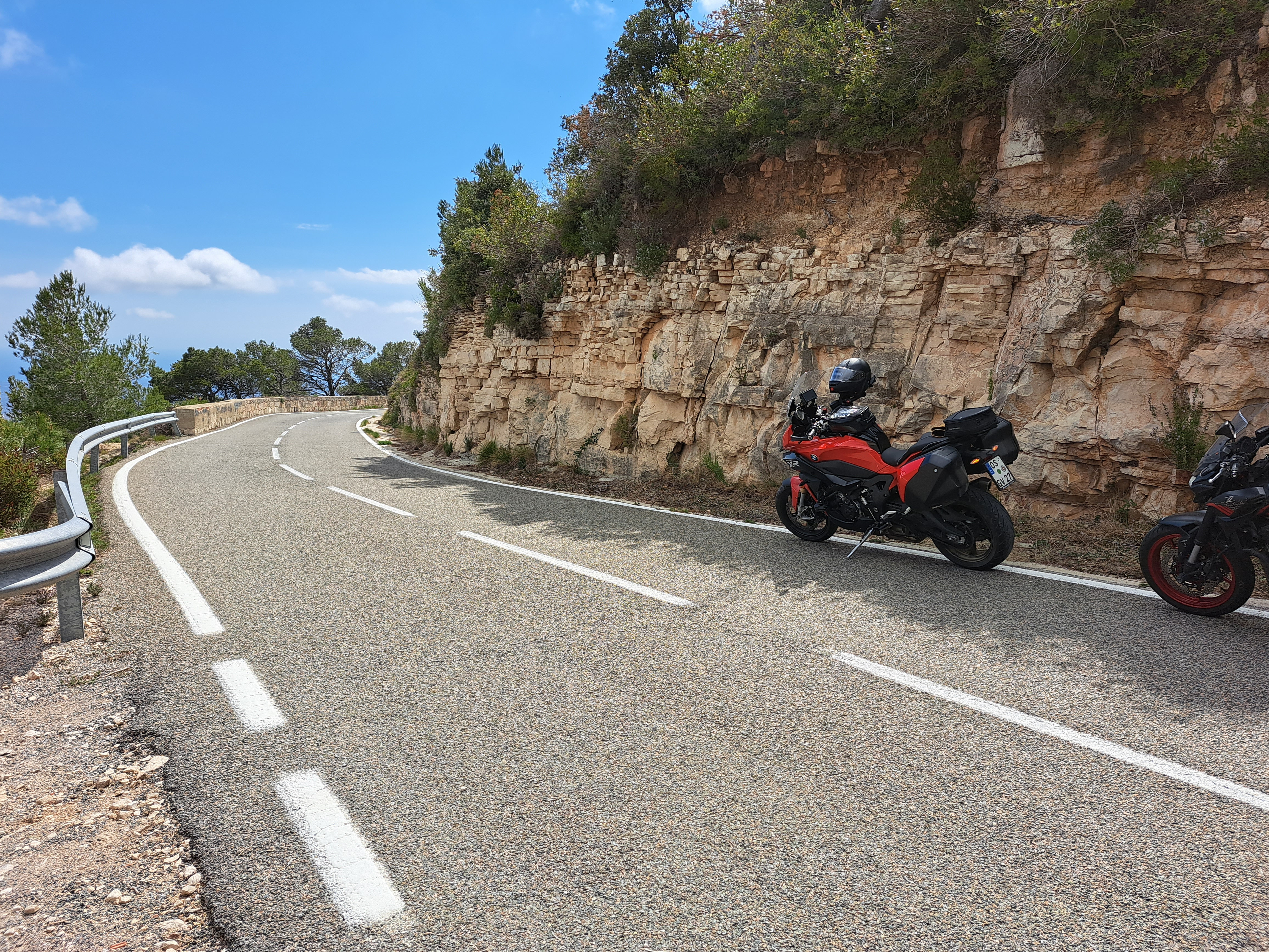 Man möchte nach der Auffahrt von Vilaplana vor den Straßenbauern niederknien vor Begeisterung. Die T-704 zählt sicher zu den schönsten Straßen des Priorat und ist auf diesem Abschnitt mit herrlichen Serpentinen gesegnet. Der Zielpunkt bietet eine winzige Parkbucht, an der ein Motorrad sicher abgestellt werden kann. Einfach mal die Aussicht genießen … Der höchste Punkt dieser Strecke ist übrigens erst am Ende mit dem Abzweig zur TV-7045 erreicht und liegt auf rund 955 Metern. Hier schließen sich in beide Richtungen weitere Streckenhighlights an, die man unbedingt mitnehmen sollte, wenn man schon mal vor Ort ist. |