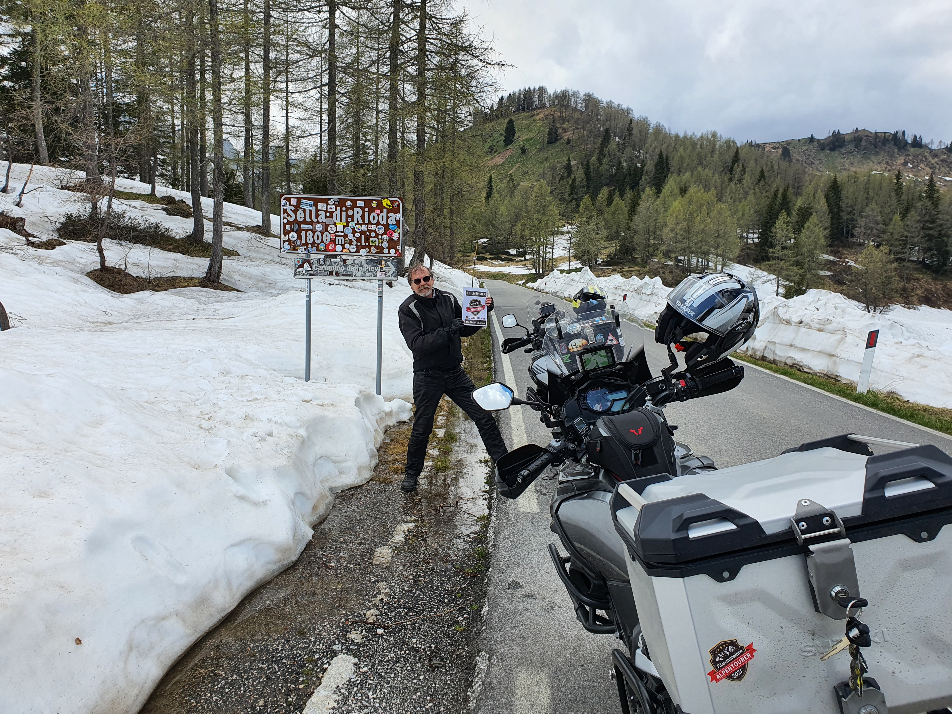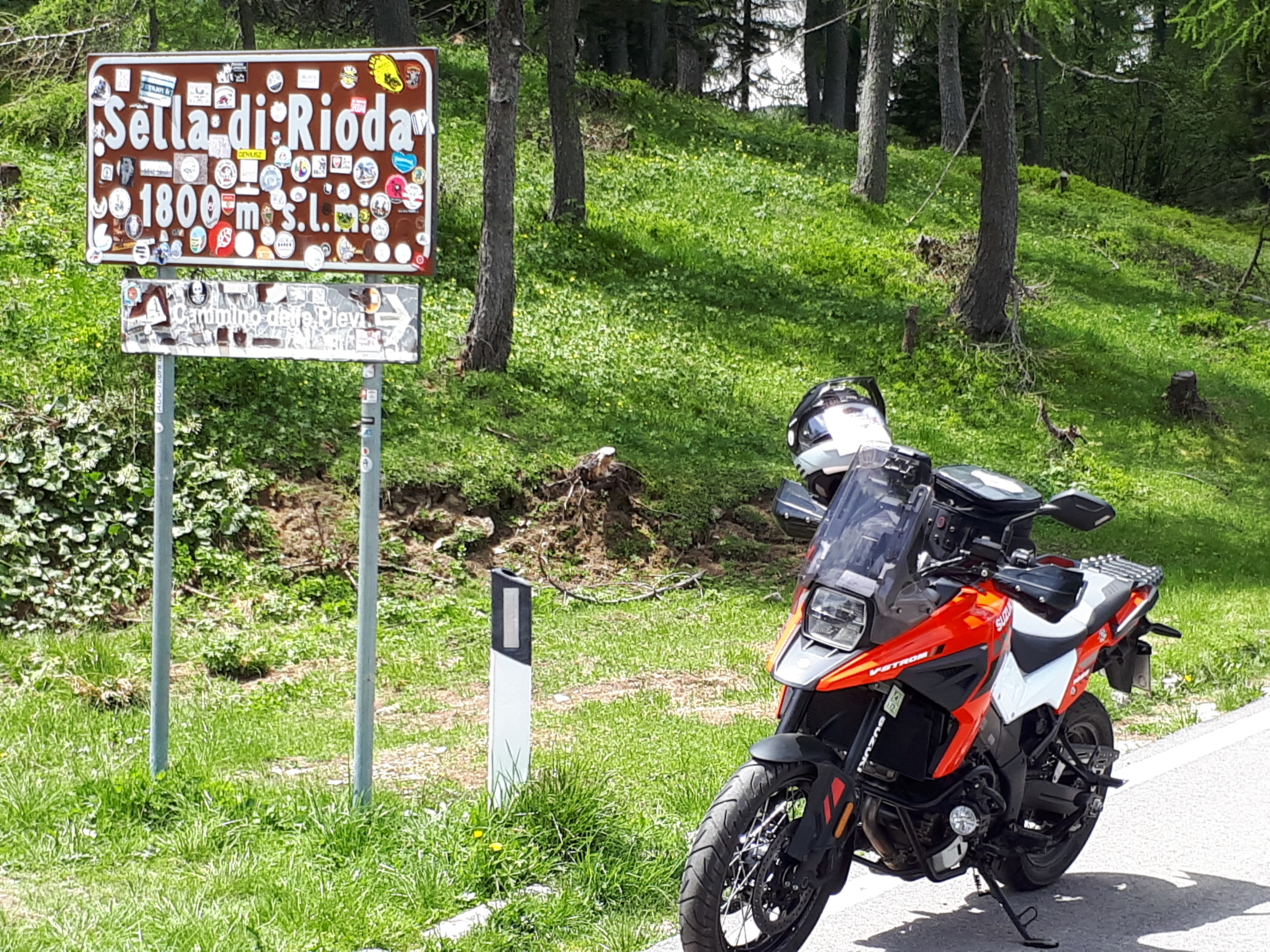 Erstaunlicherweise ist der Sella di Rioda zwischen dem Veneto und Friaul-Julisch Venetien nur sehr wenig befahren, dabei kann die Passstraße besonders Motorradreisenden durchaus einige Herausforderungen zu bieten. Idealerweise startet man die gut 14 Kilometer lange Fahrt im Örtchen Sauris. Schon bald zieht sich die Straße über den Ort Sauris in luftige Höhen hinauf – und der eigentliche Spaß kann beginnen: Auf dem folgenden Abschnitt sind Steigungen von bis zu 13 Prozent und acht Kehren zu meistern. Erst danach kann man das Siegerfoto auf der 1.800 Meter hohen Passhöhe anfertigen (wobei der ursprünglich Pass einige Meter neben der Straße liegt). Wer mag kann am Abzweig auf die SP619 noch ein Stück weiterfahren, um übergangslos den Sella di Razzo anzuschließen. |