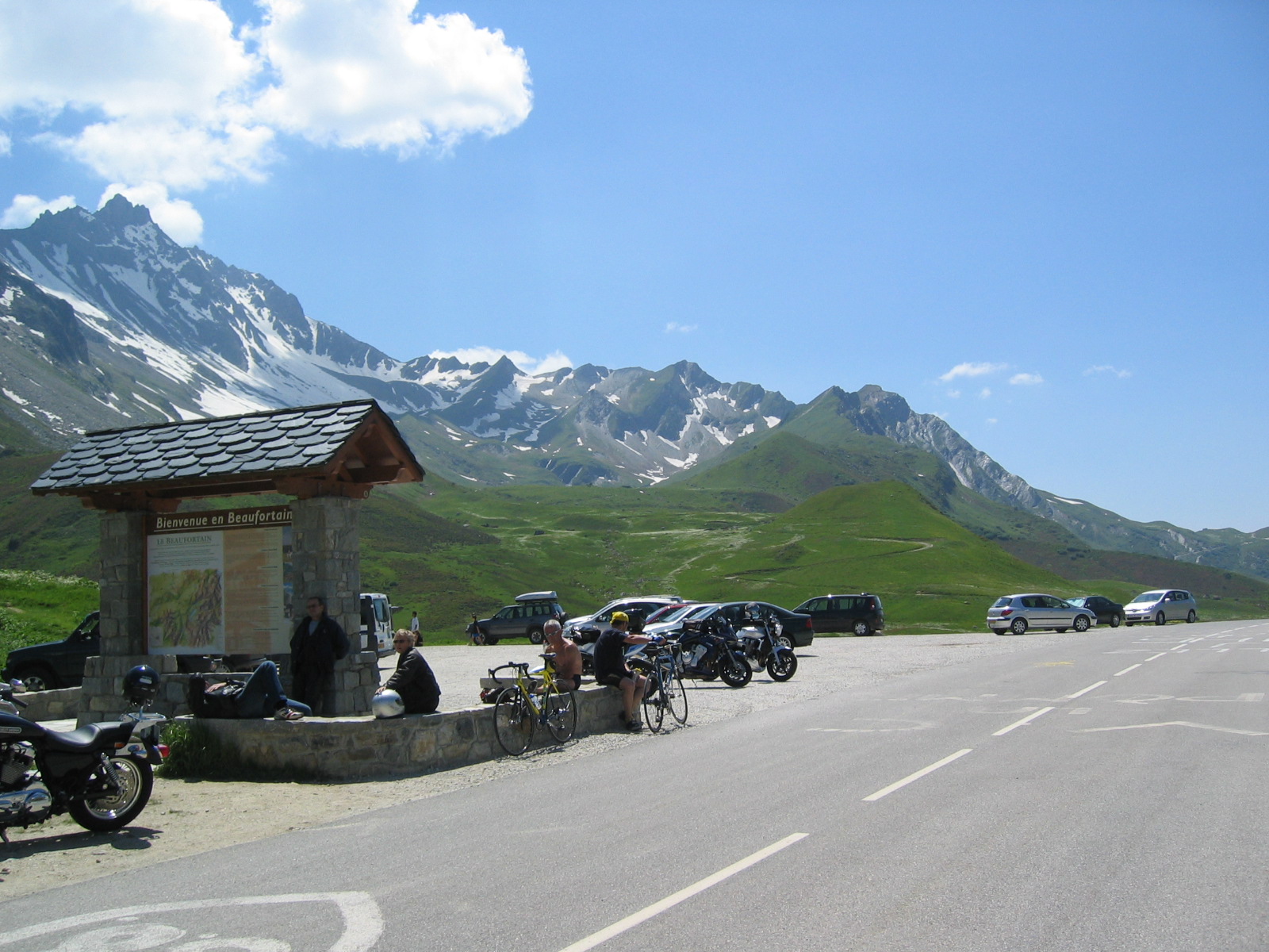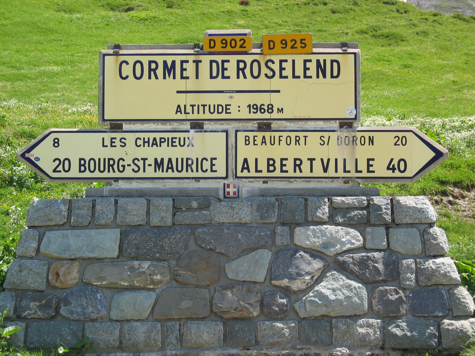 Nicht wenige meinen, dass der Cormet de Roselend einer der schönsten Alpenpässe ist, die Frankreich aufzuweisen hat. Die Wintersperre auf dem 1.968 Meter hohen Pass gilt zumeist nur von Dezember bis April, also relativ kurz für die sonstigen Verhältnisse in den französischen Hochalpen. Zu verdanken haben wir die meisterliche Streckenführung einer ehemaligen Großbaustelle: Der so wunderbar türkis schimmernde Lac de Roselend ist ein erst in den 1950er Jahren errichteter Stausee. Die jetzige Straße an ihm vorbei und über den Pass wurde zunächst als Zufahrt zur Baustelle angelegt. Zwar bestand von Osten eher eine Auffahrt auf die Passhöhe, die war aber bis 1960 nicht mit dem Beaufortain verbunden. |