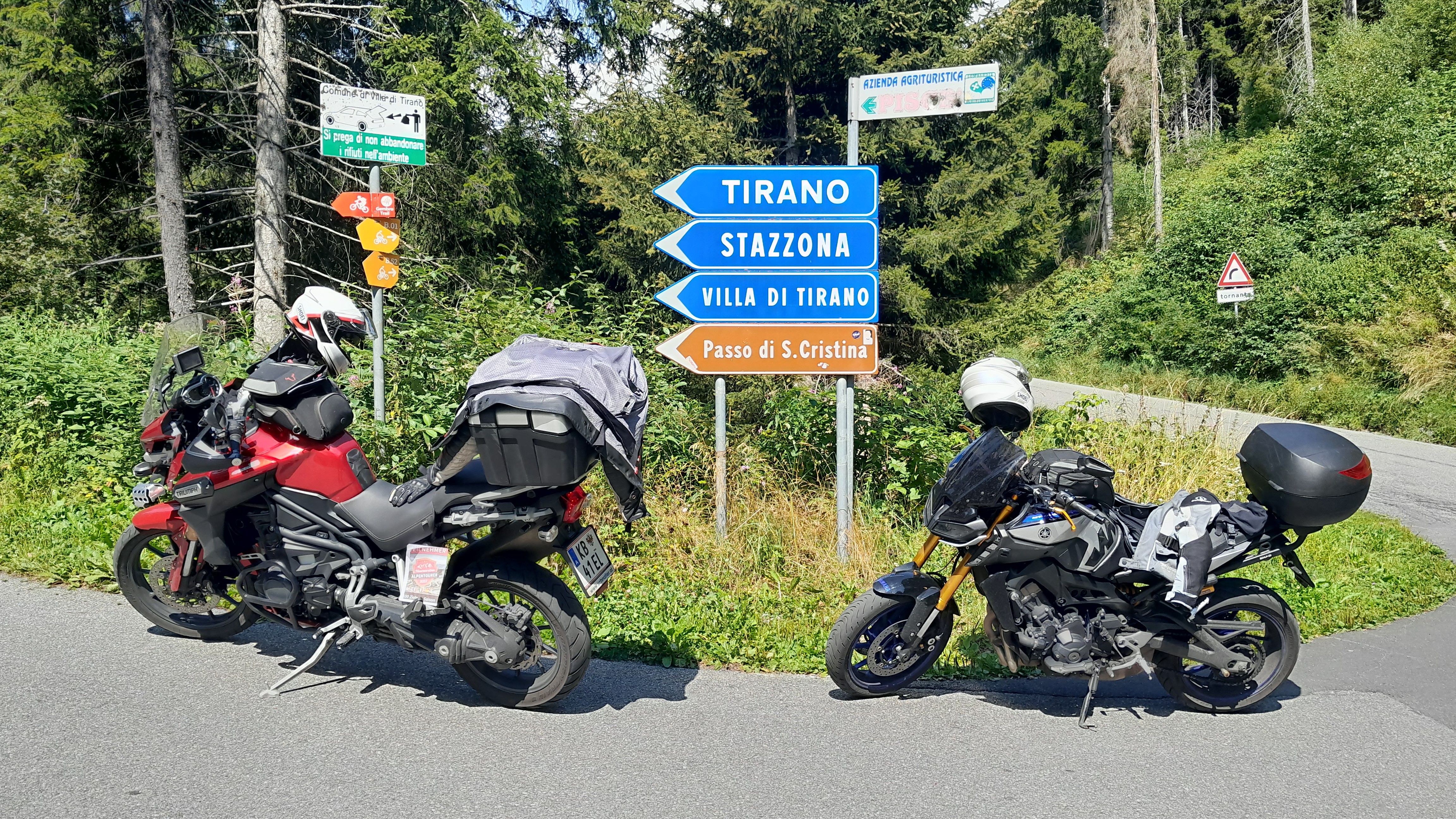 Die schönste Verbindung von Tirano nach San Pietro in Aprica führt durch reichlich bewaldetes Gebiet und streift dabei den Passo di San Cristina. Der liegt karg beschildert ein paar Meter hinter einem kurzen Abzweig, markiert mit seinen 1.427 Metern aber eine lohnenswerte Höhenlage. Besonders beschwingt geht es in den Kurven und Kehren der nördlichen Anfahrt zu, die sich damit schnell aus dem Addatal in die Höhe schraubt. Die schmale Route ist gerne auch mal verschmutzt, besonders nach Regenfällen. Einige verwirrende Abzweige machen die Orientierung auch nicht gerade leicht. Am besten, man legt sich zuvor einen Track an, dem man dann folgt. |