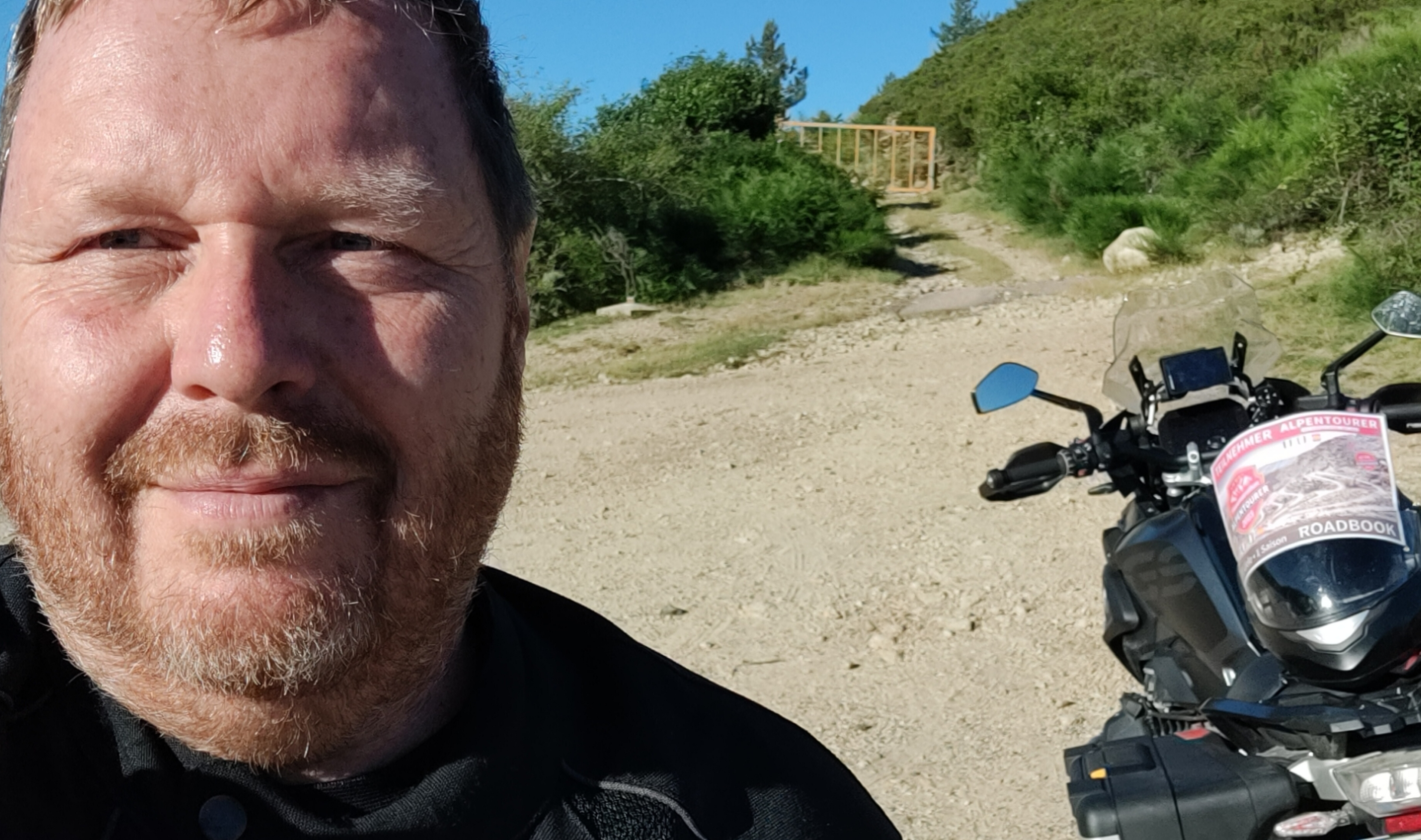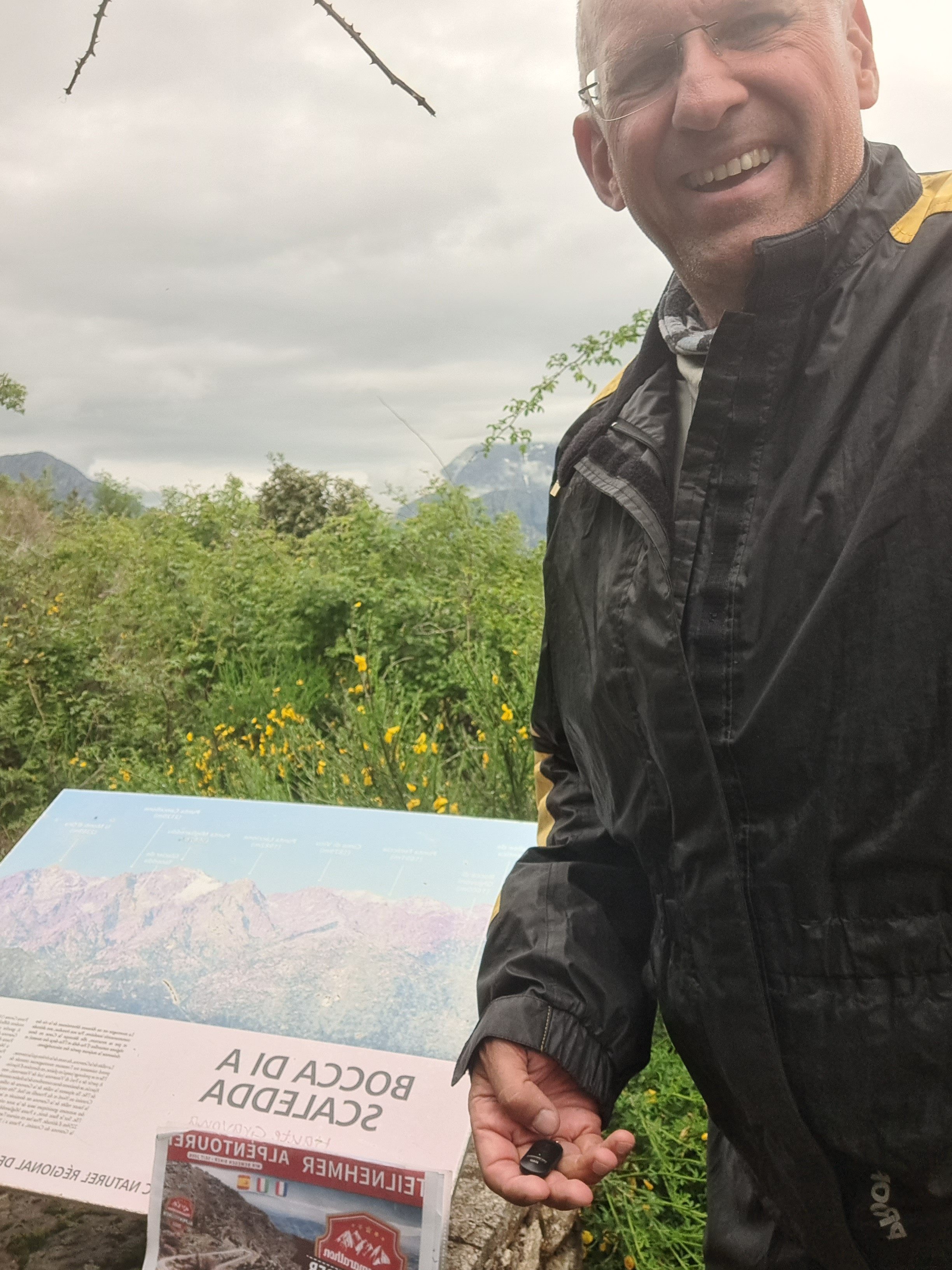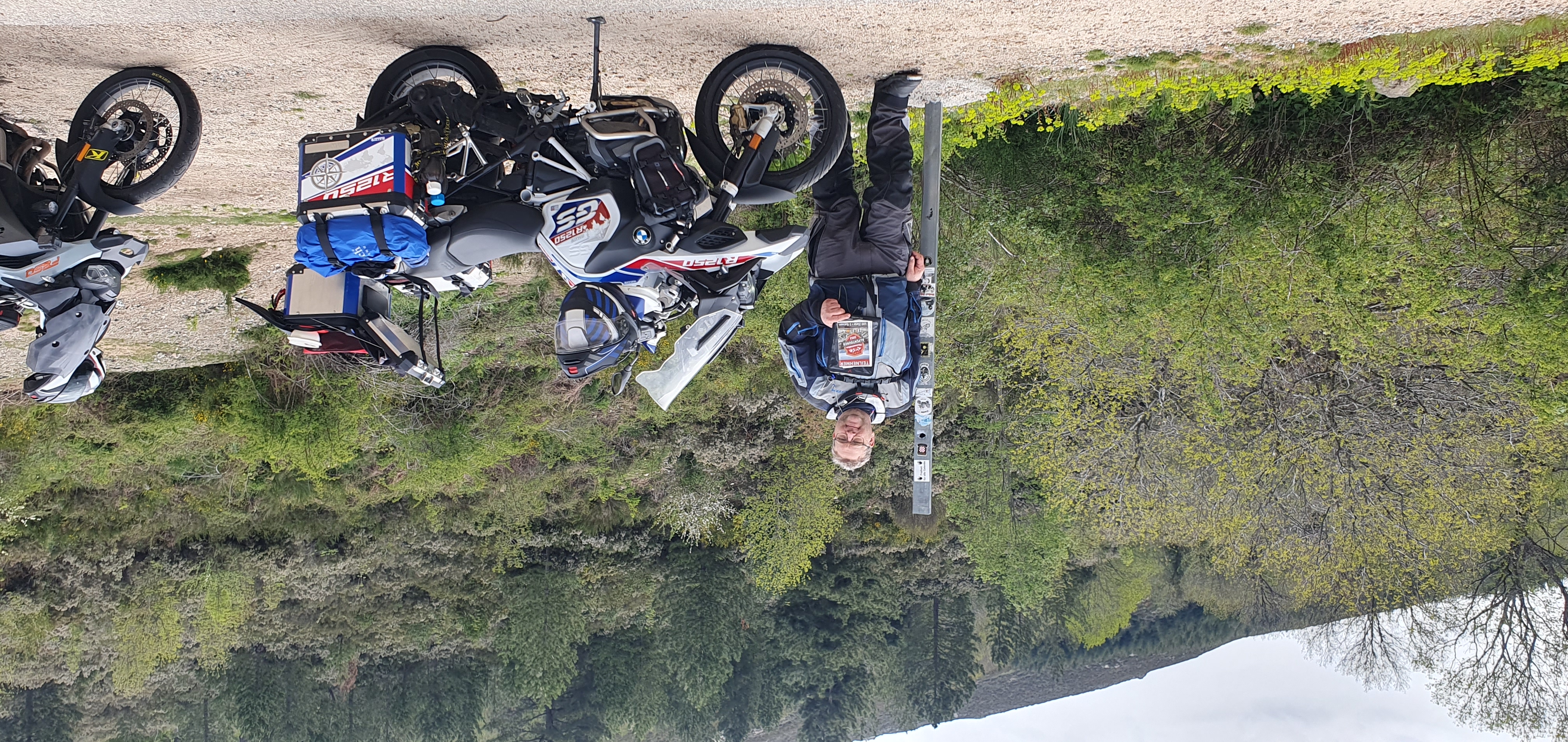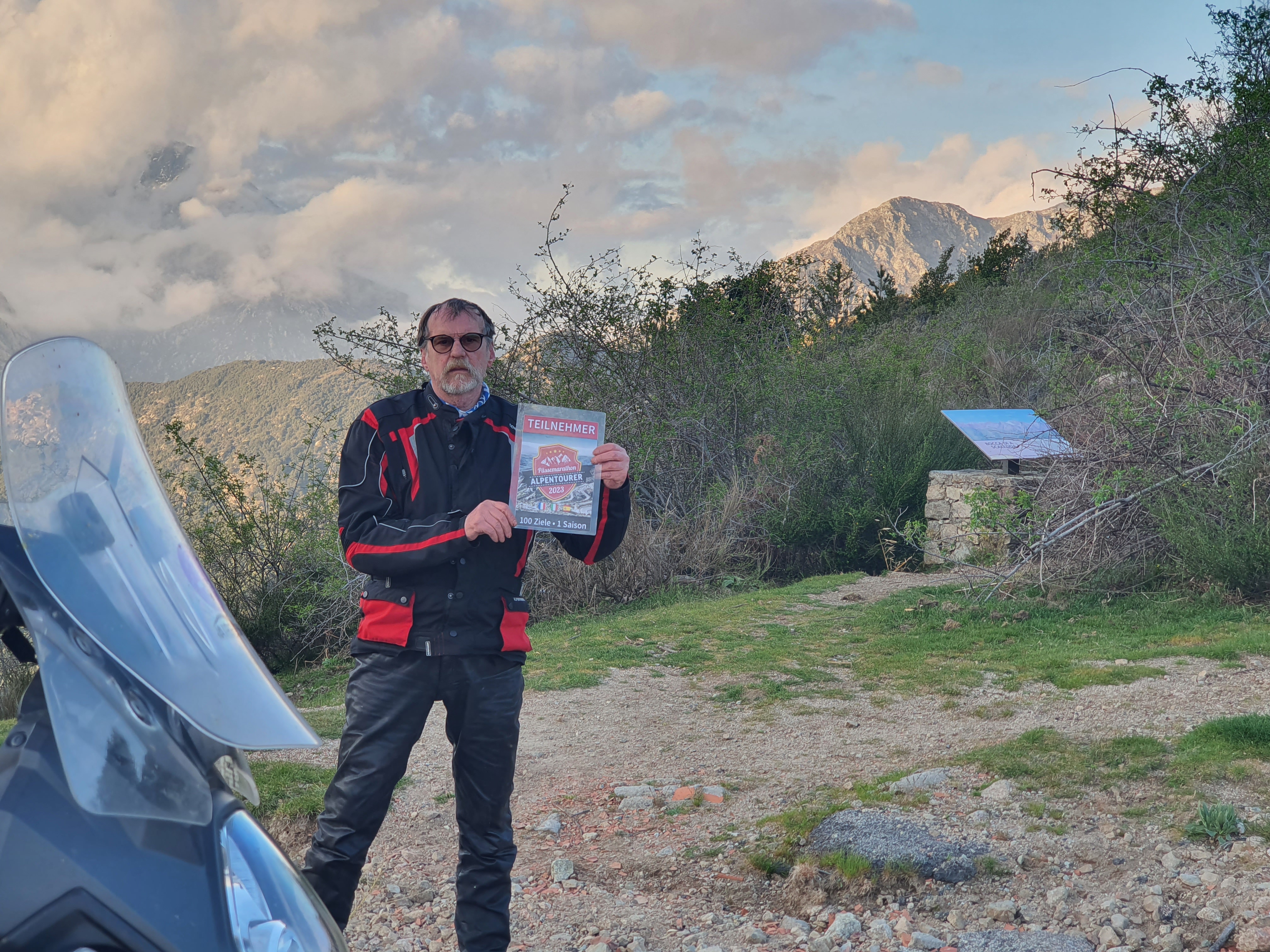 Nachtrag: Das Schild mit der Beschreibung der Berggipfel (haben einige genommen) ist aktuell nicht mit dem Motorrad erreichbar, das Unwetter hat eine breite, tiefe Rinne ausgeschwemmt, der gesamte Bereich war heute aufgeweicht...