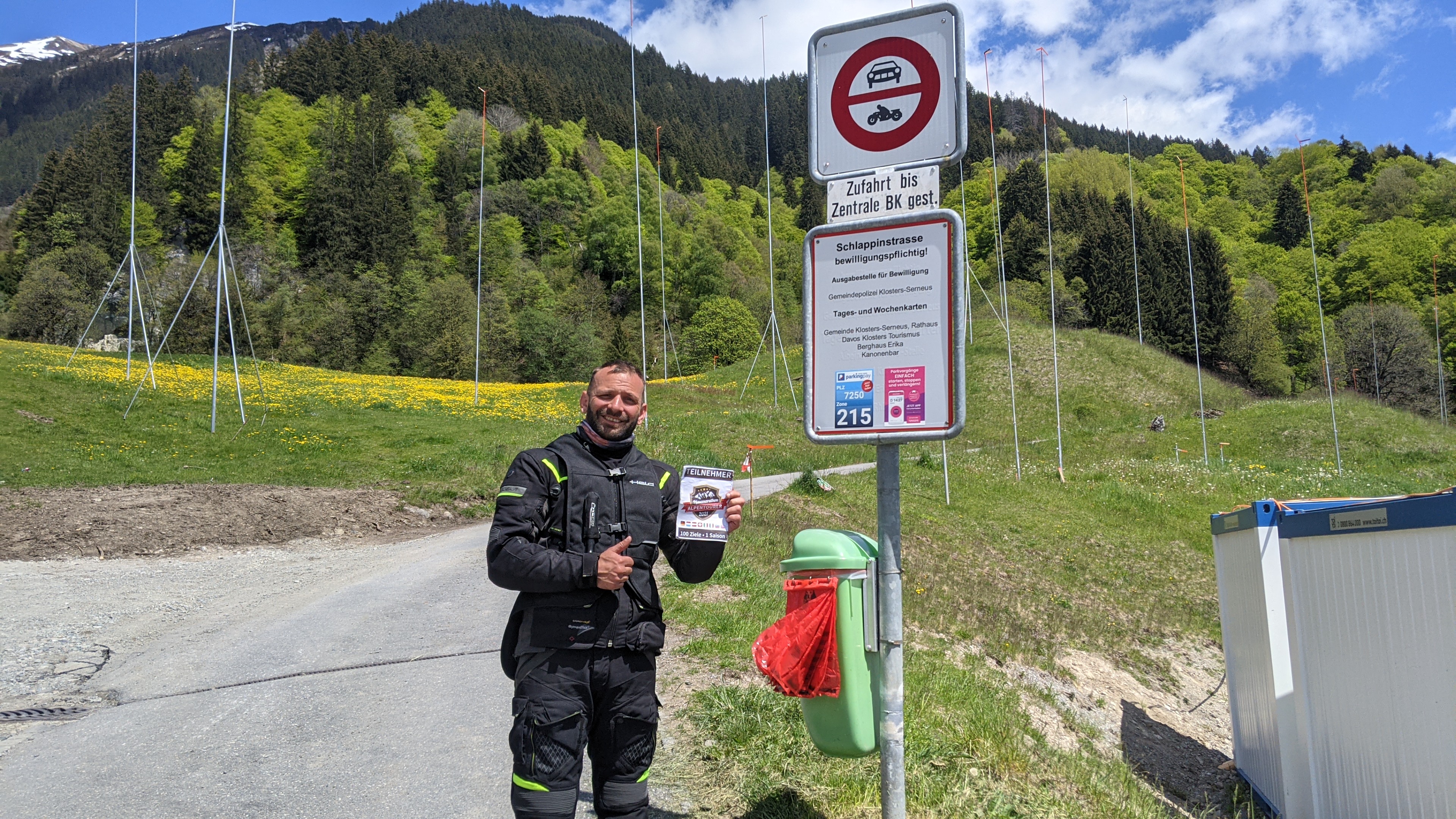 Nachtrag: Vom zweiten Fahrverbot sollte man sich nicht abhalten lassen. Dies scheint eine Art Haftungsausschluss (wie in Italien) zu sein. Oben beim Berggasthof Erika sollte man das Mautticket (CHF 10,-- bzw. auch Eur 10,--) kaufen, dieses gilt für die Auf- und Abfahrt. Die beim Gasthof weiterführende Schotterstraße ist gesperrt und darf nicht befahren werden (außer von Einheimischen, die spezielle Bewilligungen haben). Ich habe mich im Gasthof diesbezüglich erkundigt, weil wir diese Straße gerne gefahren wären.