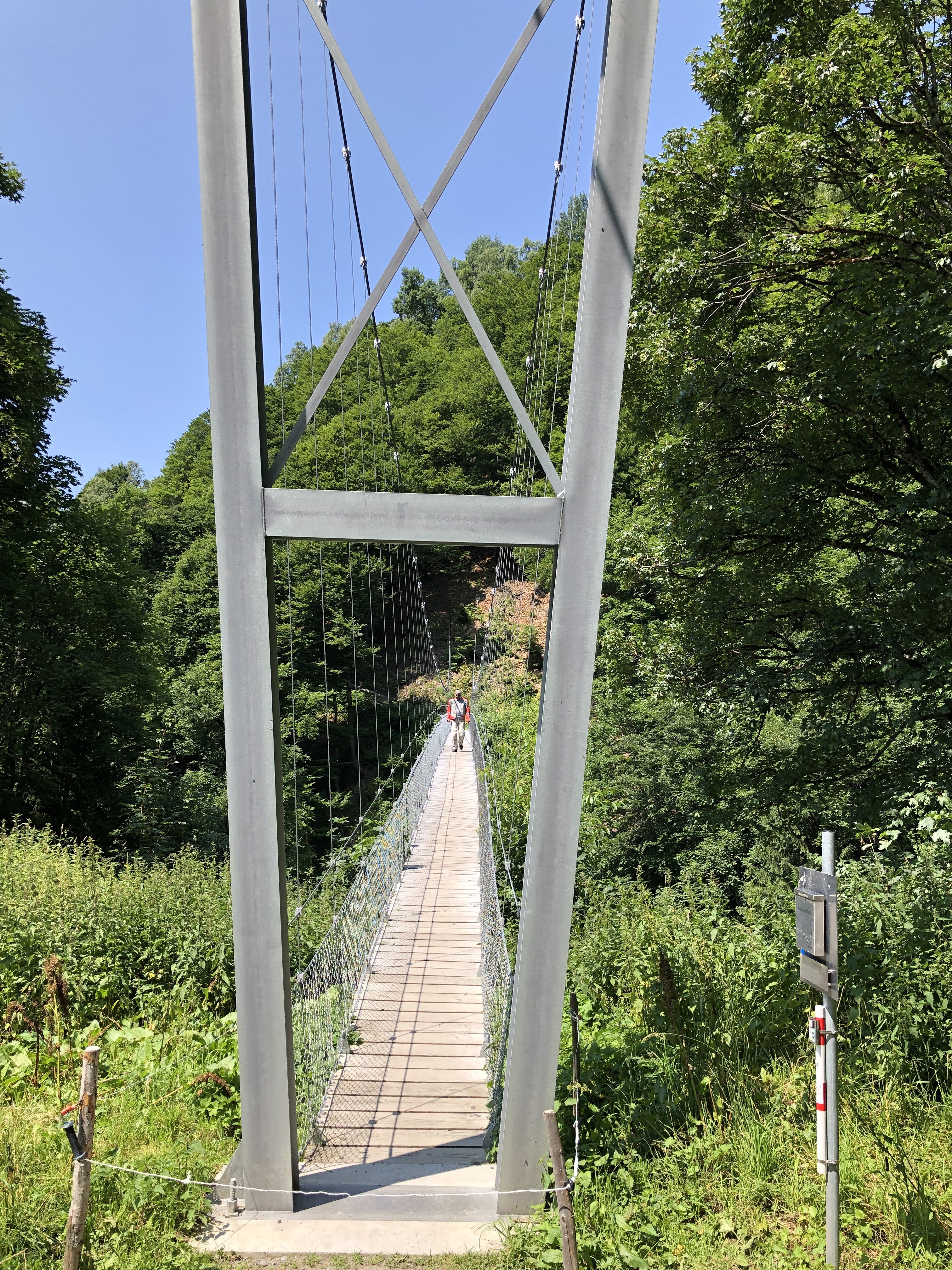 Cool ist das Überqueren (zu Fuss) der Hängebrücke, die man bei der Abfahrt besser sieht, als beim Rauffahren. Hab ein Bild hochgeladen.