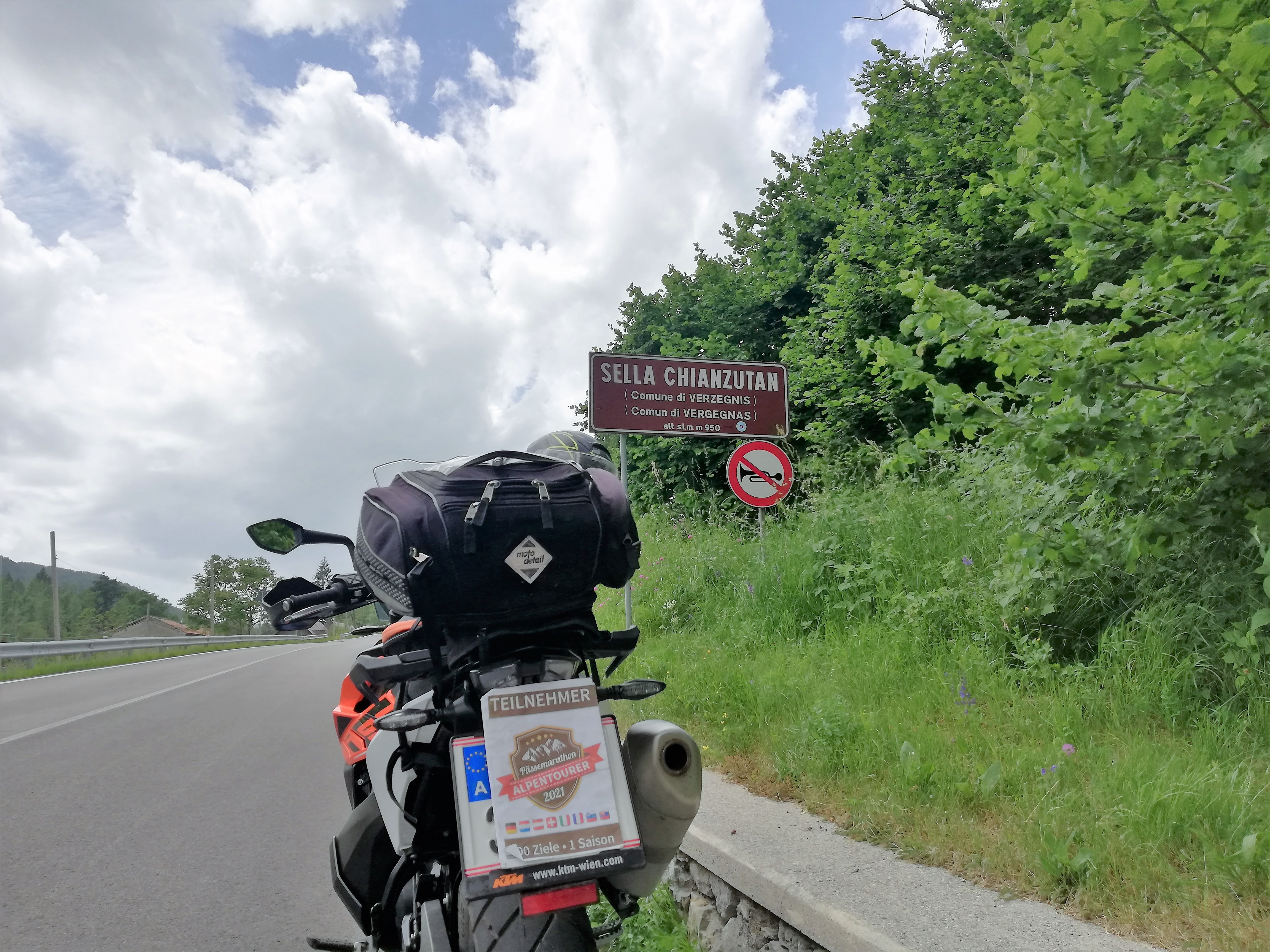 Tolmezzo ist der Hauptort der Karnischen Alpen und kann mit einer Einwohnerzahl von etwas über 10.000 fast schon als eine Großstadt in dieser Region bezeichnet werden. Vor allem ist er ein prima Ausgangsort für die Befahrung des Sella Chianzutan. Kurz nachdem man den Fluss Tagliamento überquert hat, geht es auch schon auf die Ostrampe dieser Passstraße, die als SP1 ausgewiesen ist. In schönem Kurvenschwung geht es nach Verzegnis, wo Kunstliebhaber einen kurzen Abstecher in Richtung Norden einplanen sollten, um sich Villa di Verzegnis näher anzuschauen. Es handelt sich um ein Freilichtmuseum, in dem zeitgenössische Skulpturen – unter anderem von Bruce Nauman, Richard Nonas, Dan Graham und Richard Long – in die Landschaft integriert wurden. Der Eintritt ist kostenlos und lohnt sich! Zurück auf der Passstraße passiert man noch den Lago die Verzegnis bevor man in westlicher Richtung dem recht unspektakulären Scheitel auf 950 Meter Höhe entgegen fährt. Ab dort wird es dann auch fahrerisch interessant: Die Südrampe kann mit einigen schönen Kehren auf gutem Asphalt begeistern, bevor sie beim Weiler Pozzis ausläuft. |