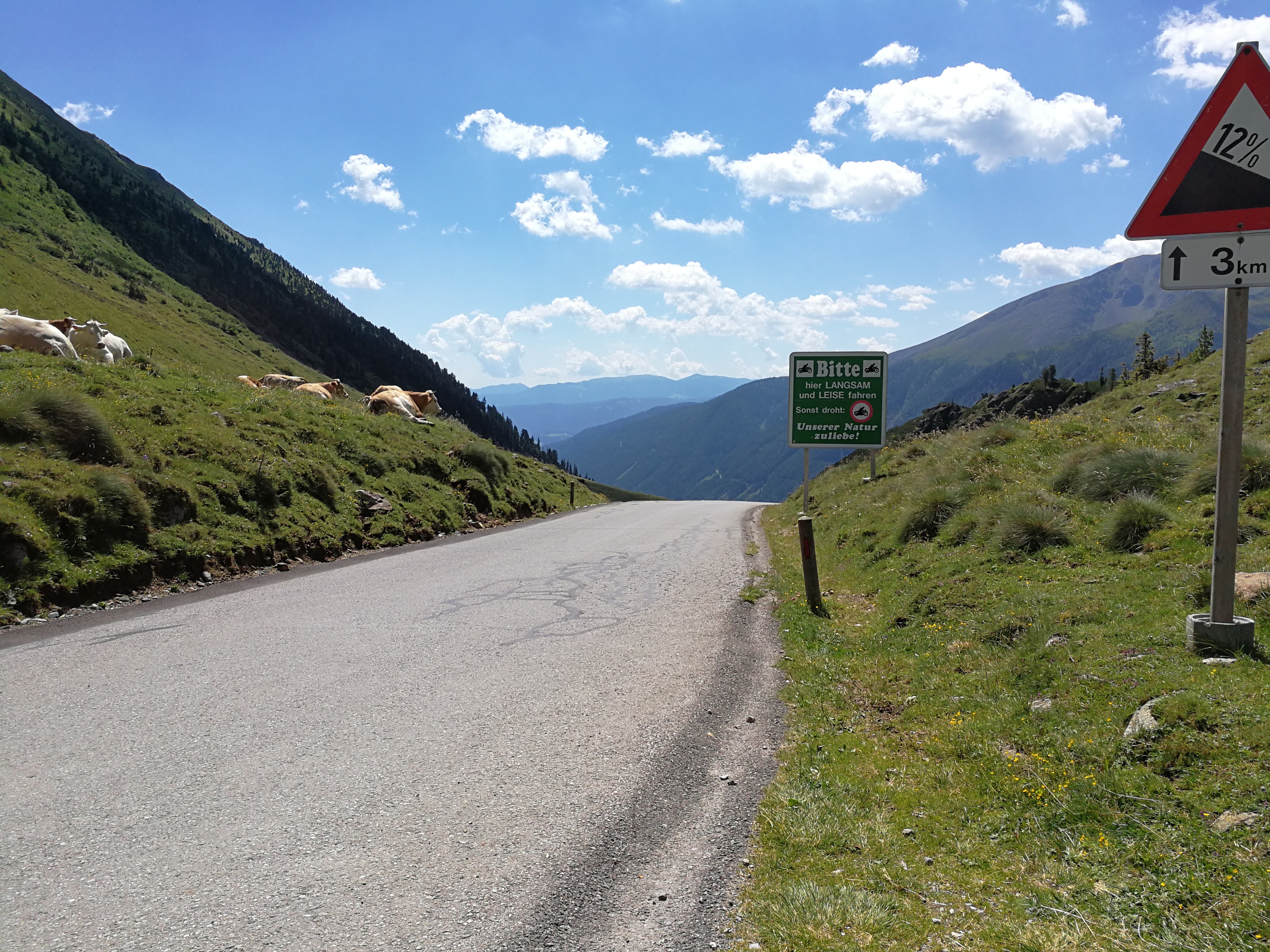 Der Sölkpass darf in der Steiermark duchaus als außergewöhnlich gelten. Keine andere Strecke dieses Bundeslandes weist ein derart raues Antlitz auf und fühlt sich so sehr nach Hochgebirge an. Die Zufahrt durch den Naturpark Sölktal steht im krassen Gegensatz dazu: Eine scheinbar unberührte Almlandschaft dehnt sich hier zwischen den Gipfeln der Niederen Tauern aus. Im Sommer ist der Asphalt häufig von starken Frostschäden gekennzeichnet. Im Winter besteht zwar keine offizielle Sperre, der Pass bleibt aber dennoch vom ersten Schnee bis zum vollständigen Abtauen gesperrt, da hier nicht geräumt wird. |