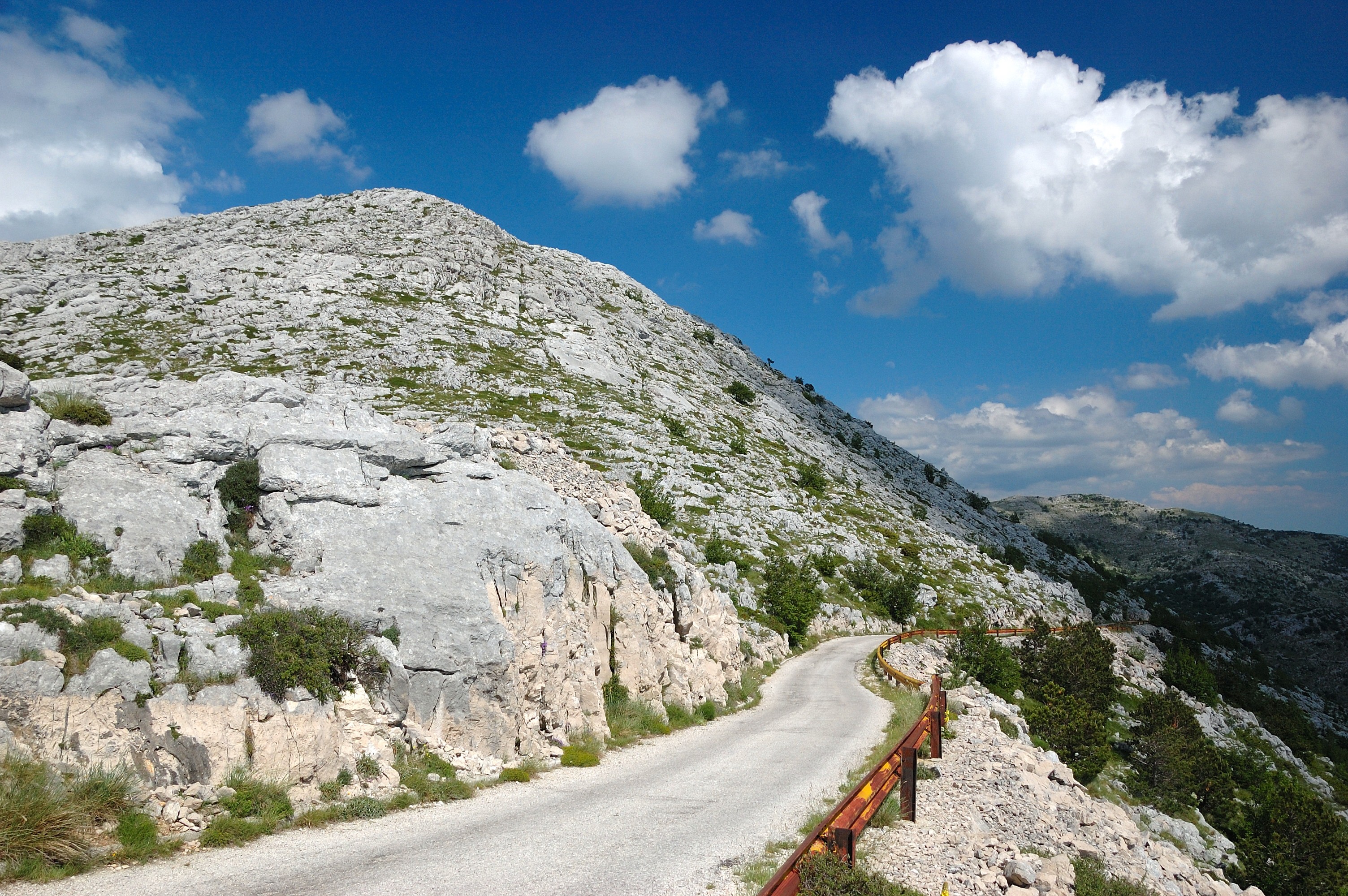 Oberhalb von Makarska, dem beliebten Urlaubsort an der gleichnamigen Riviera im Süden von Dalmatien, erstreckt sich der gut 196 Quadratkilometer große und rund 30 Kilometer lange Naturpark Biokovo. Zu diesem Park, in dem sich Dolinen, natürlich entstandene Mulden, Höhlen, Eisgruben und die Amfora, die mit 788 Metern vierttiefste Grotte Kroatiens, befinden, gehört auch der Sveti Jure. Zu Fuß wandert man gute fünf Stunden hinauf – da geht es mit dem Motorrad deutlich schneller, allerdings nicht unbedingt weniger beschwerlich.